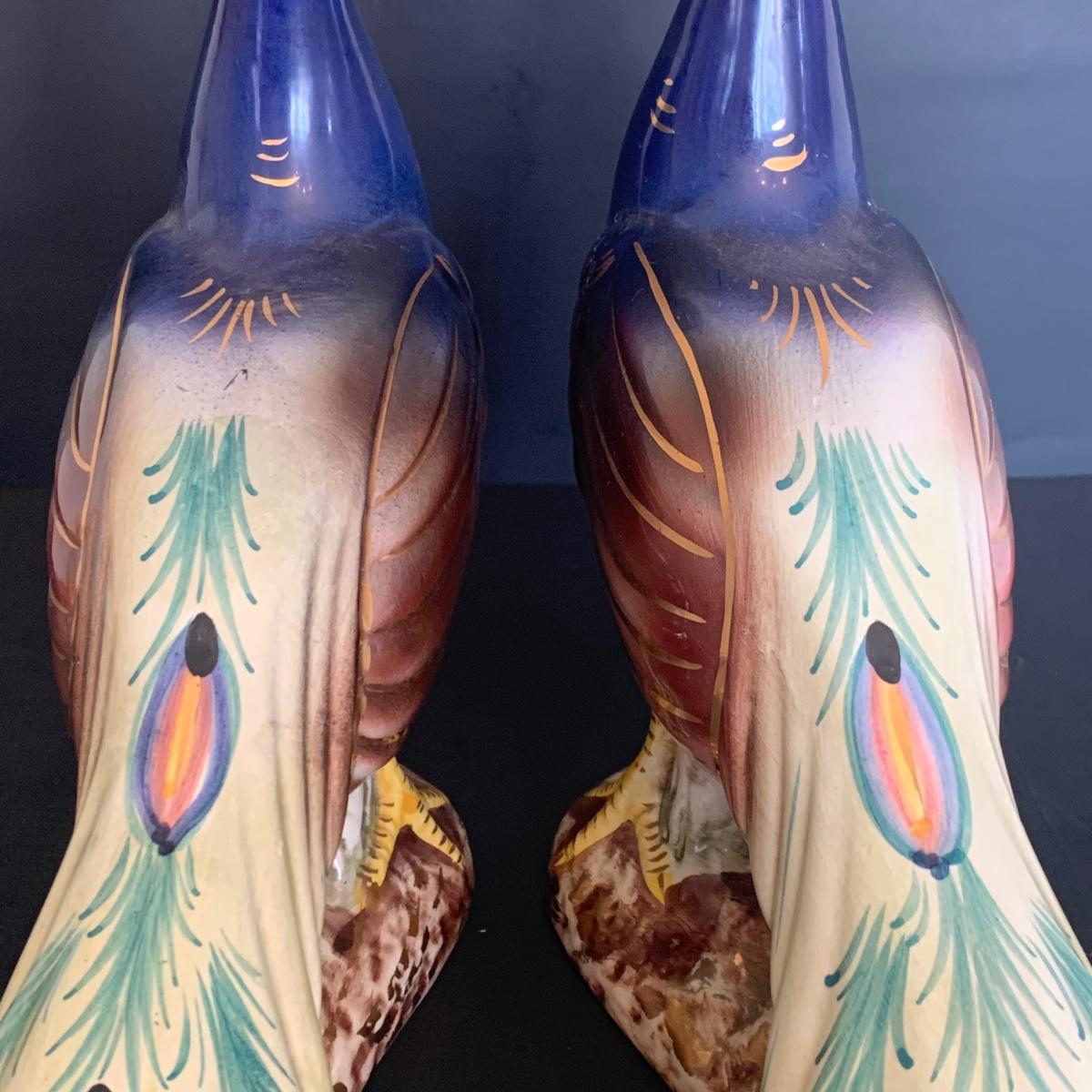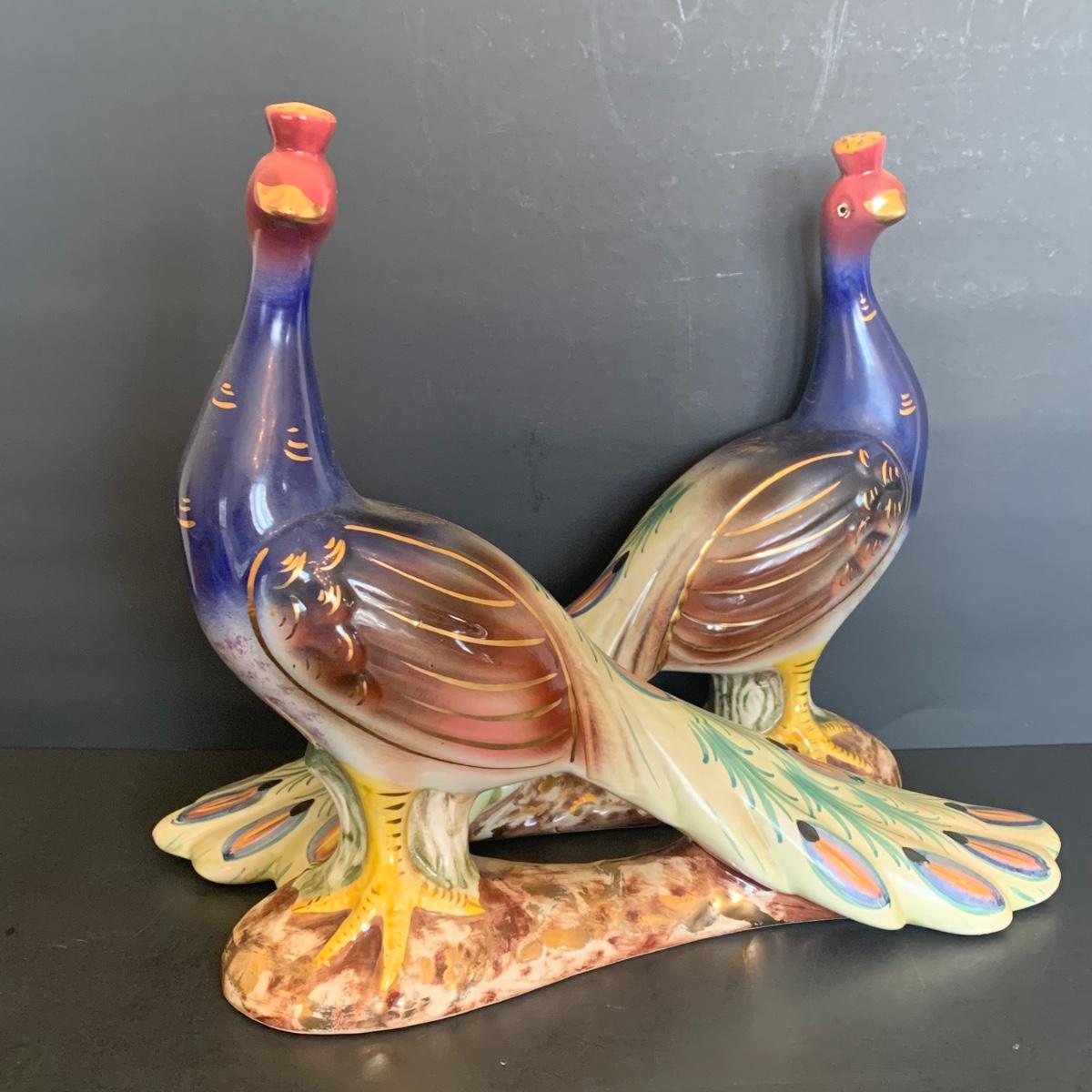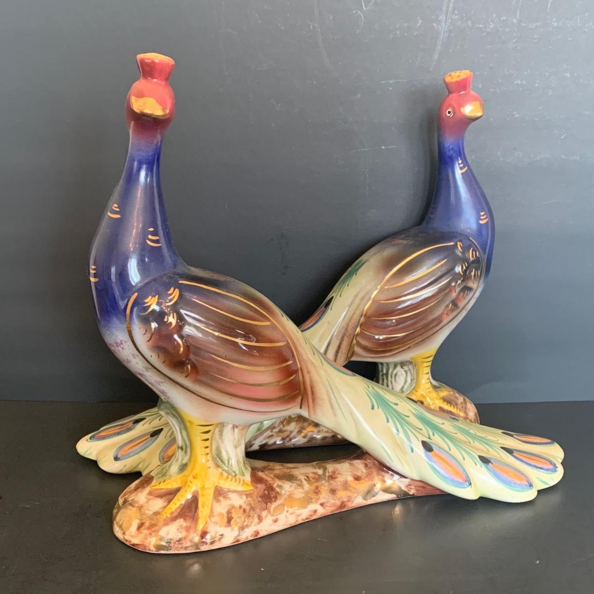 LOT 31R: Pair of Vintage Peacock Figurine Porcelain, S.A. Leart Co., ELPA, Alcobaca, Portugal