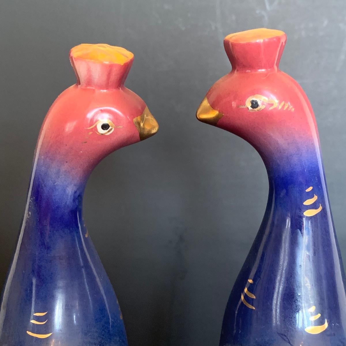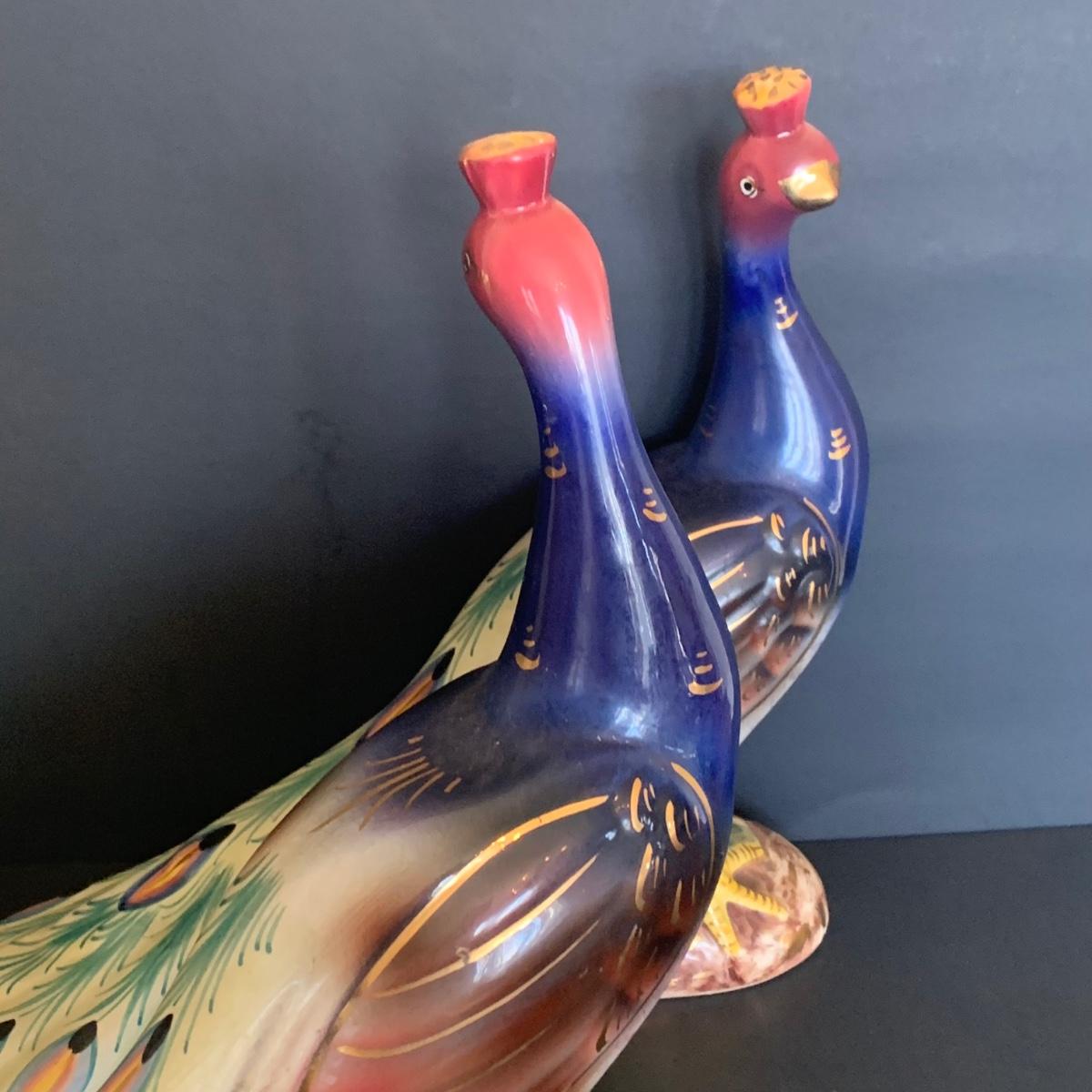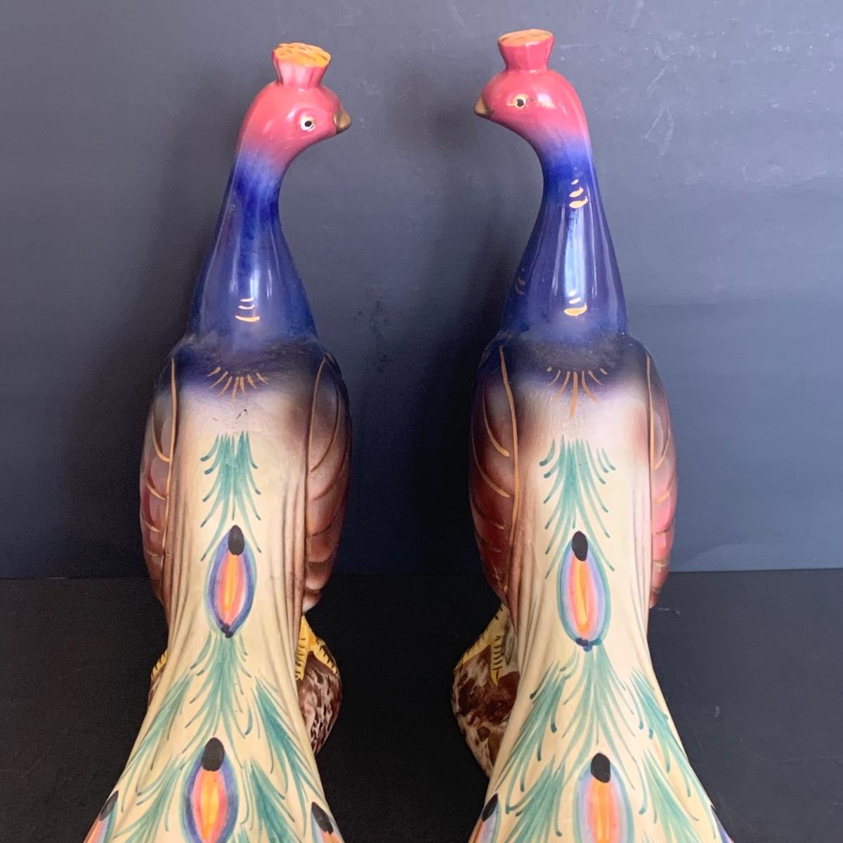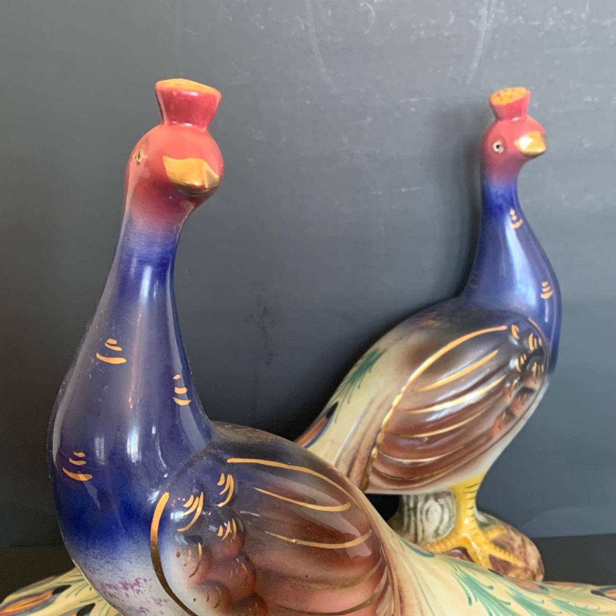 LOT 31R: Pair of Vintage Peacock Figurine Porcelain, S.A. Leart Co., ELPA, Alcobaca, Portugal