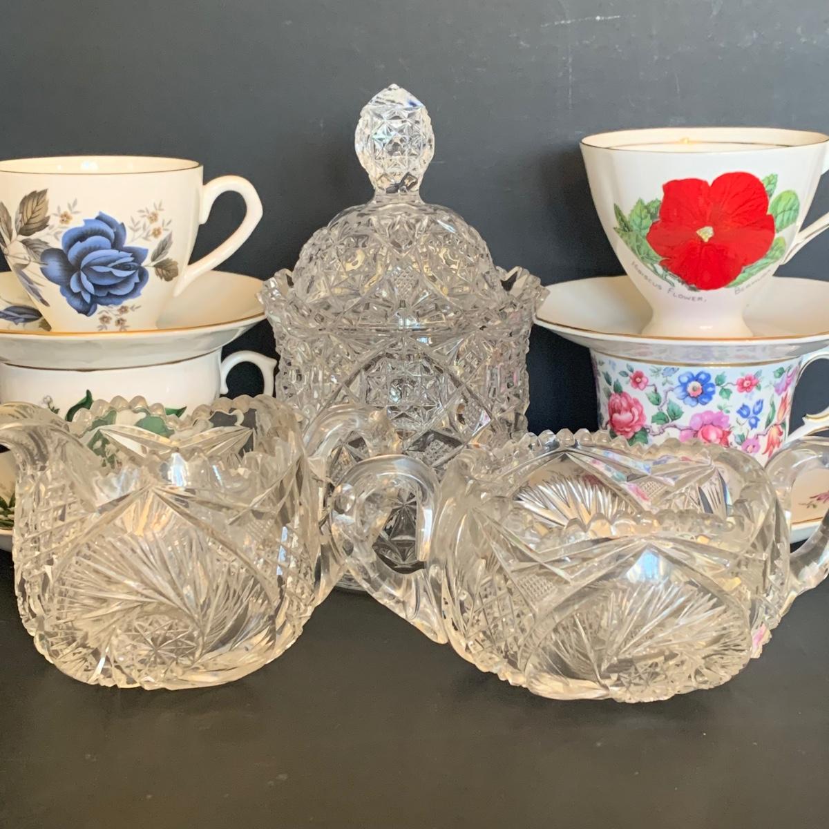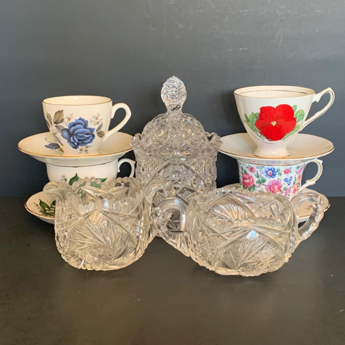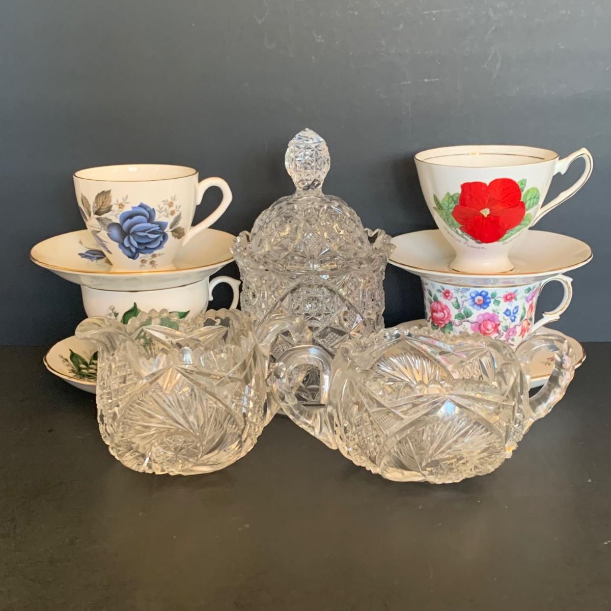 LOT 32R: Vintage Teacups & Cut-Glass Collection: Sandford, Taylor &Kent, Royal Victoria