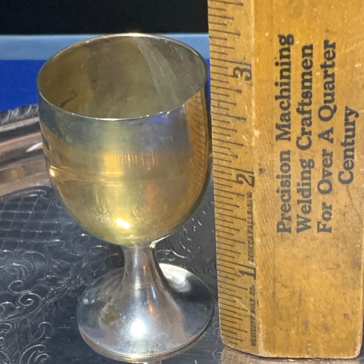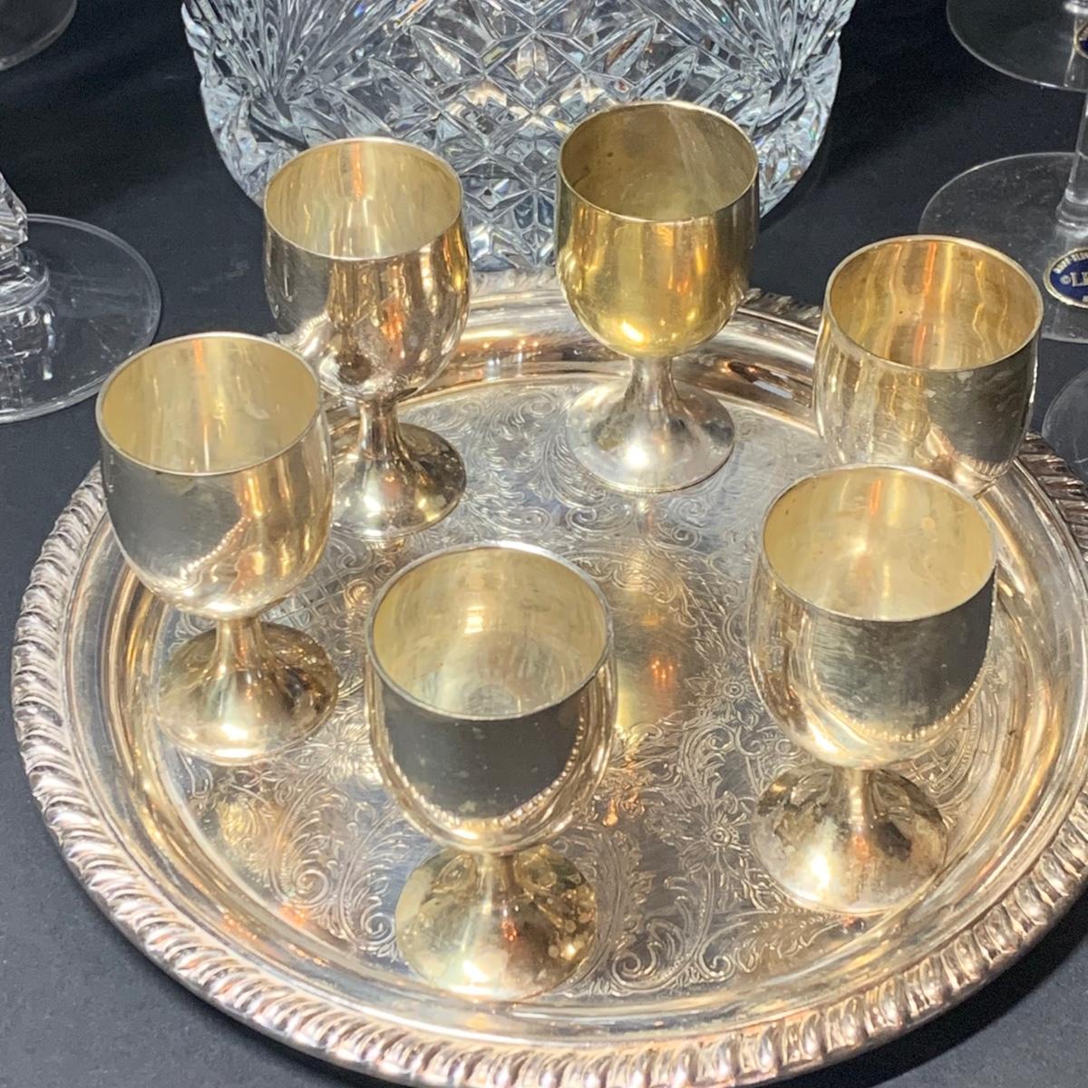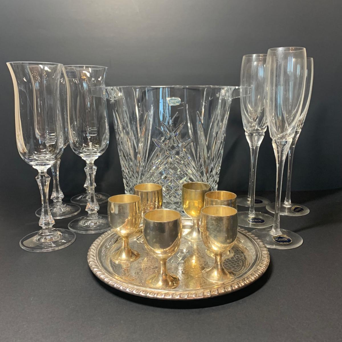 LOT 39R: Vintage Silver-plate EPNS Cordial Goblets (3") w/Serving Tray, Cut Crystal Ice Bucket J G Durand 8"), Towle Crystal Stemware & Lenox "Sea Swirl" Stemware