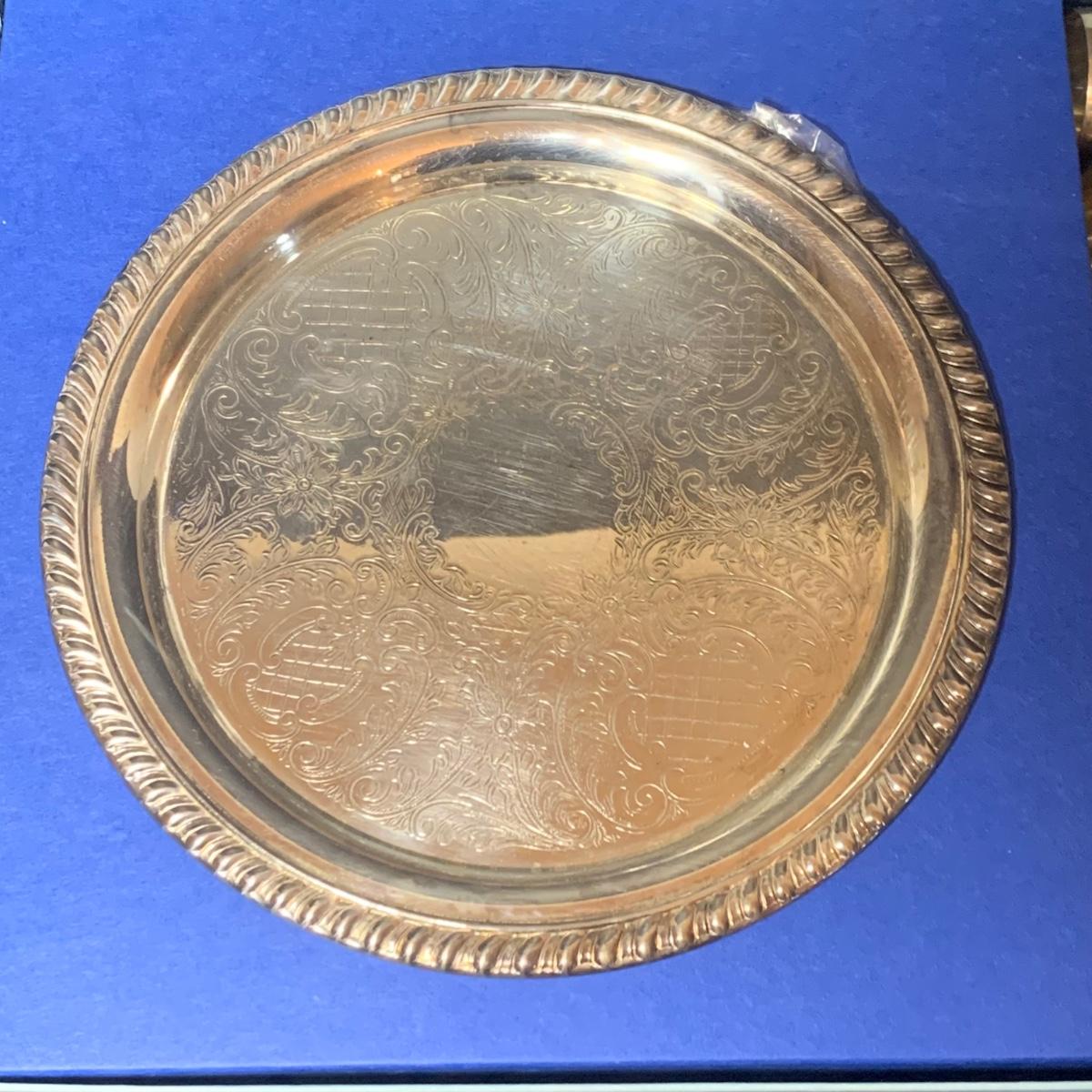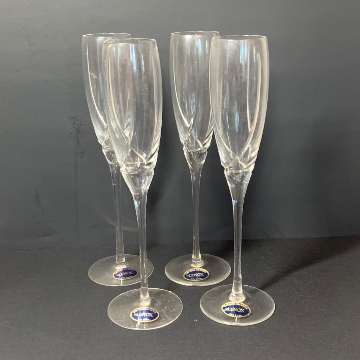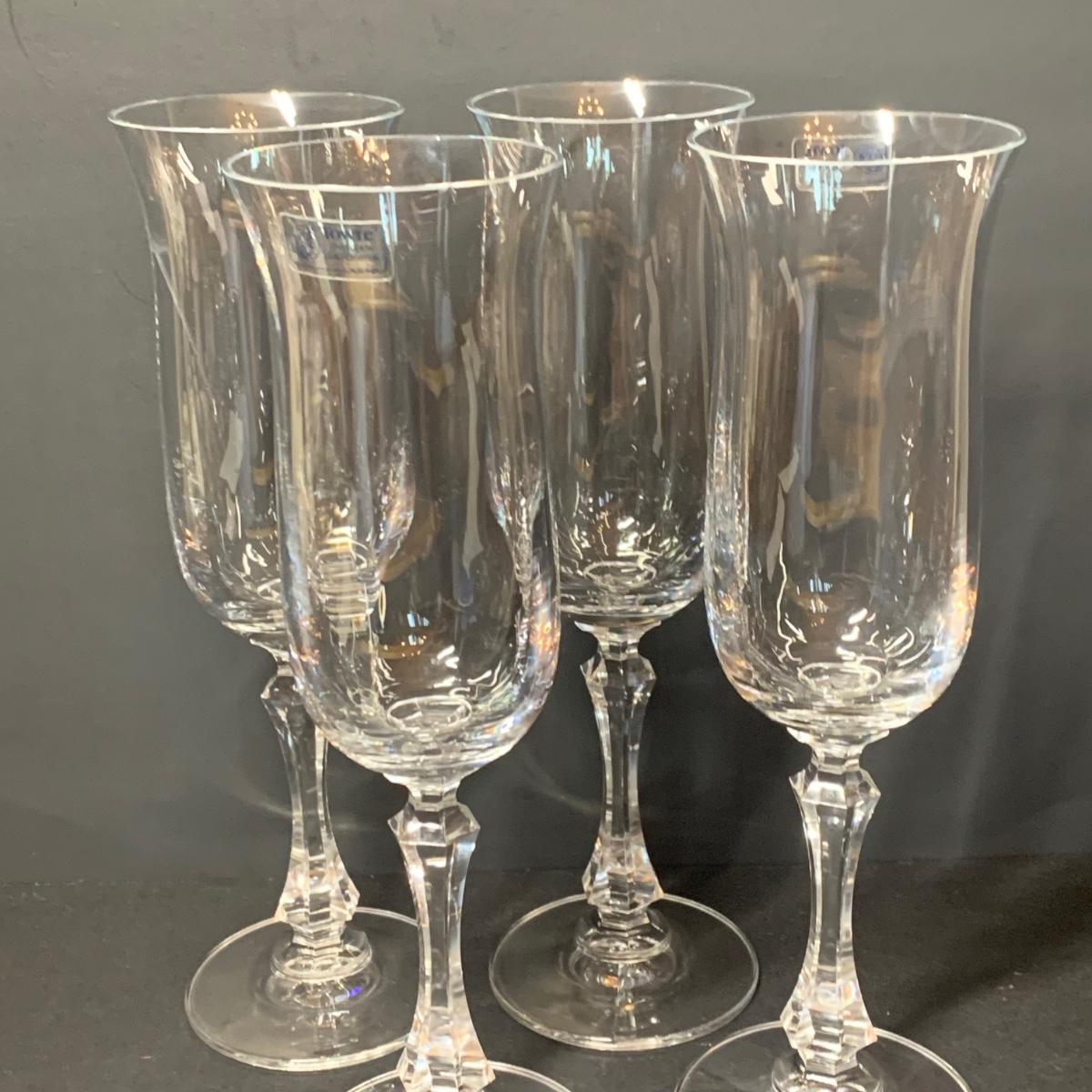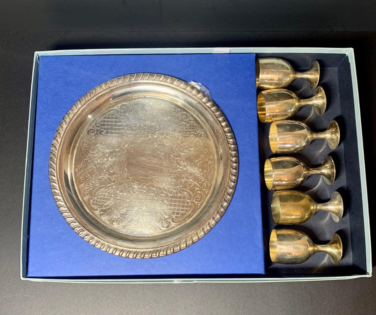 LOT 39R: Vintage Silver-plate EPNS Cordial Goblets (3") w/Serving Tray, Cut Crystal Ice Bucket J G Durand 8"), Towle Crystal Stemware & Lenox "Sea Swirl" Stemware
