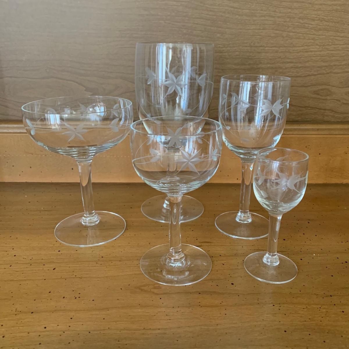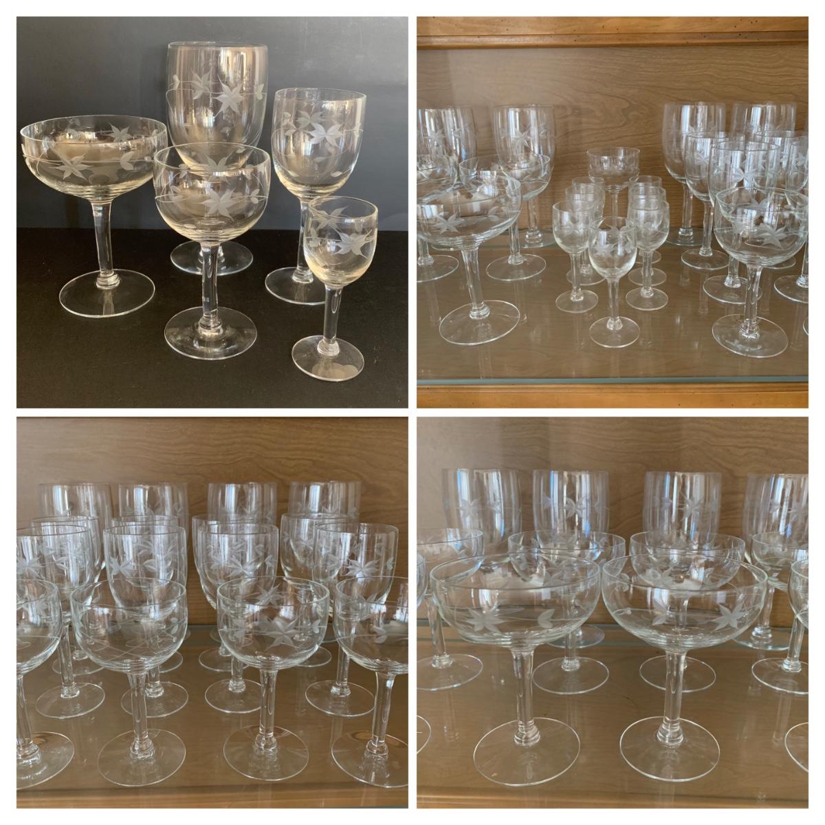 LOT 45R: Large Collection of Vintage Etched Crystal Stemware