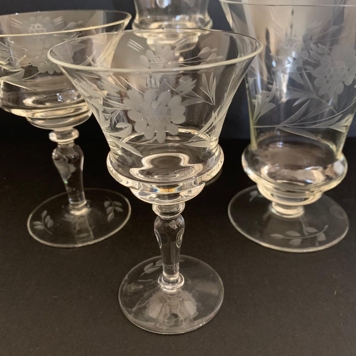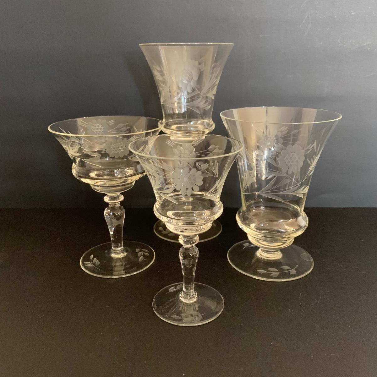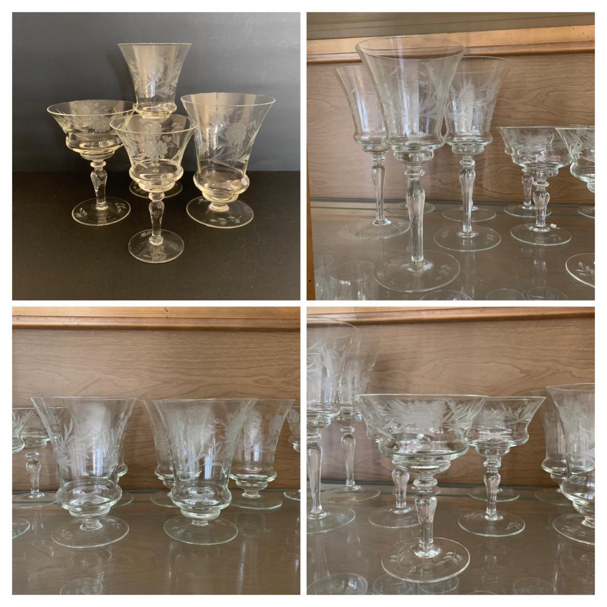 LOT 46R: Large Collection of Clear-Cut Floral Stemware