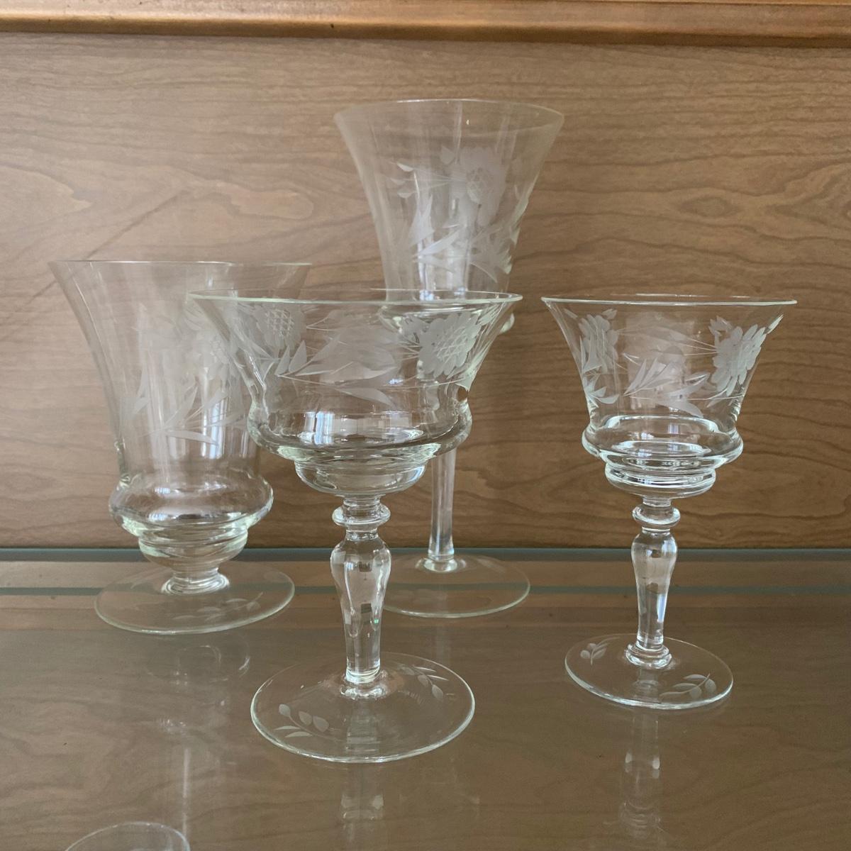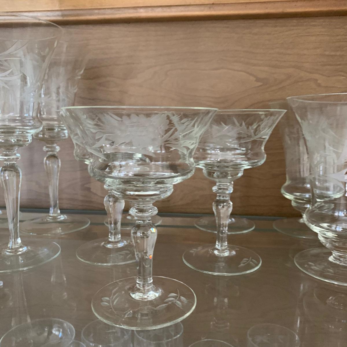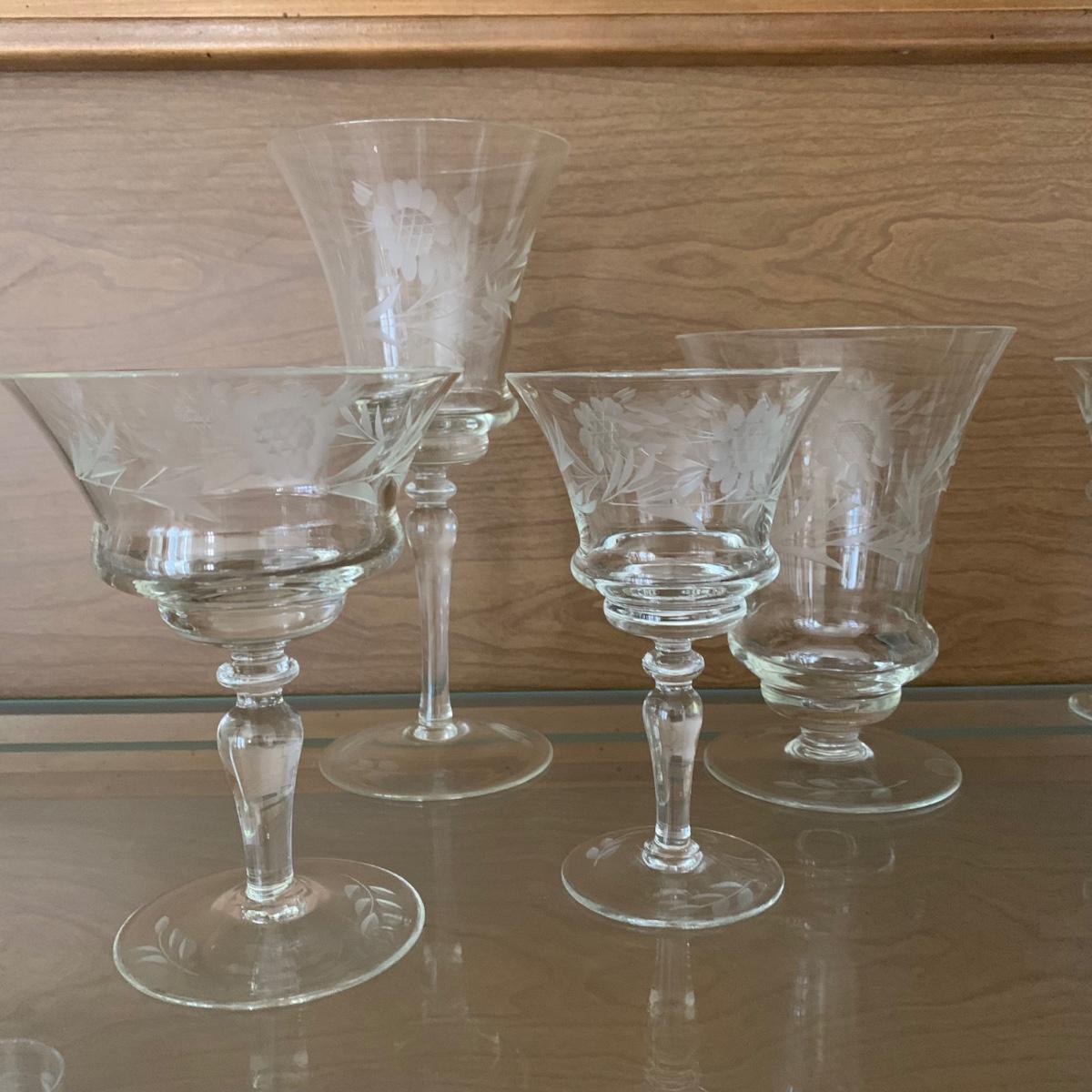 LOT 46R: Large Collection of Clear-Cut Floral Stemware