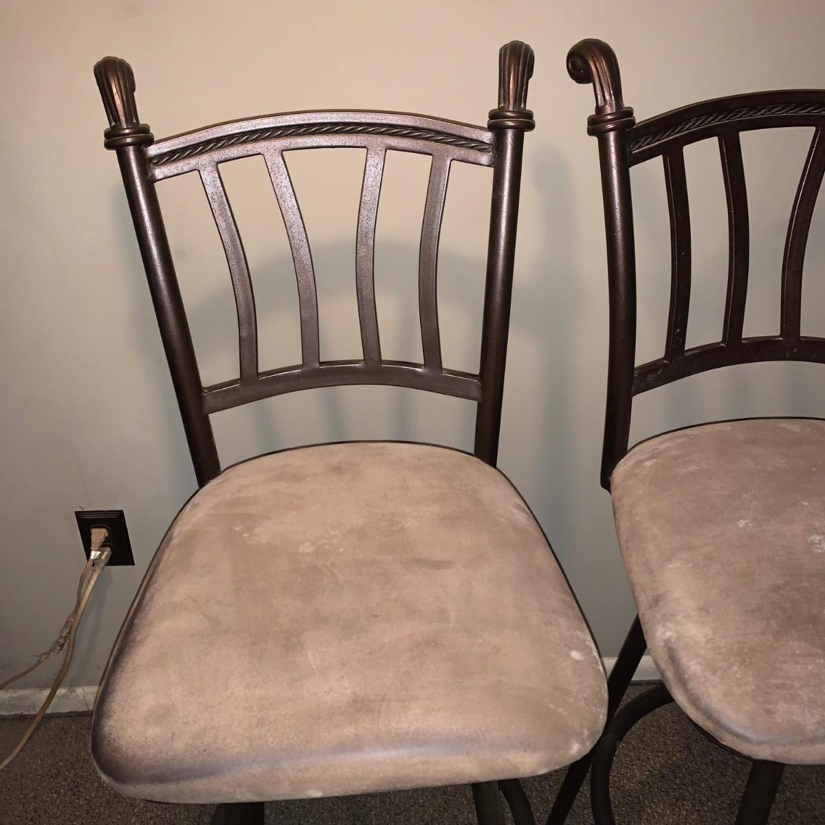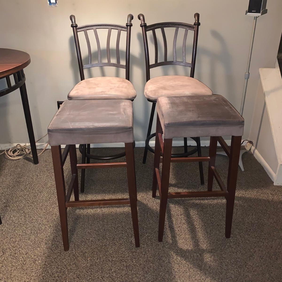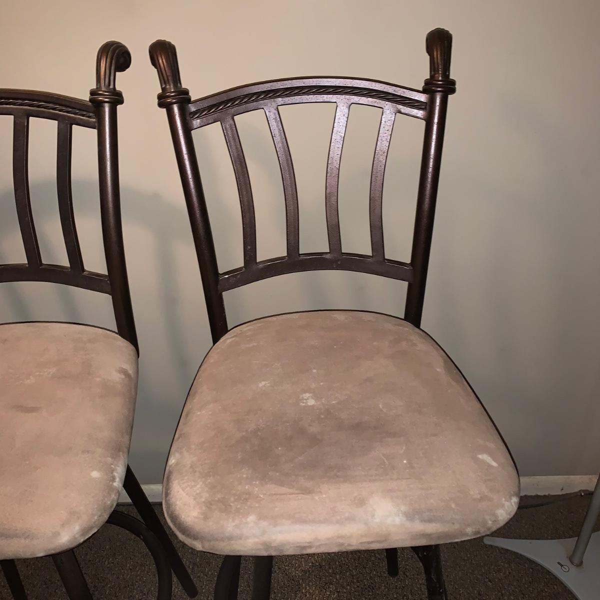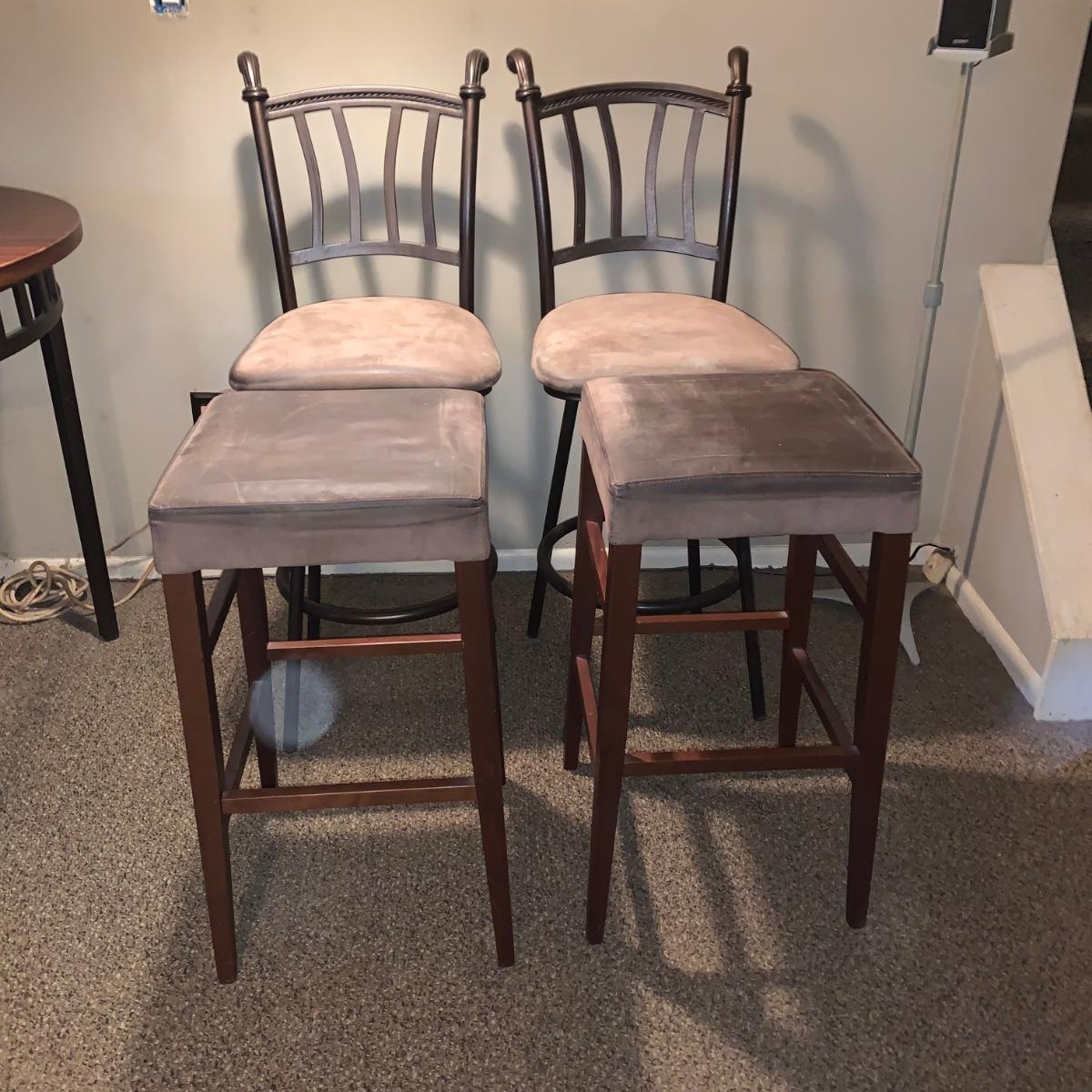 Metal Back Stools are 17" x 18" and 47" overall in height.