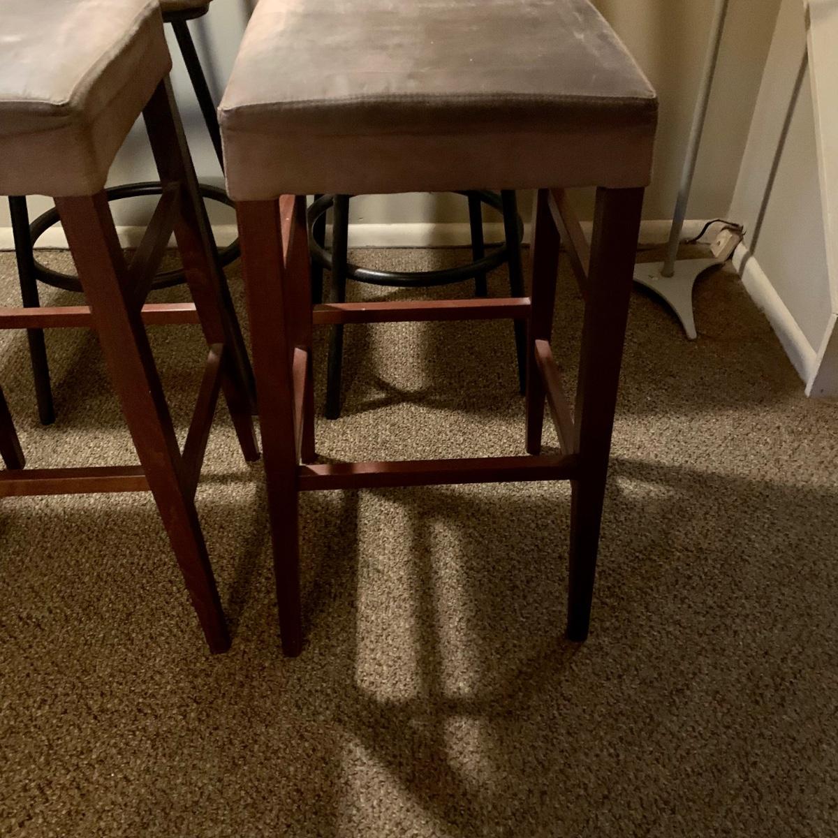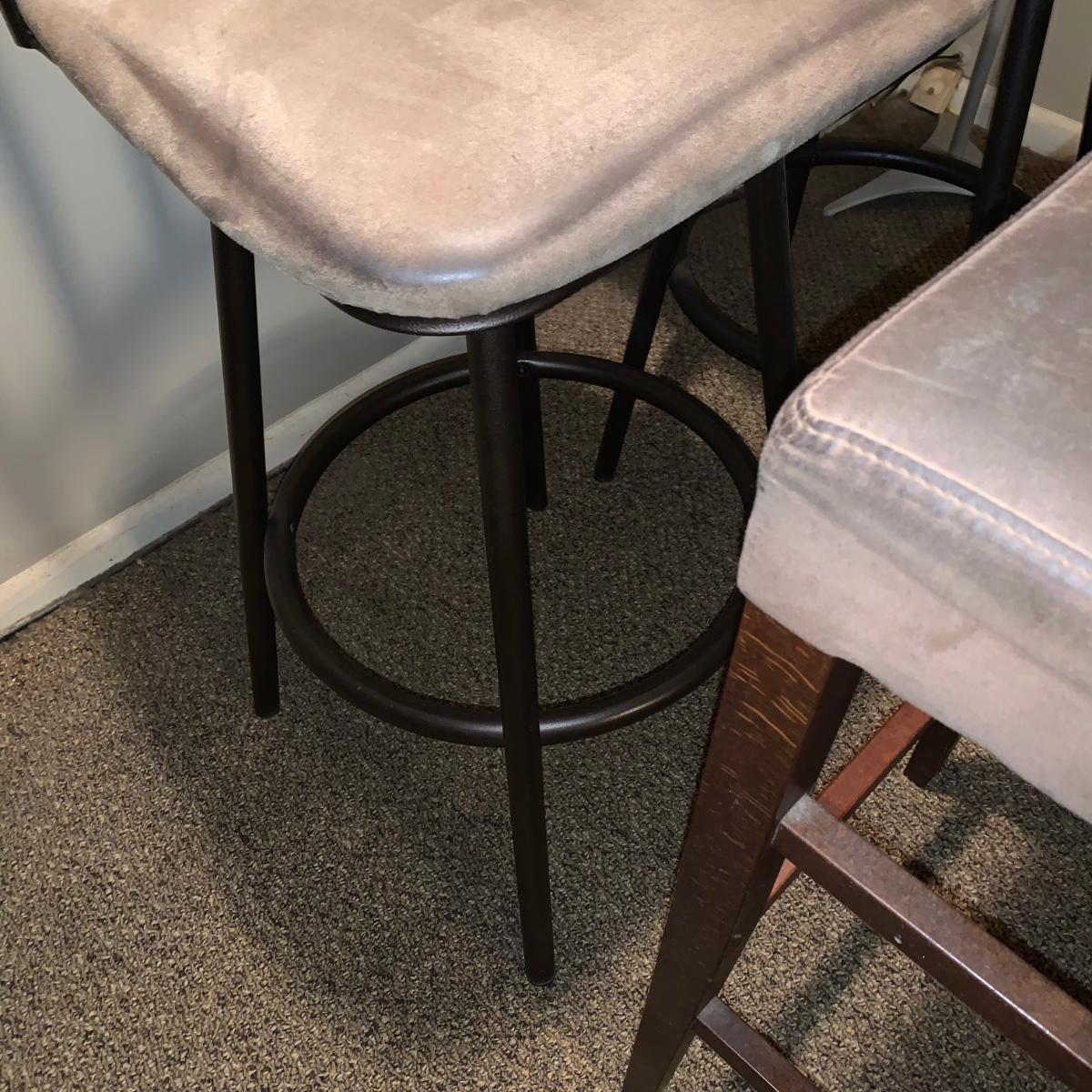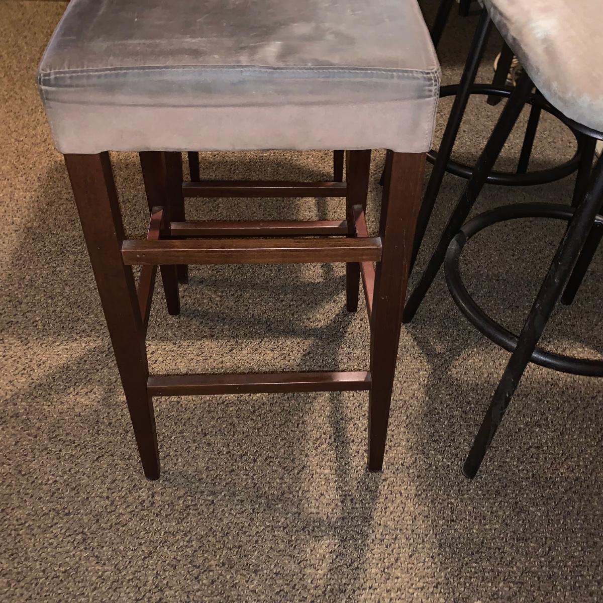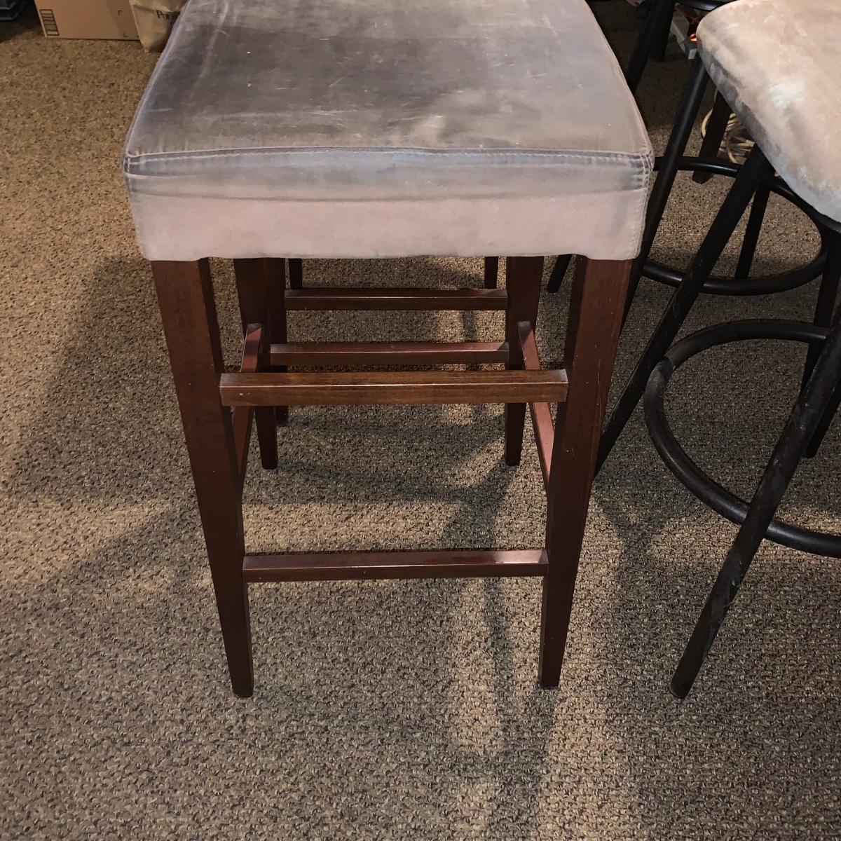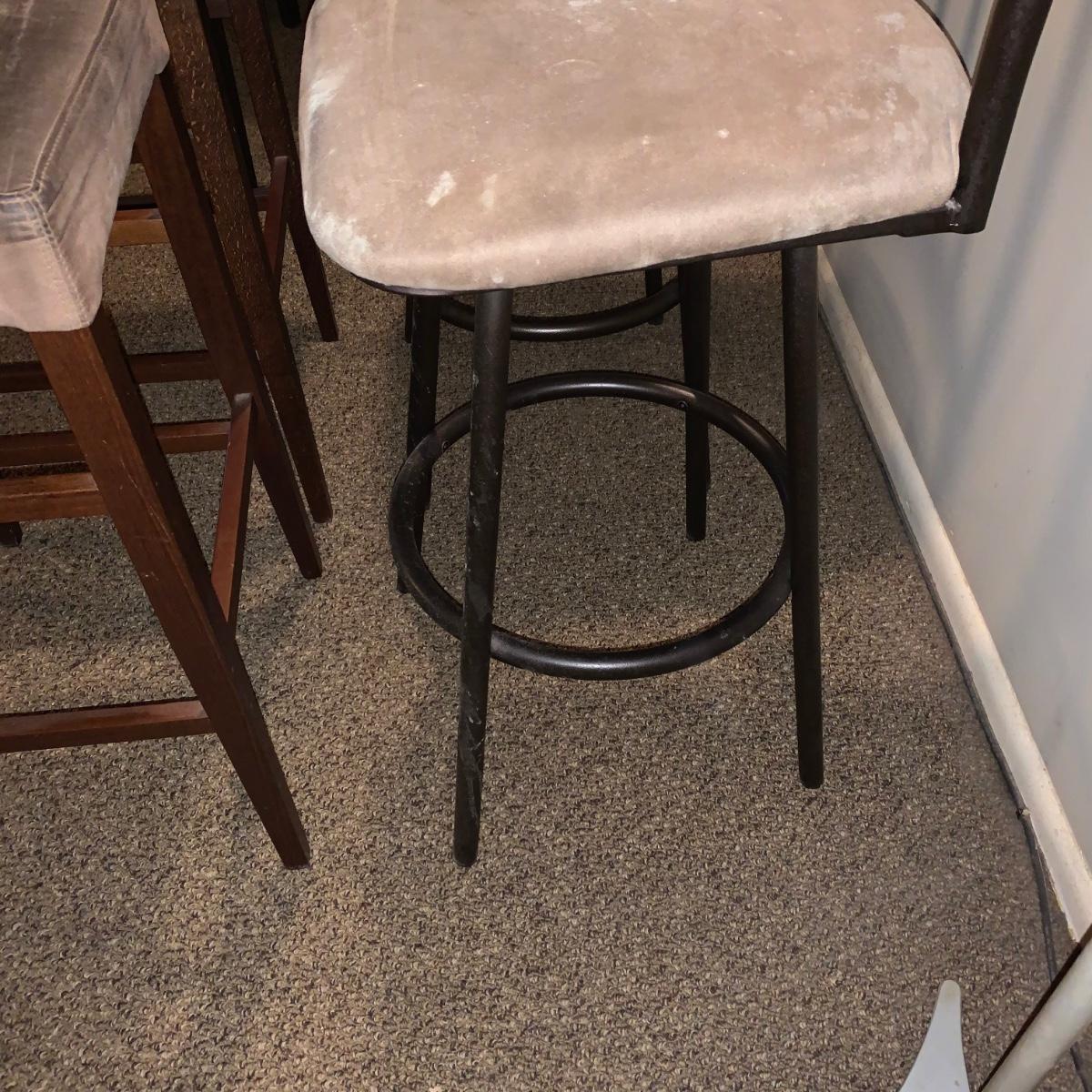 Metal Back Stools are 17" x 18" and 47" overall in height.