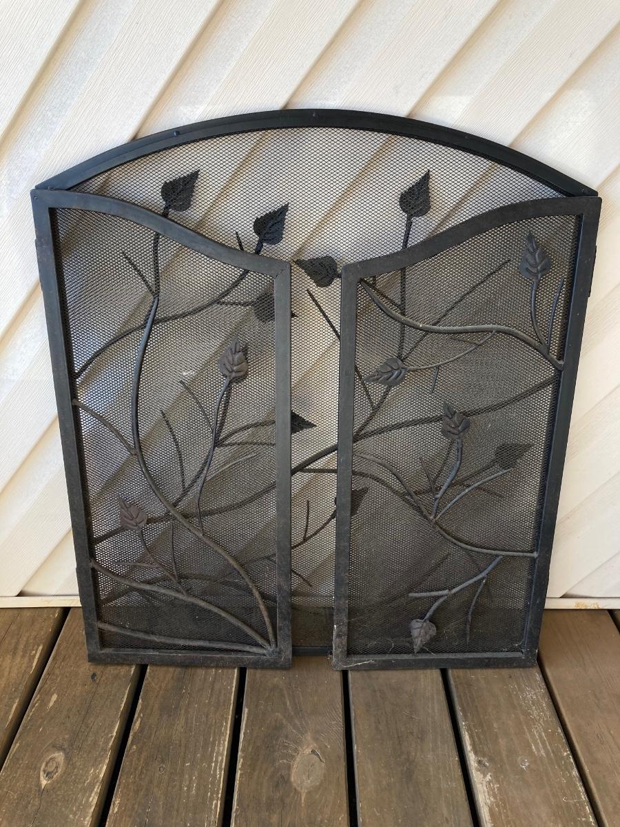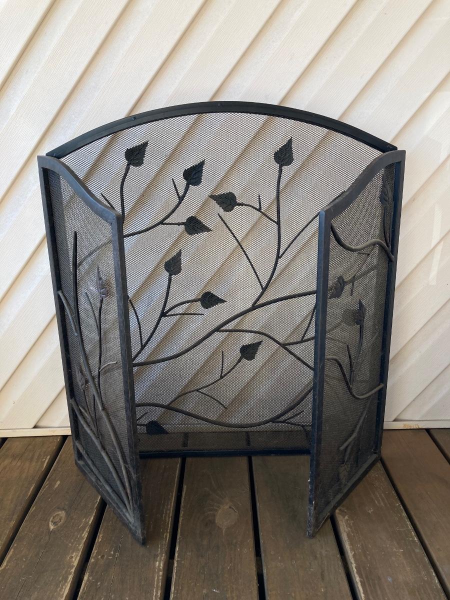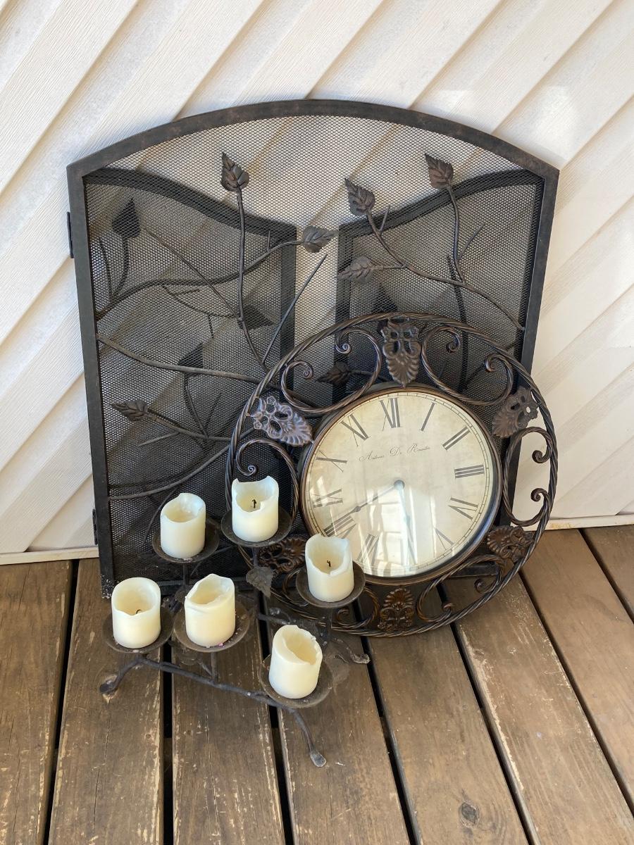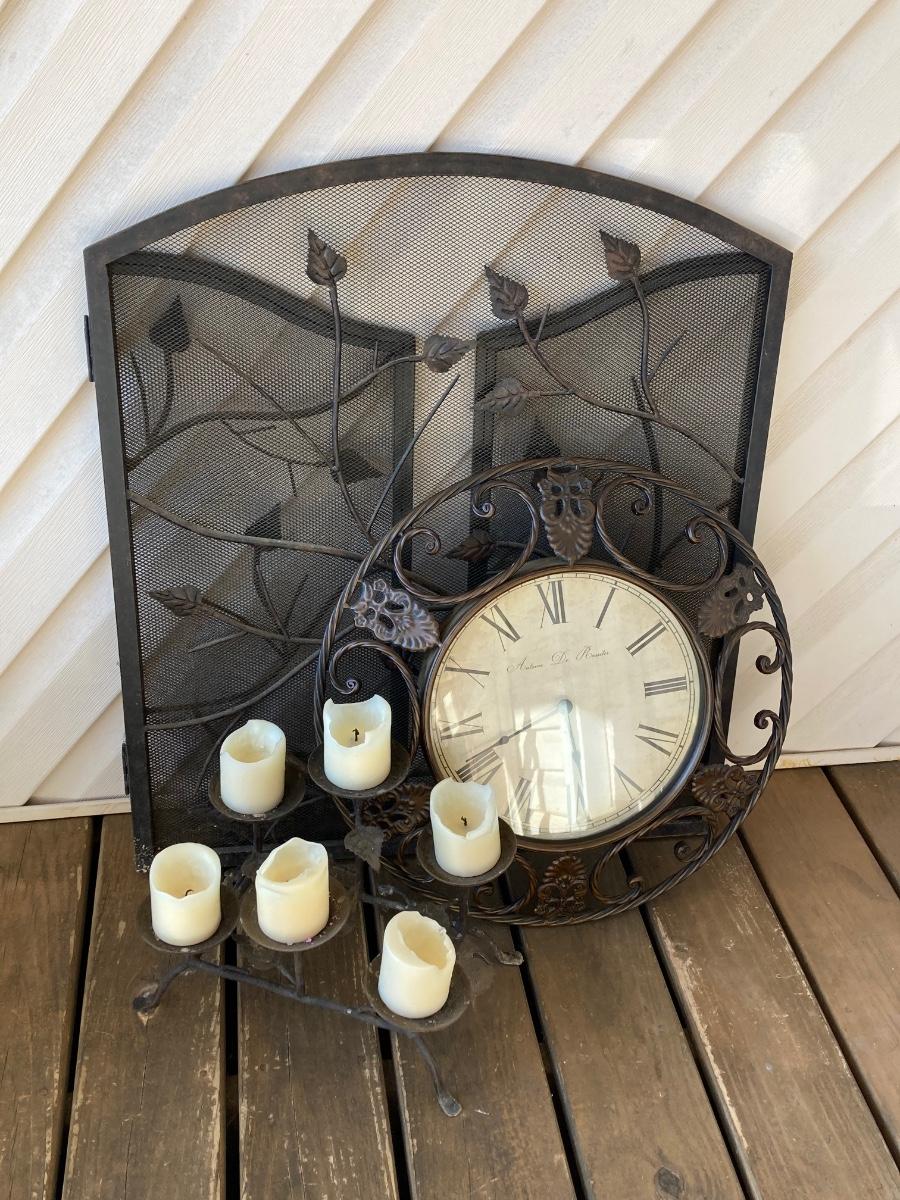 LOT 56J: Wrought Iron Home Decor - 3 Panel Fireplace Screen, Antoine De Rossiter Clock and More