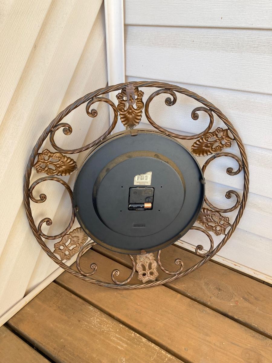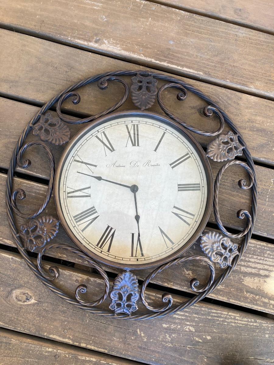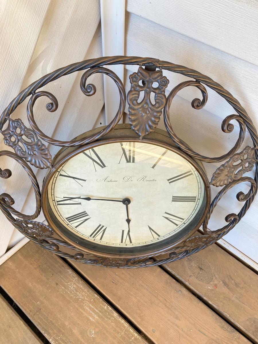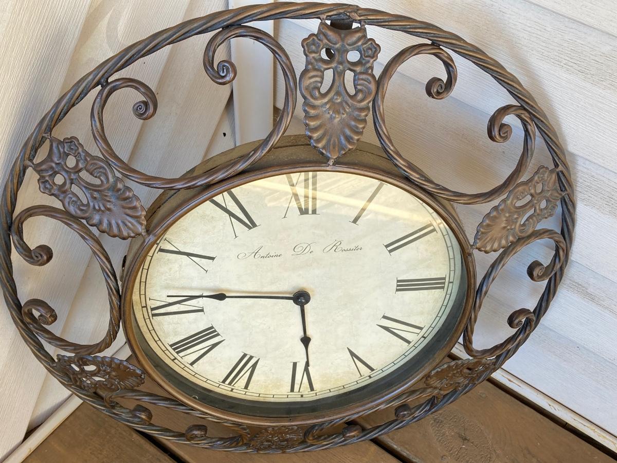 LOT 56J: Wrought Iron Home Decor - 3 Panel Fireplace Screen, Antoine De Rossiter Clock and More