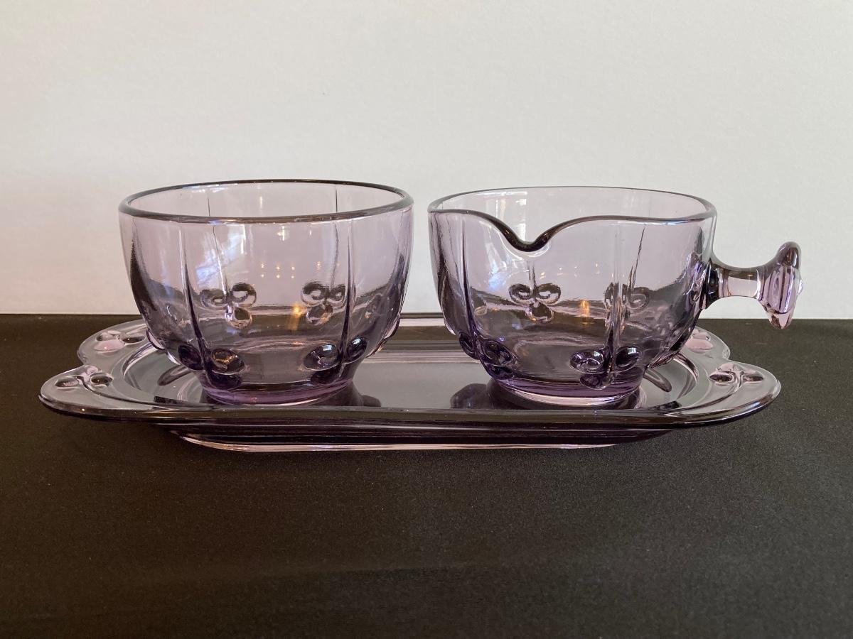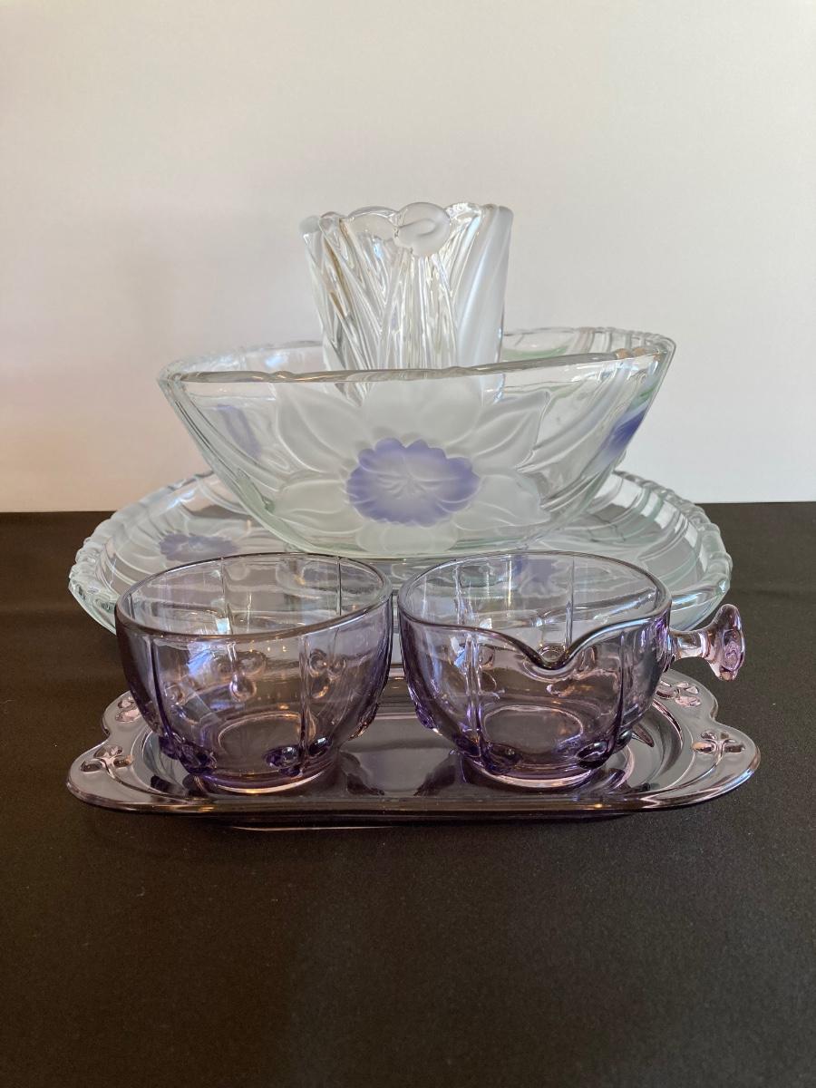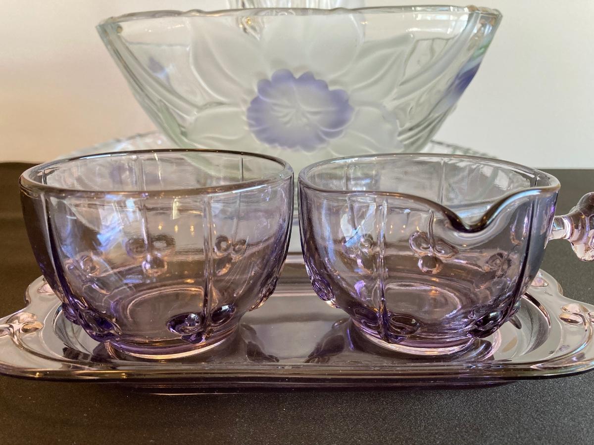 LOT 62J: Crystal Clear Studios Collection, Purple Glass Cream / Sugar Set and More