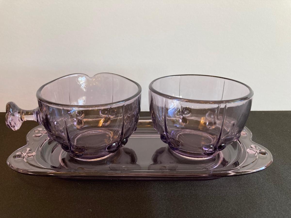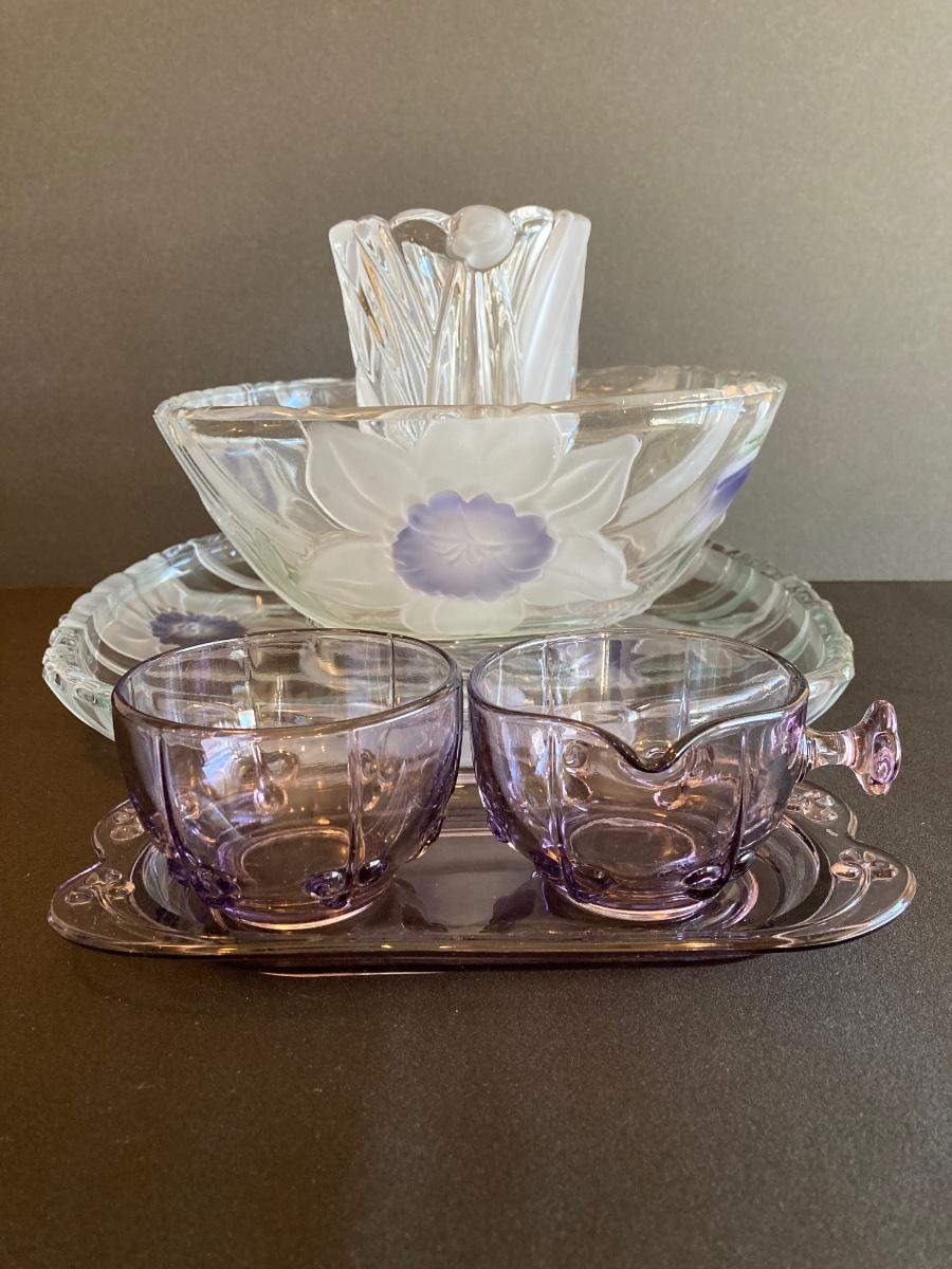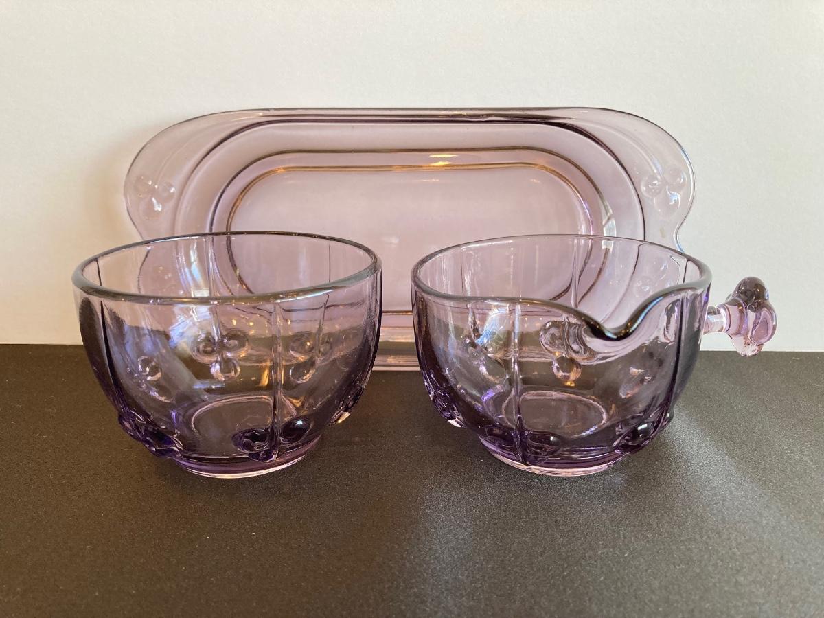 LOT 62J: Crystal Clear Studios Collection, Purple Glass Cream / Sugar Set and More