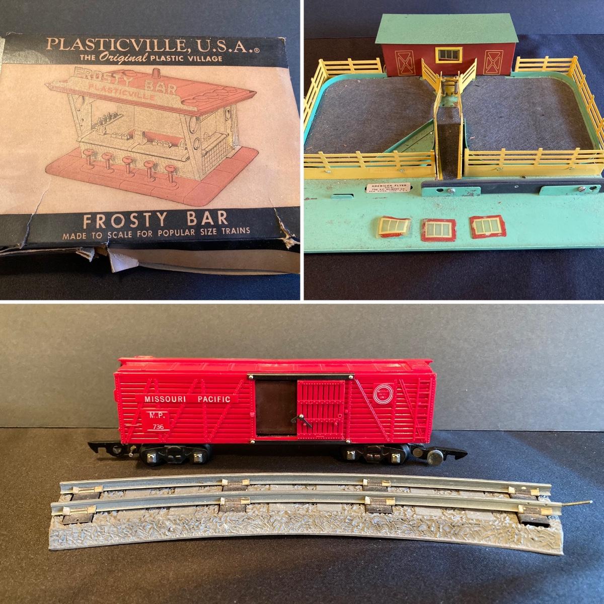 LOT 70J: American Flyer Toy Train Collection - Stockyard, Car and Frosty Bar
