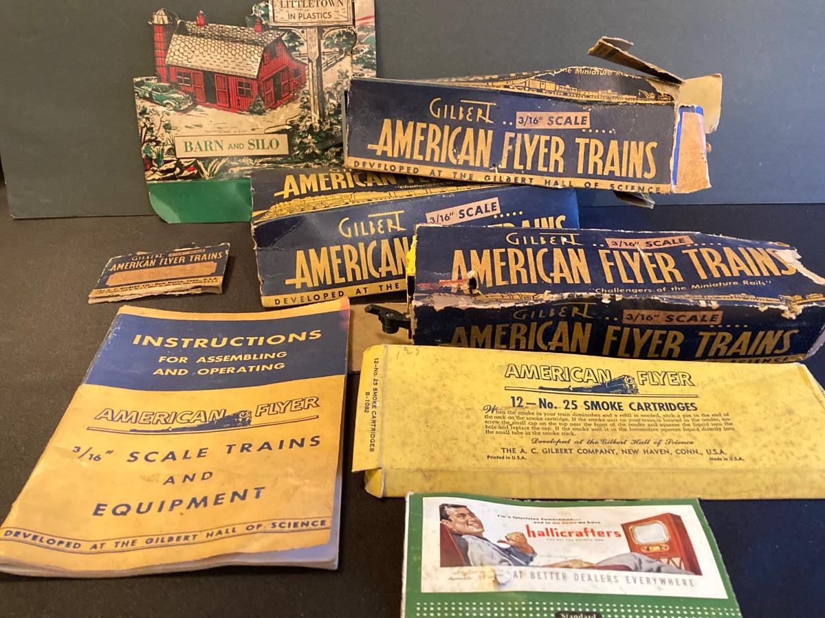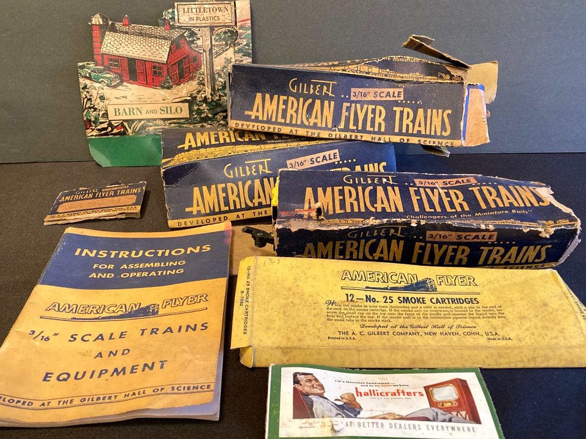 LOT 71J: Toy Train Lot - Gilbert American Flyer Railroad Cars, Instruction Book and More
