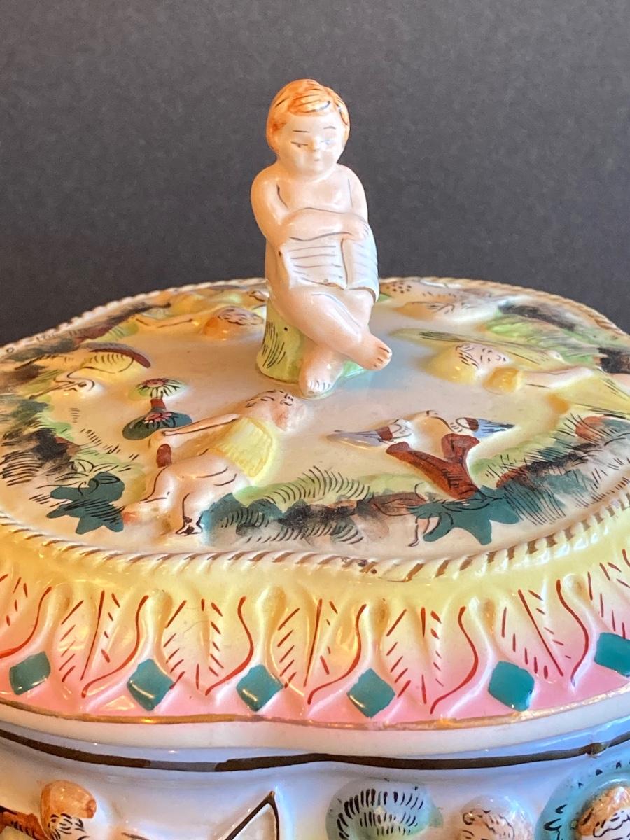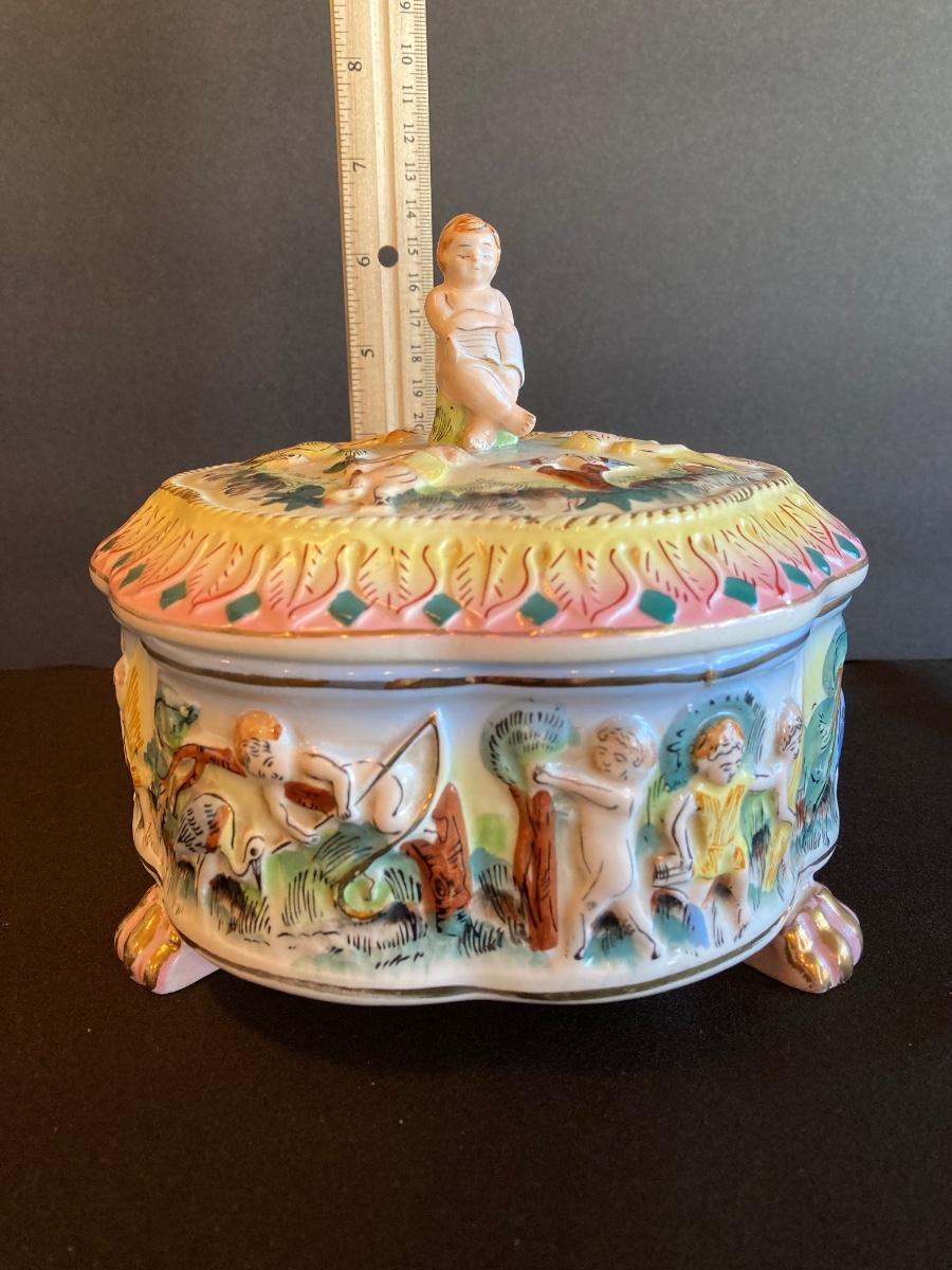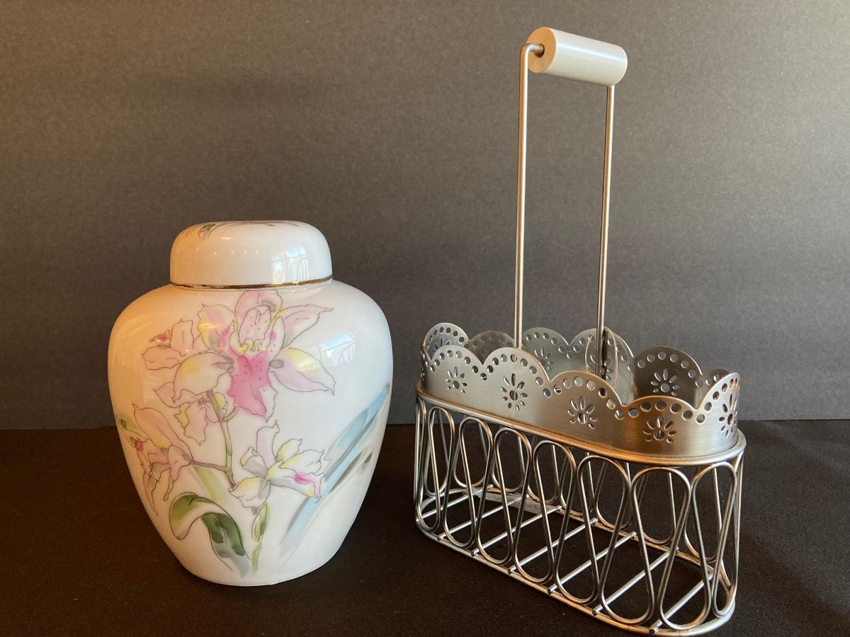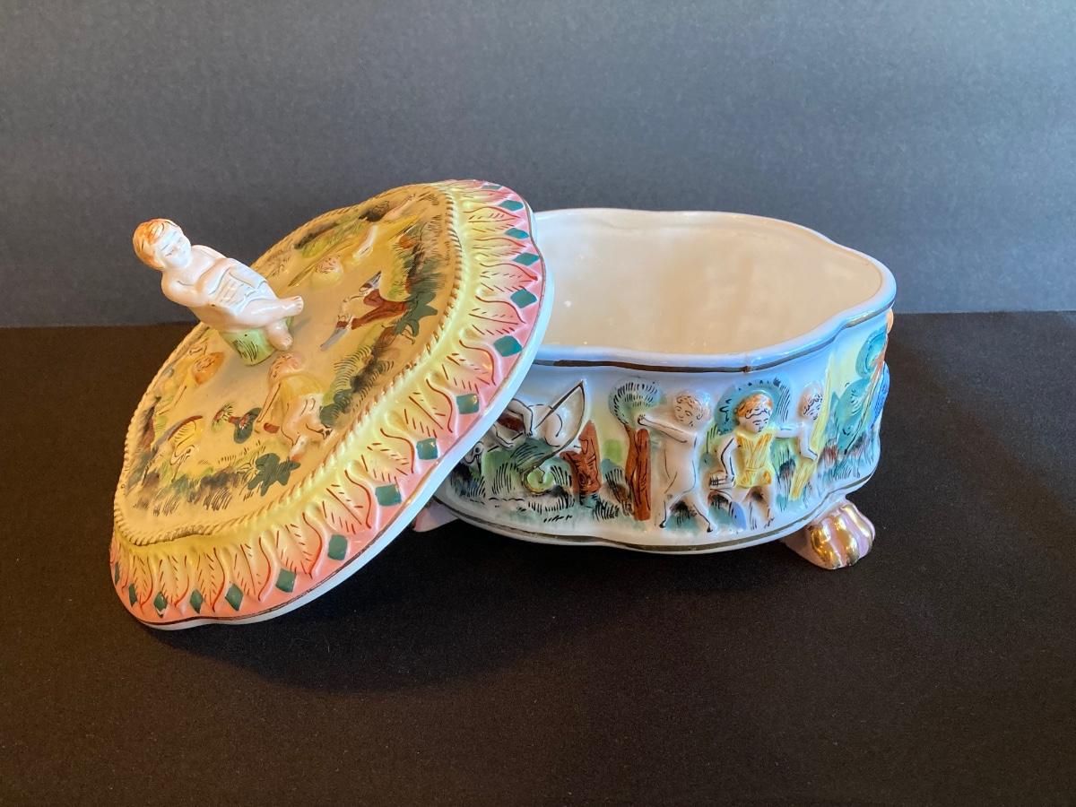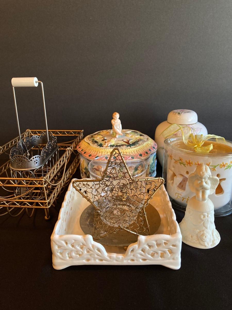 LOT 73J: Vintage Hand Painted Footed Covered Dish, Napkin Holder and Much More