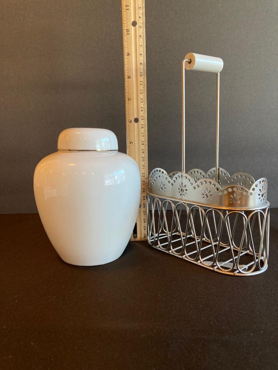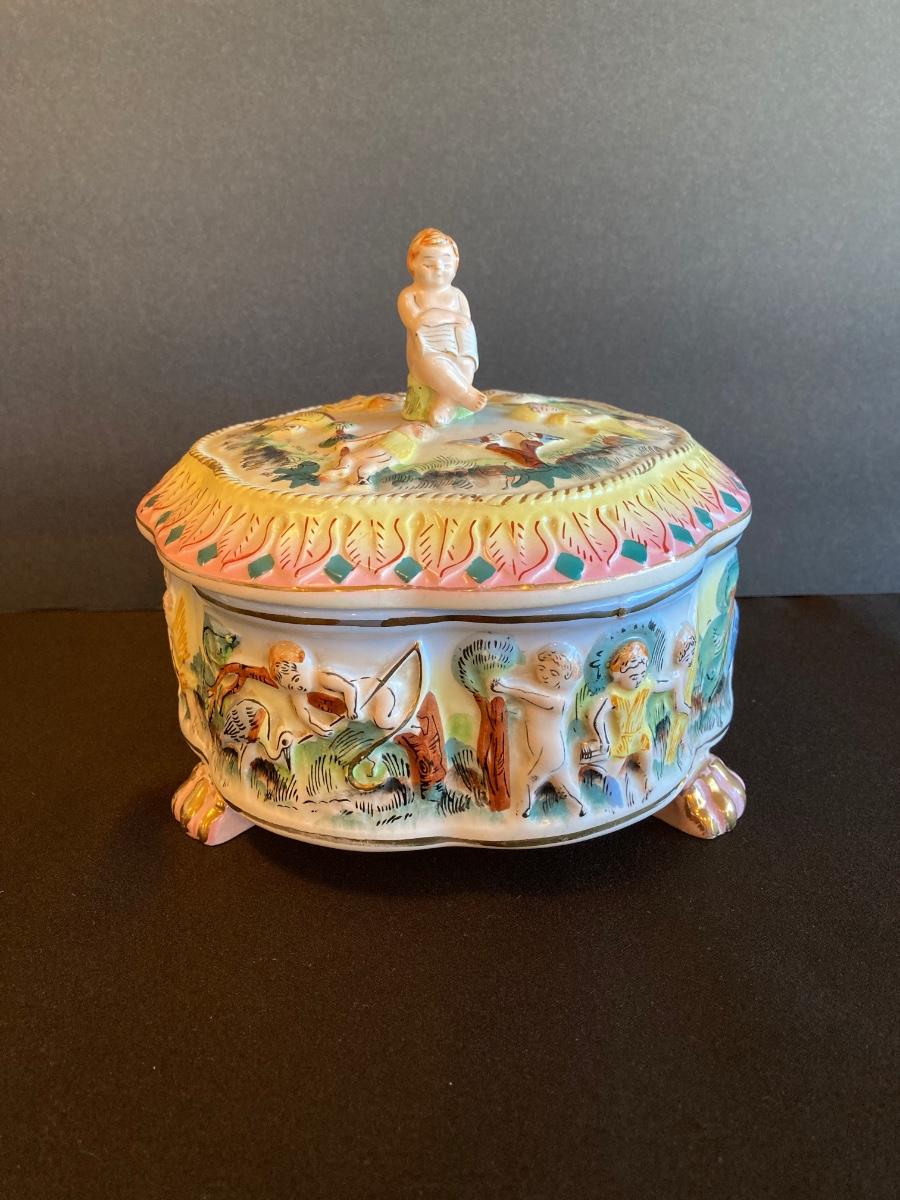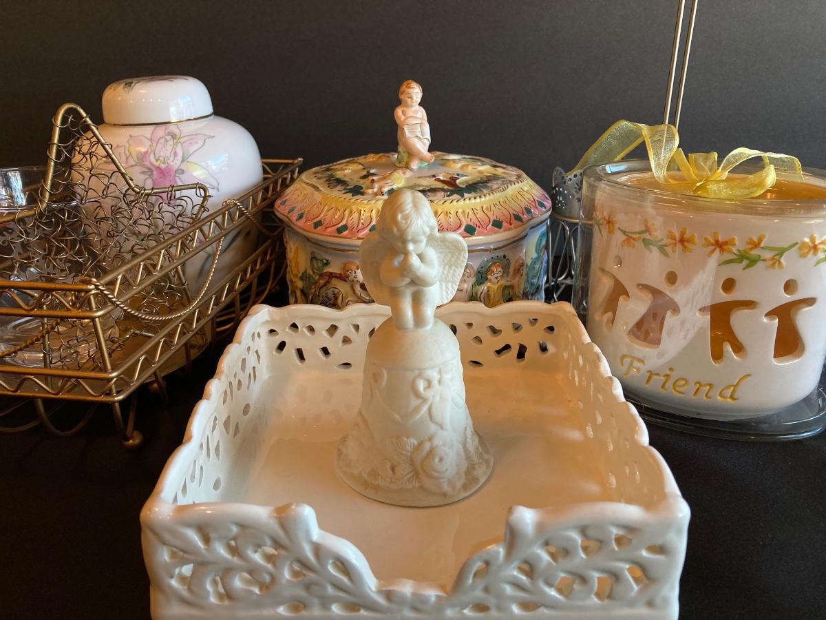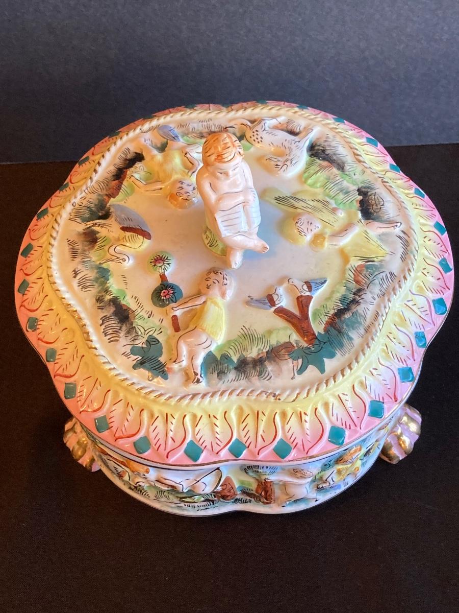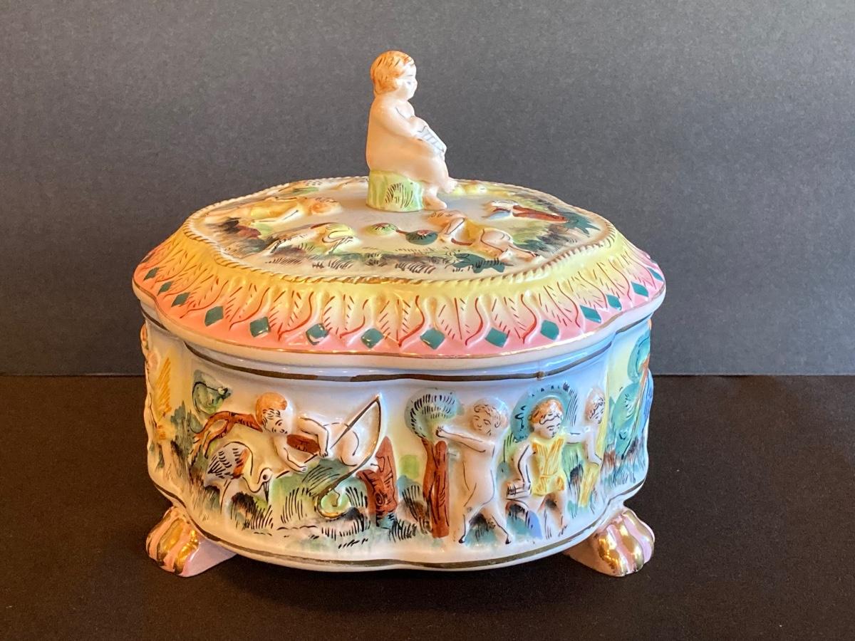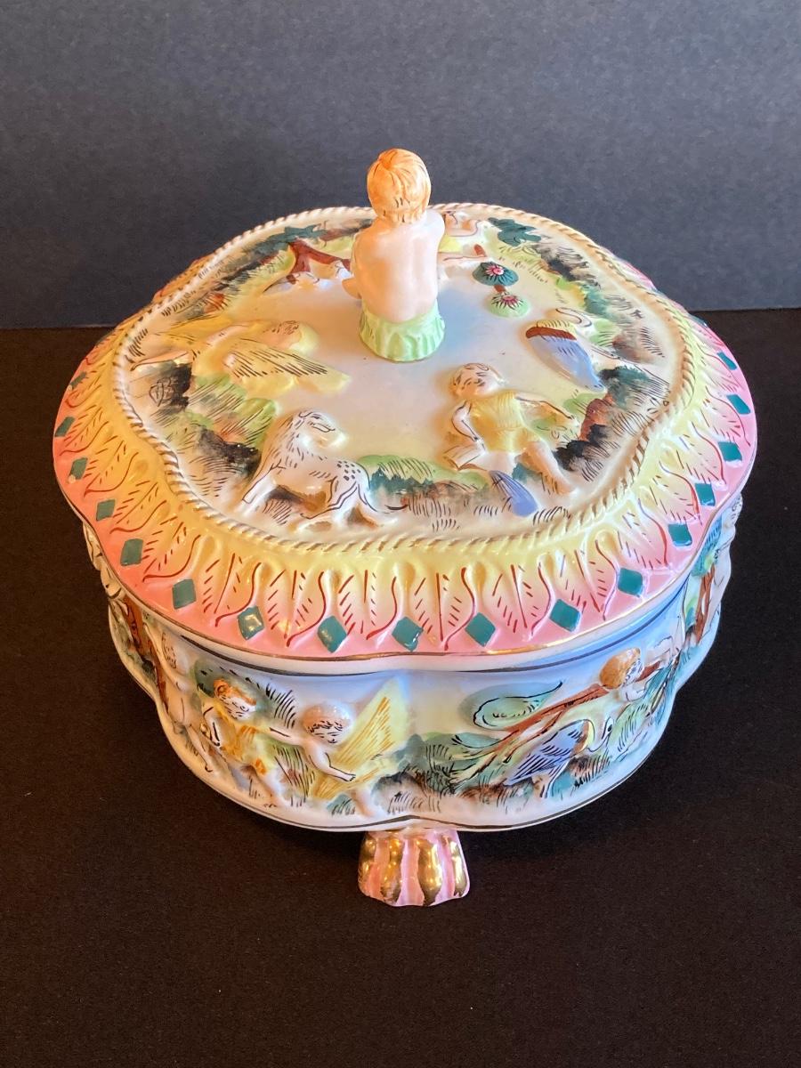LOT 73J: Vintage Hand Painted Footed Covered Dish, Napkin Holder and Much More