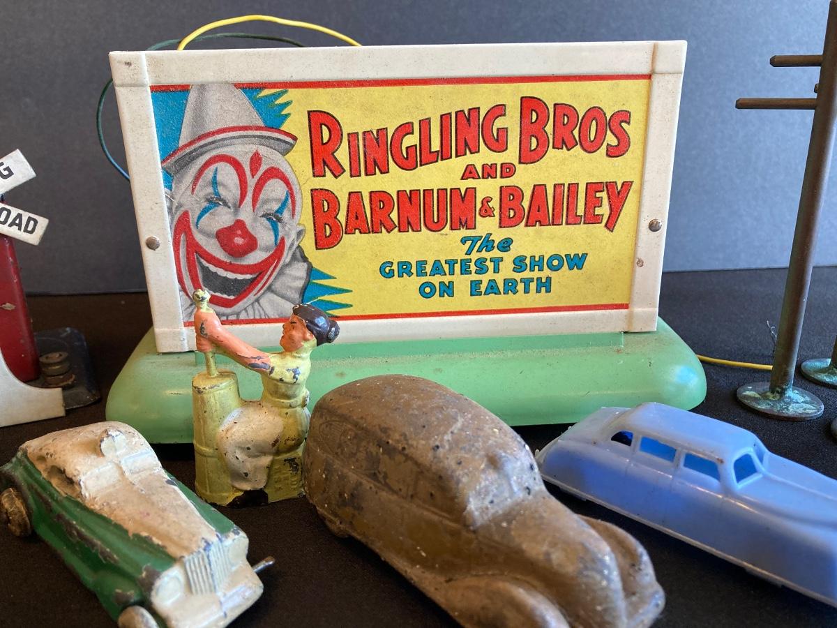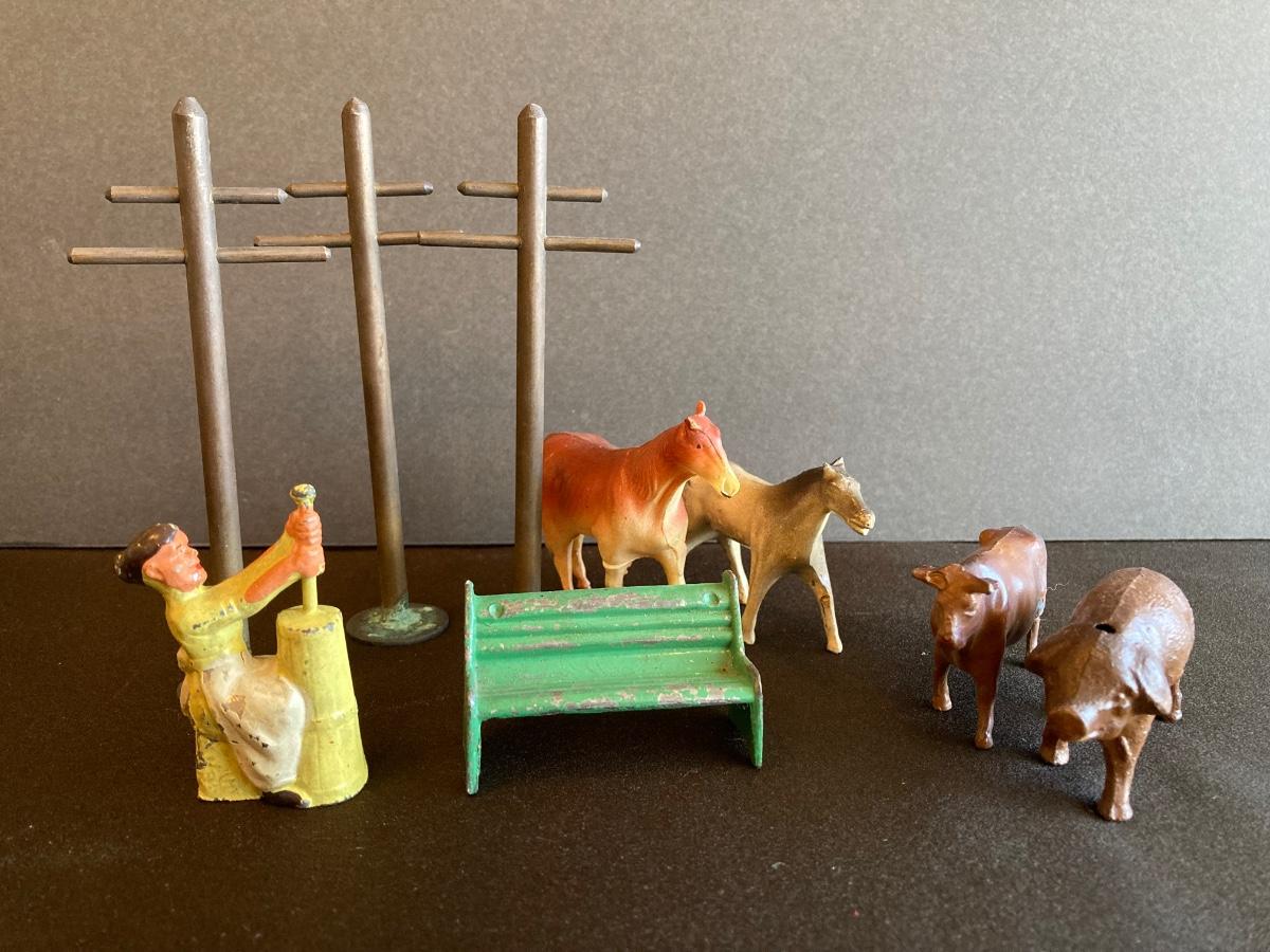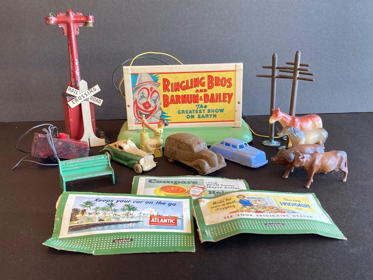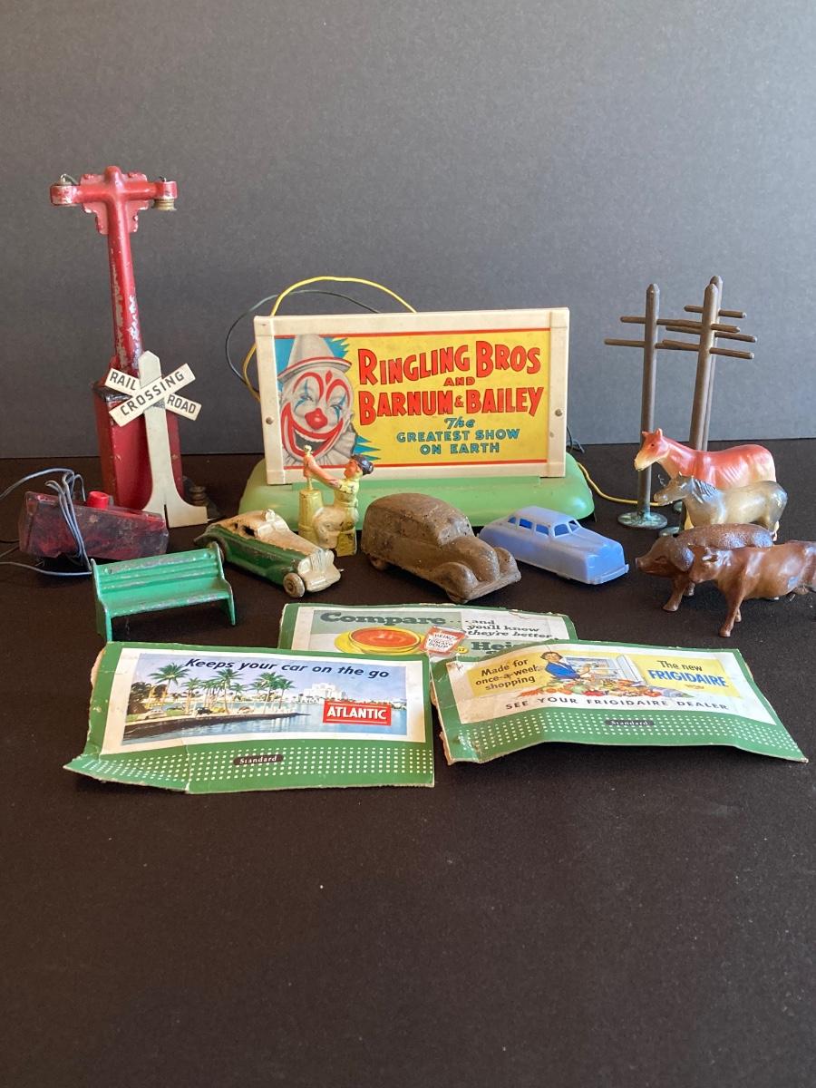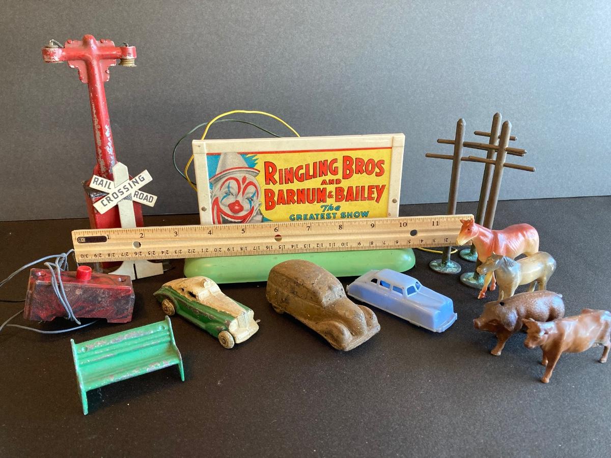 LOT 78J: Vintage Toys - Train Parts, Metal and Plastic Cars, Animals and More