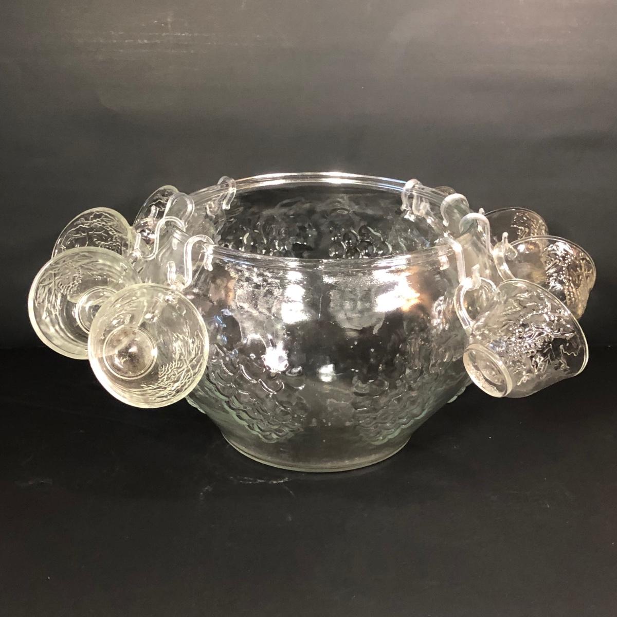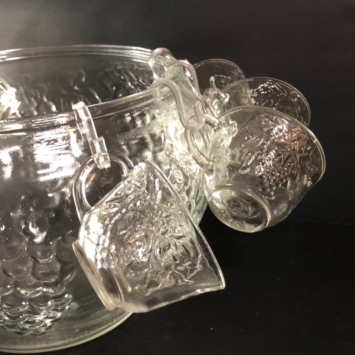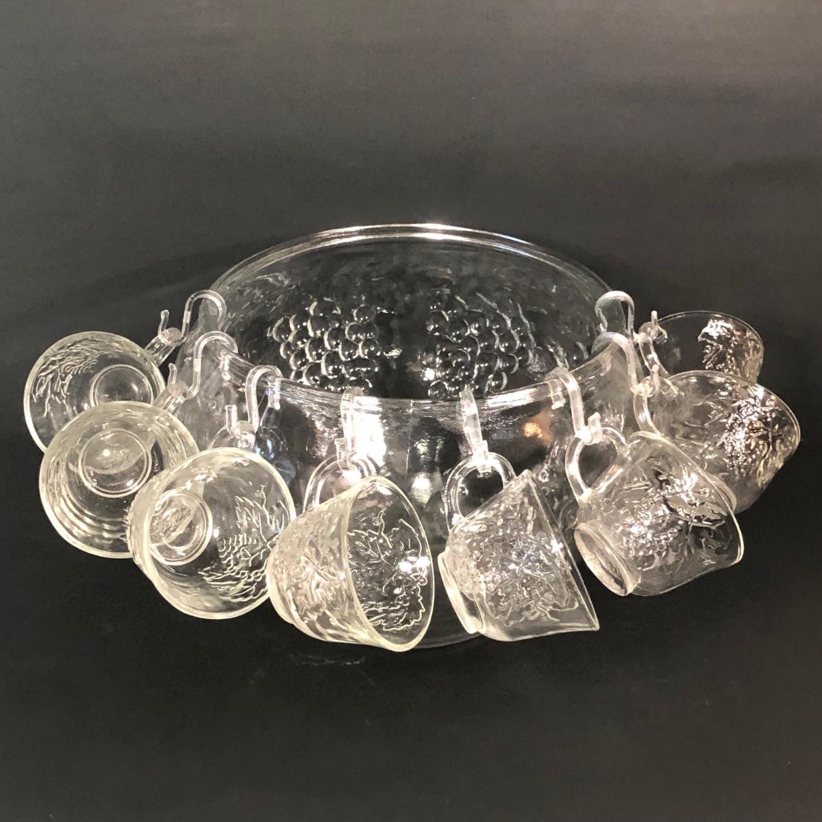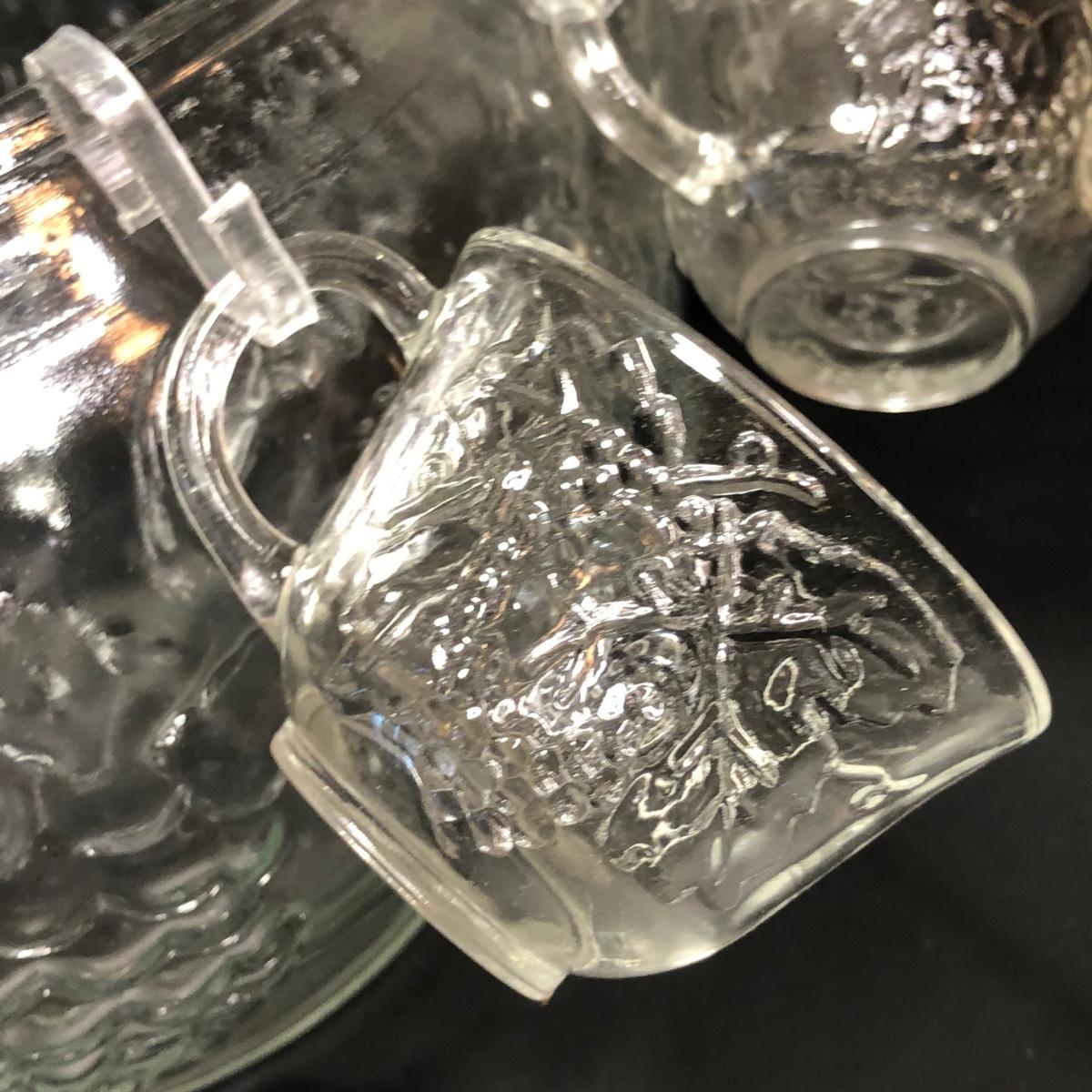 LOT 87M: Grape Themed Kitchen Canisters & Glass Grape Bowl w/ 8 Matching Cups