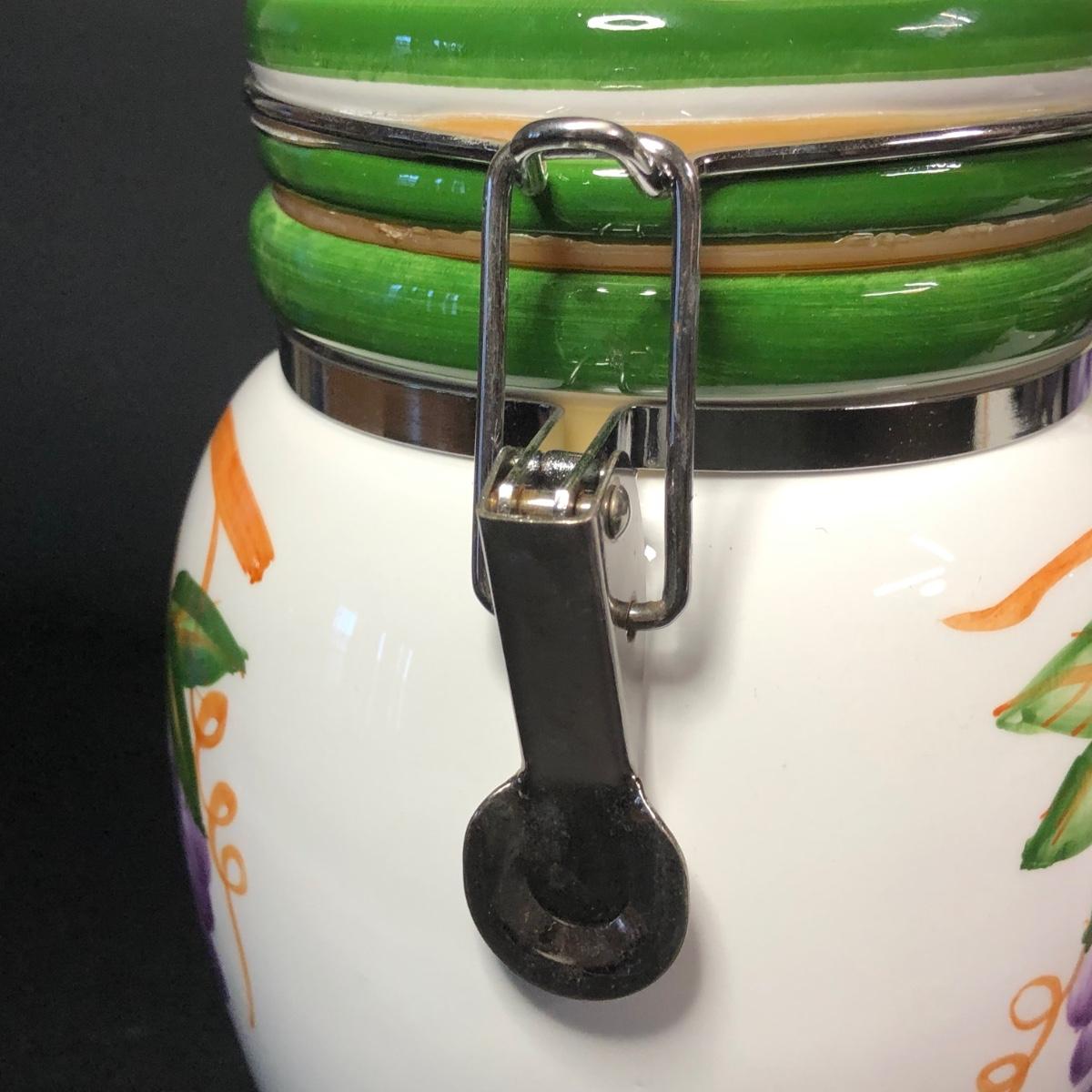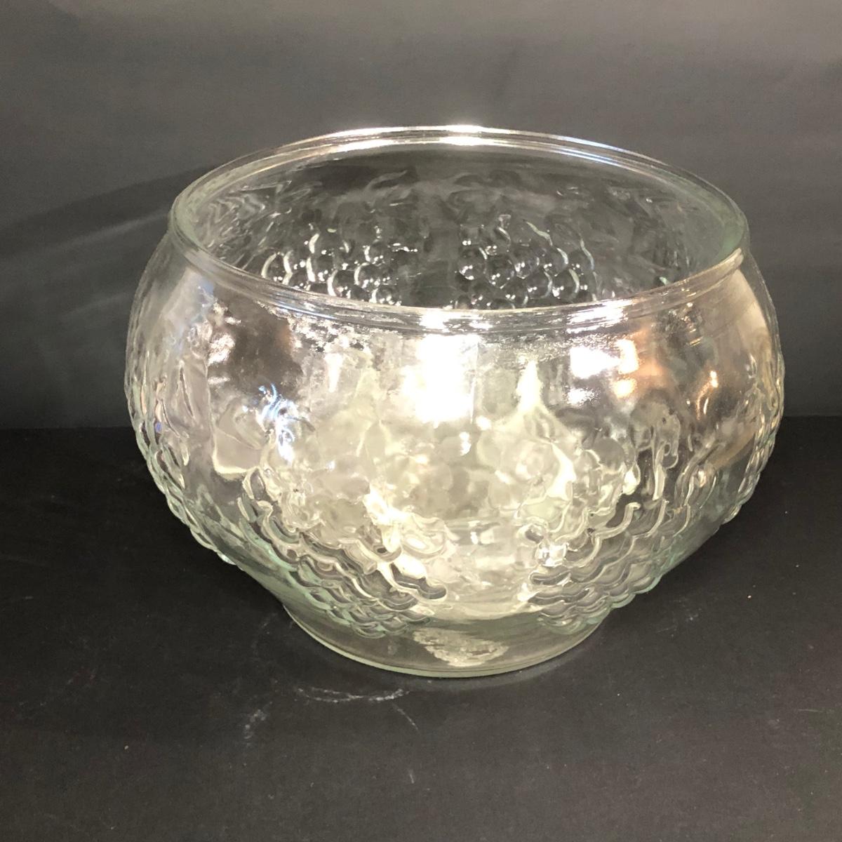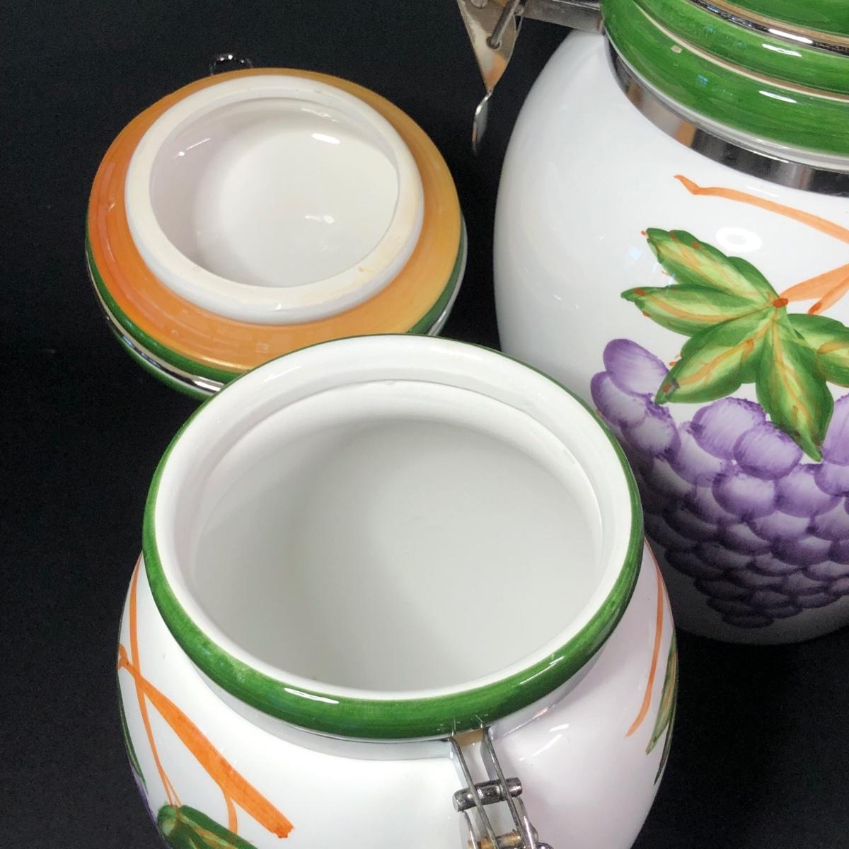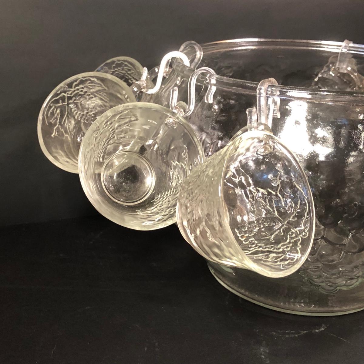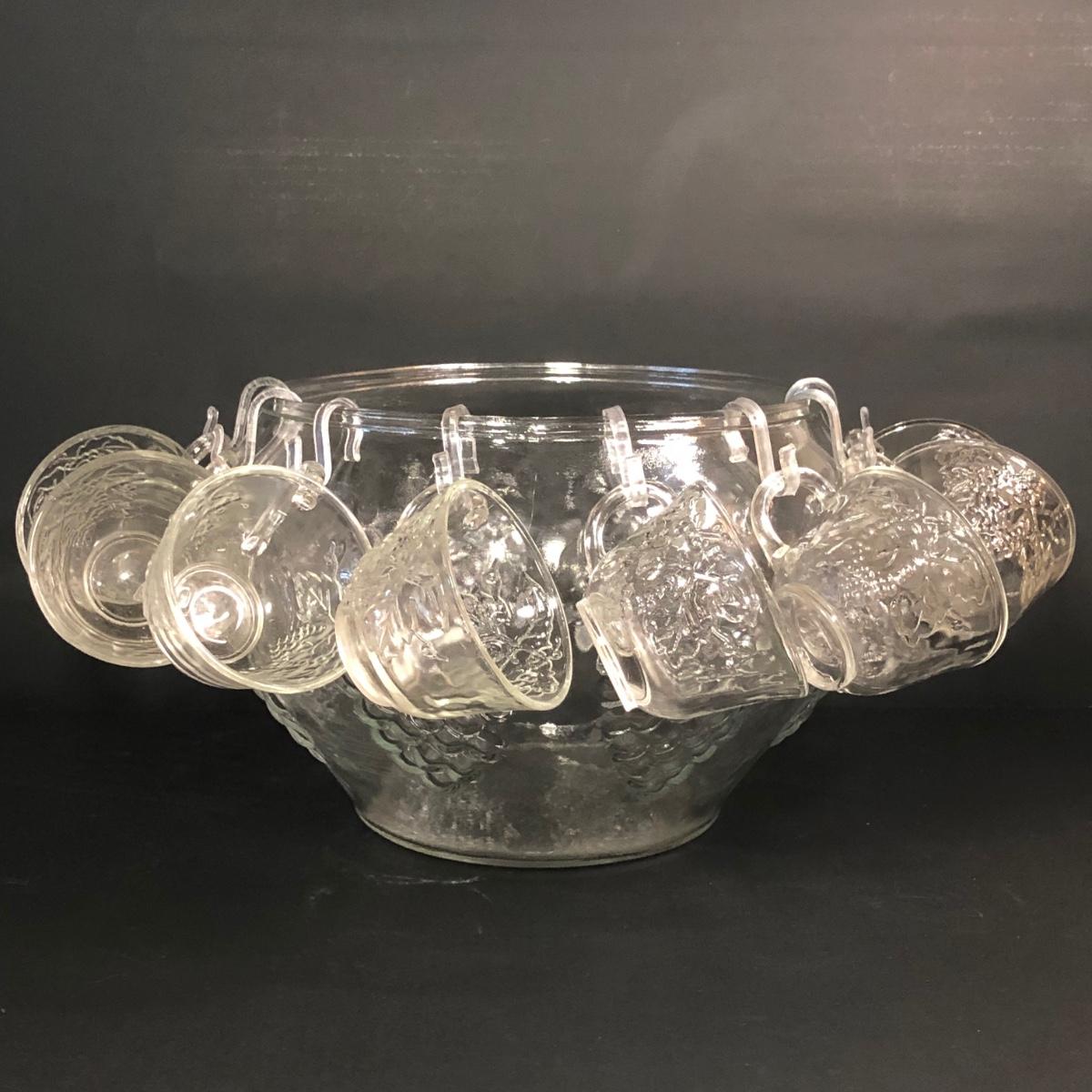 LOT 87M: Grape Themed Kitchen Canisters & Glass Grape Bowl w/ 8 Matching Cups