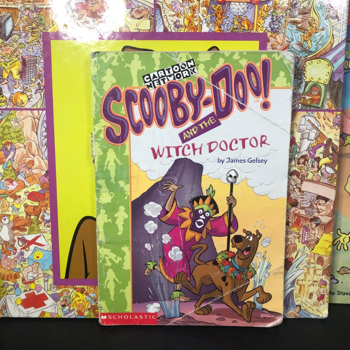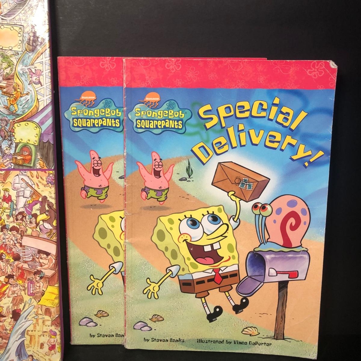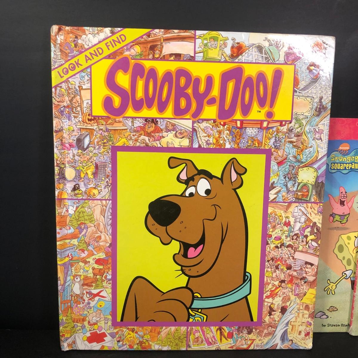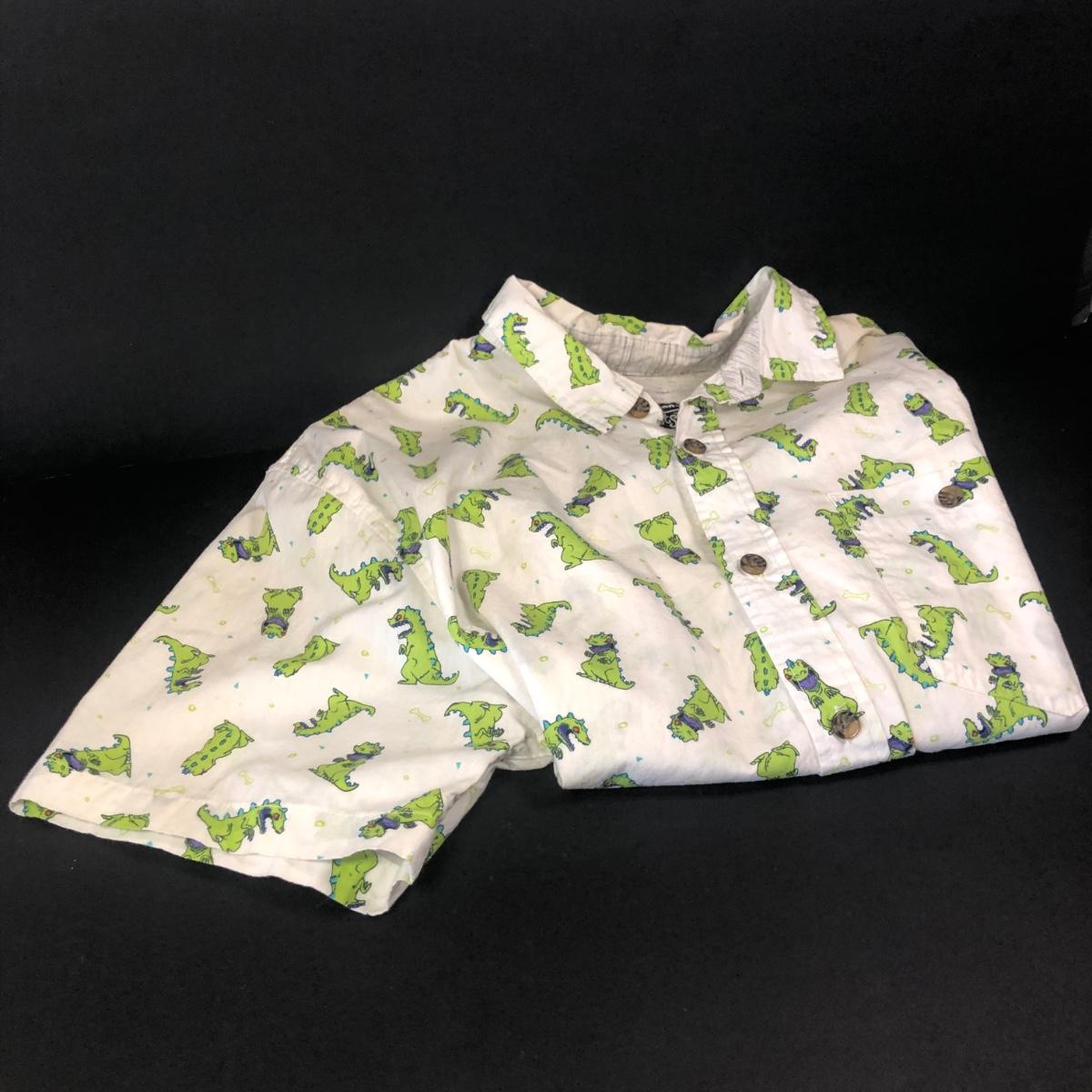 LOT 92M: Child's Medium Nickelodeon Rugrats Reptar Short Sleeve Button Down Shirt w/ Scooby Doo & Spongebob Books