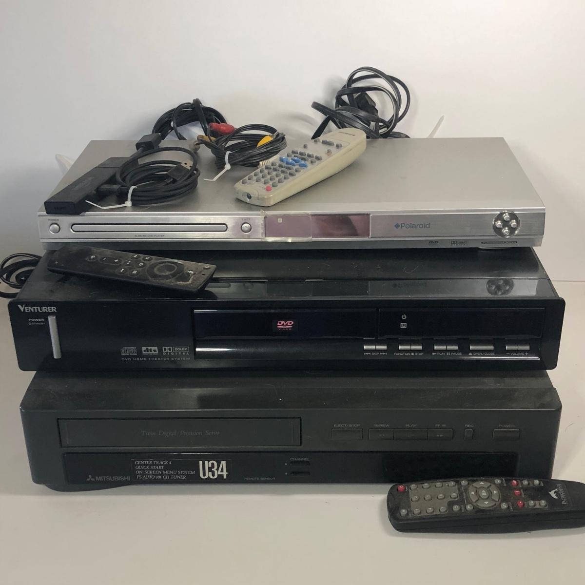 LOT 107M: Polaroid DHX-202 DVD Player w/ Remote, Venturer DVD Home Theatre System, Mitsubishi Center Track 4 VHS Player U34 & More