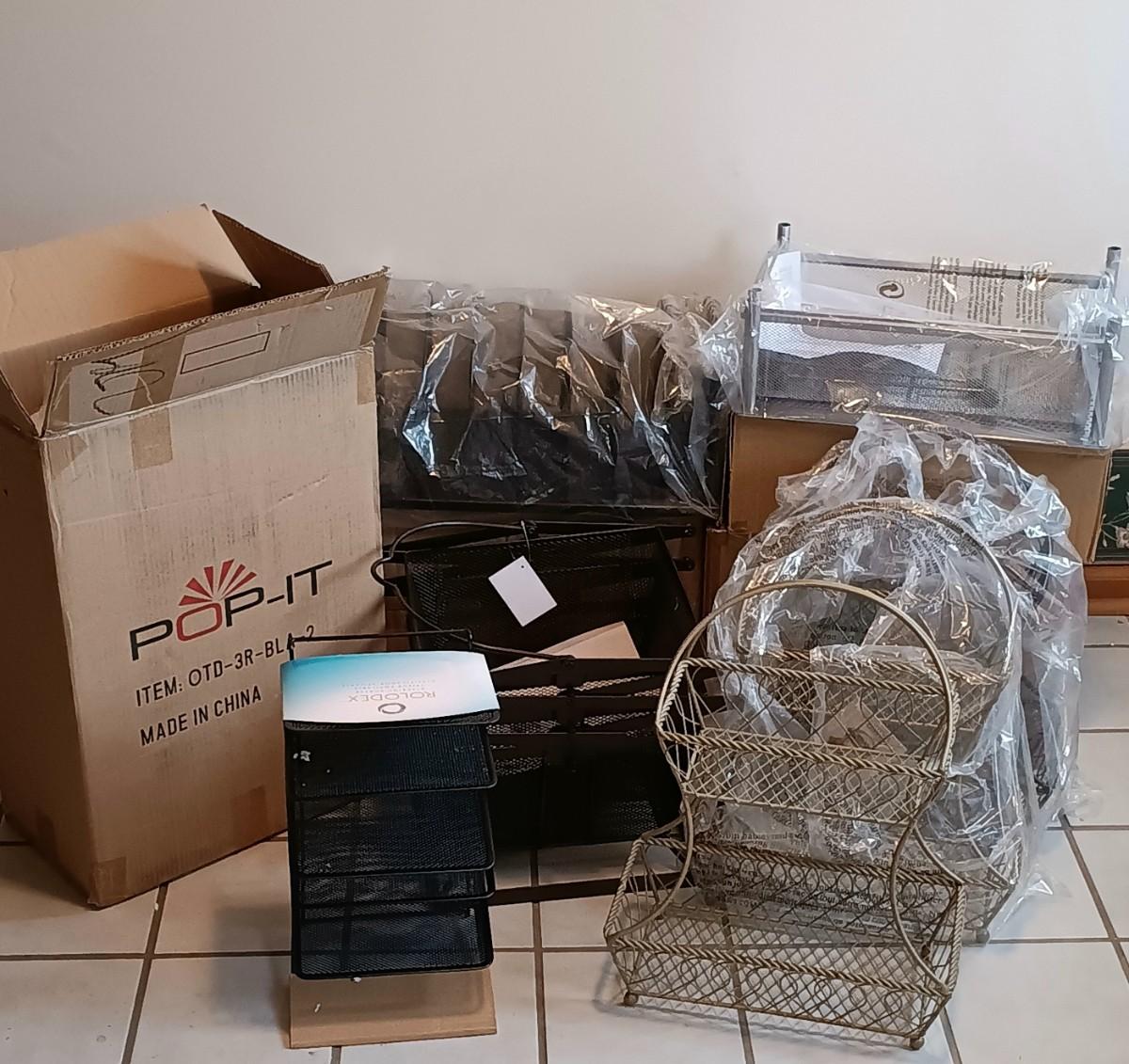 LOT 3K: Wire Home Decor- Mikasa Flatback Baskets, Stackable Basket Drawer, Pop-It Origami Shelf & More