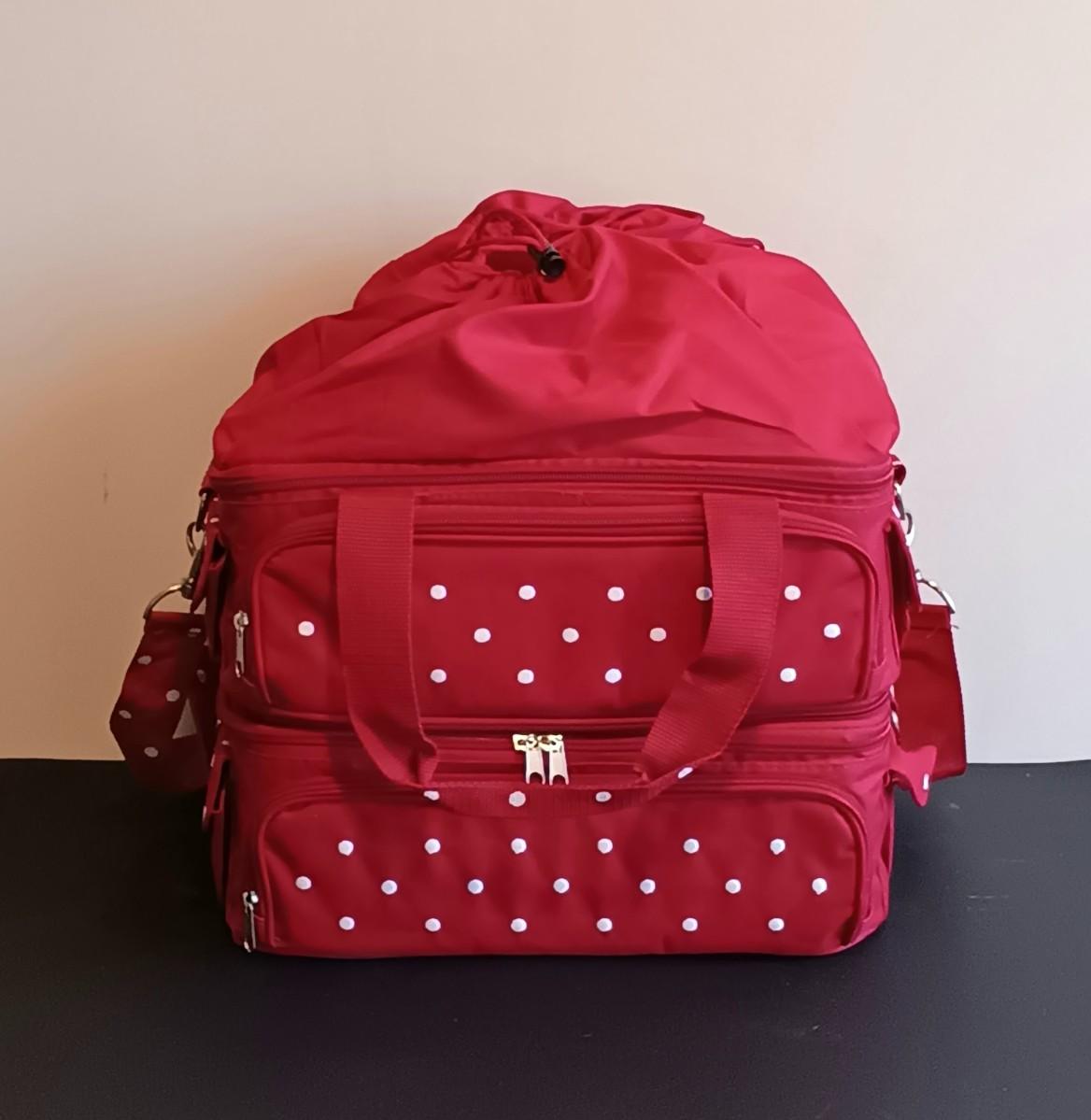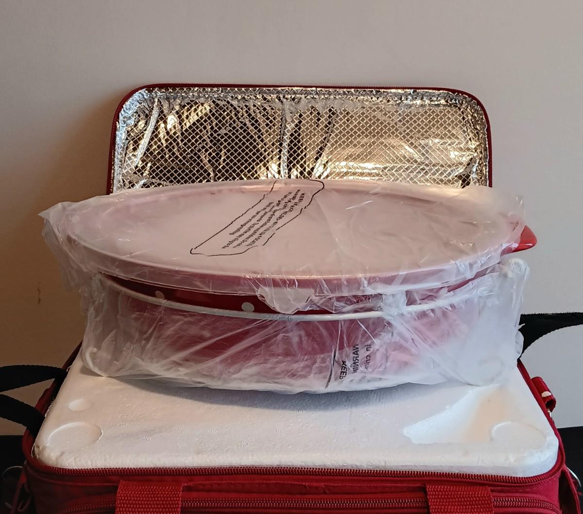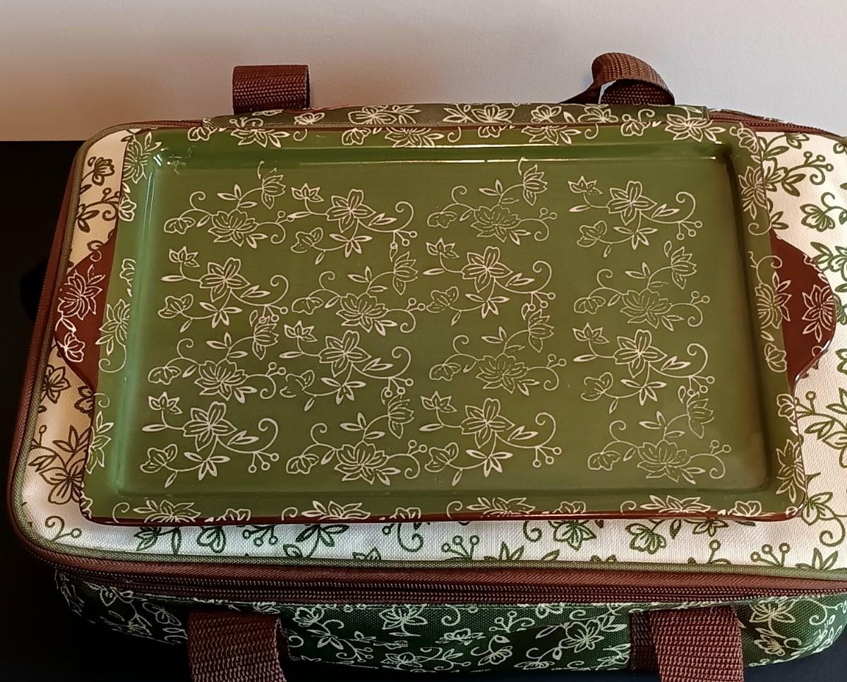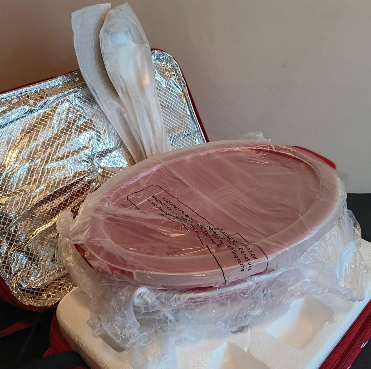 LOT 7K: Temp-Tations Red Polka Dot Bakeware Set and Floral Lace Set w/ Insulated Totes