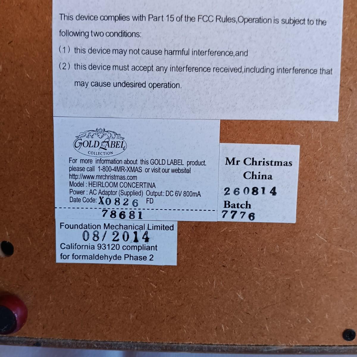 LOT 20K: Gold Label Collection Mr. Christmas Heirloom Concertina Music Box