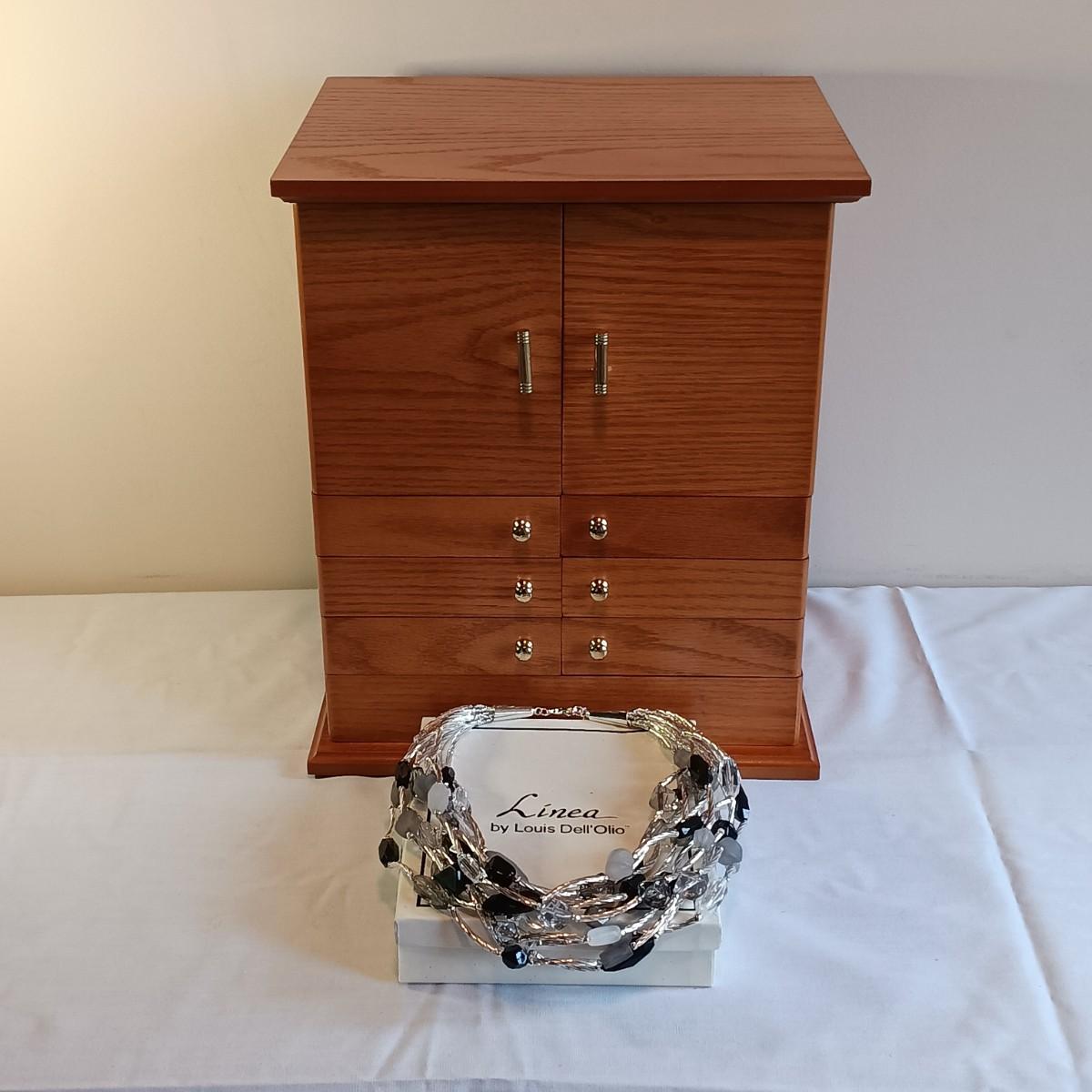 LOT 27K: Lori Greiner 4-Tier Mirrored Jewelry Box with Linea by Louis Dell'Olio Necklace