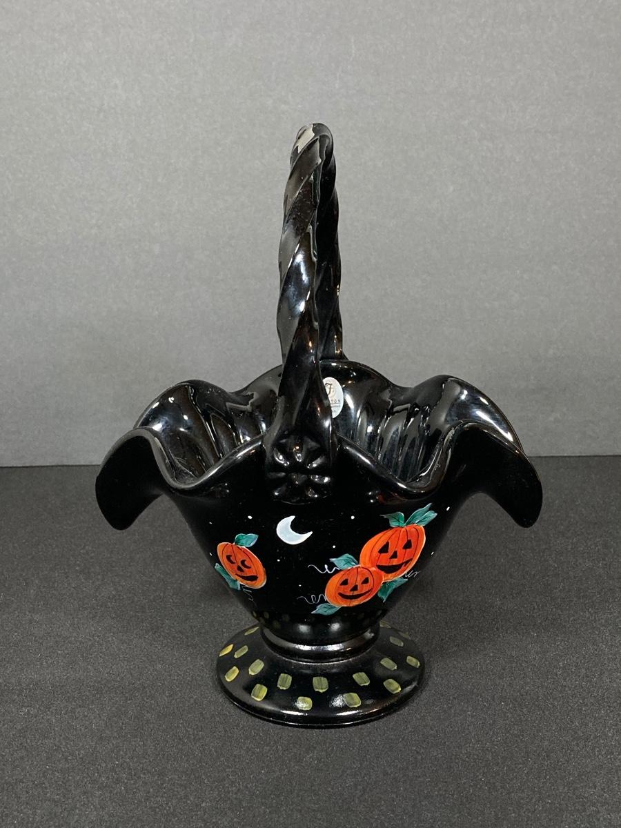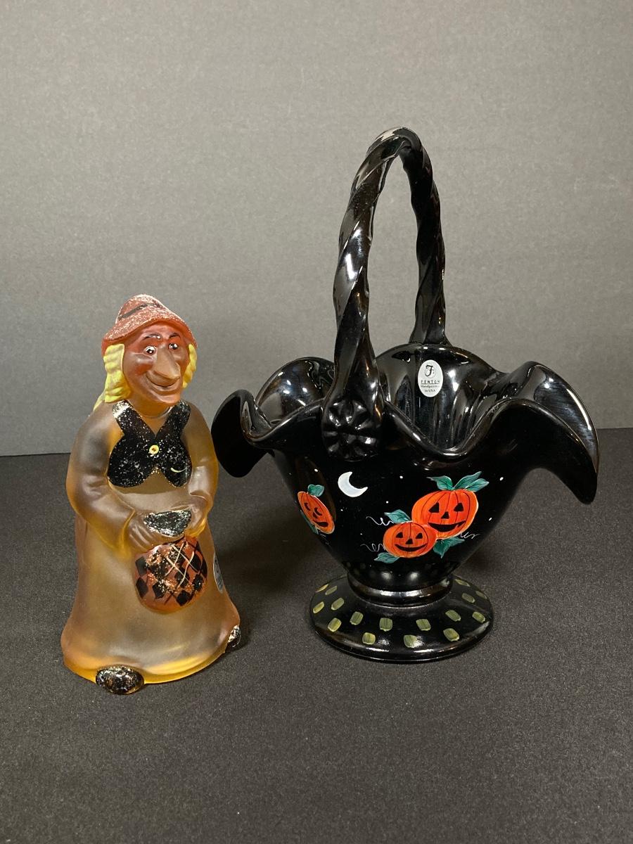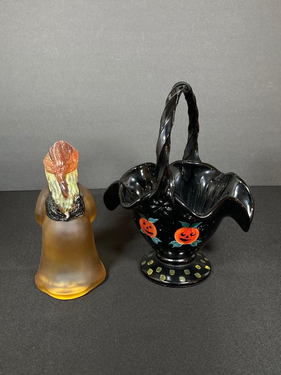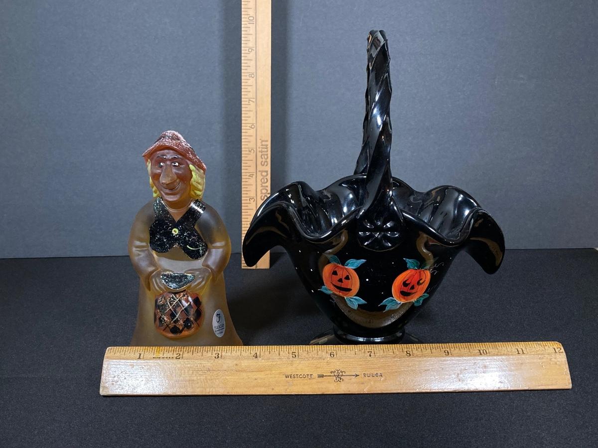 LOT 32J: Fenton Halloween Witch and Black Ruffled Basket