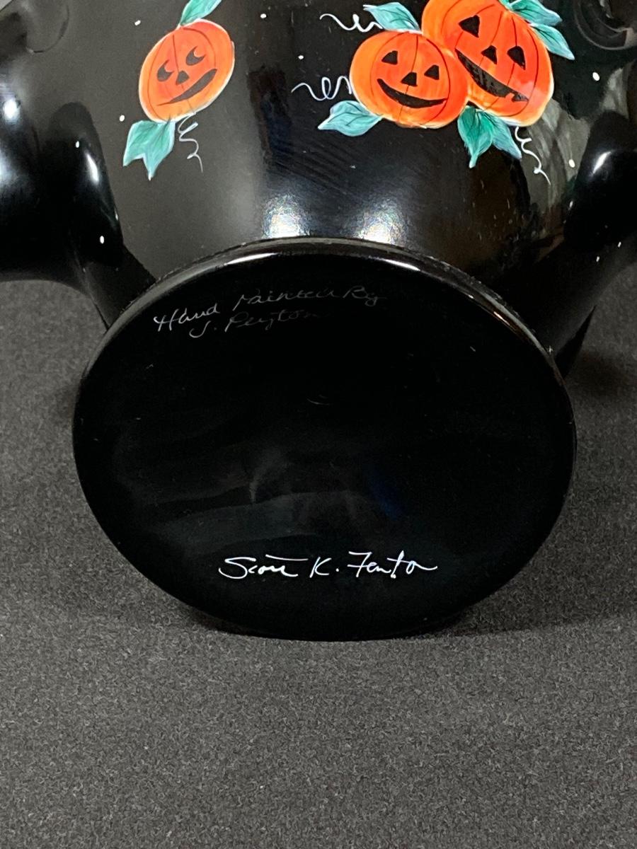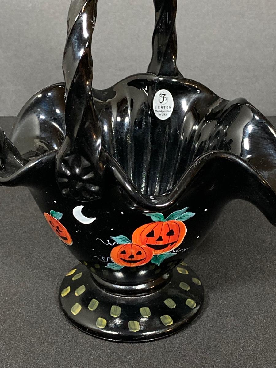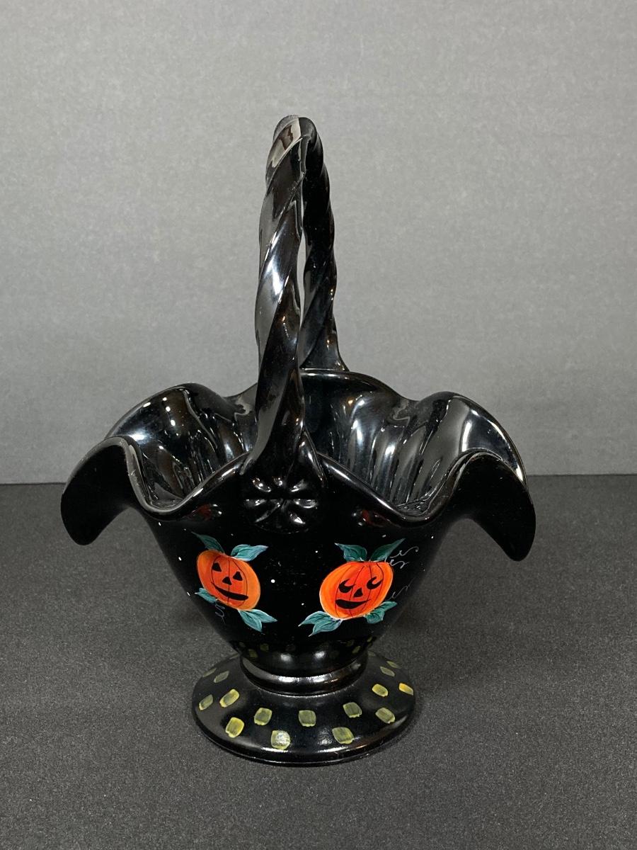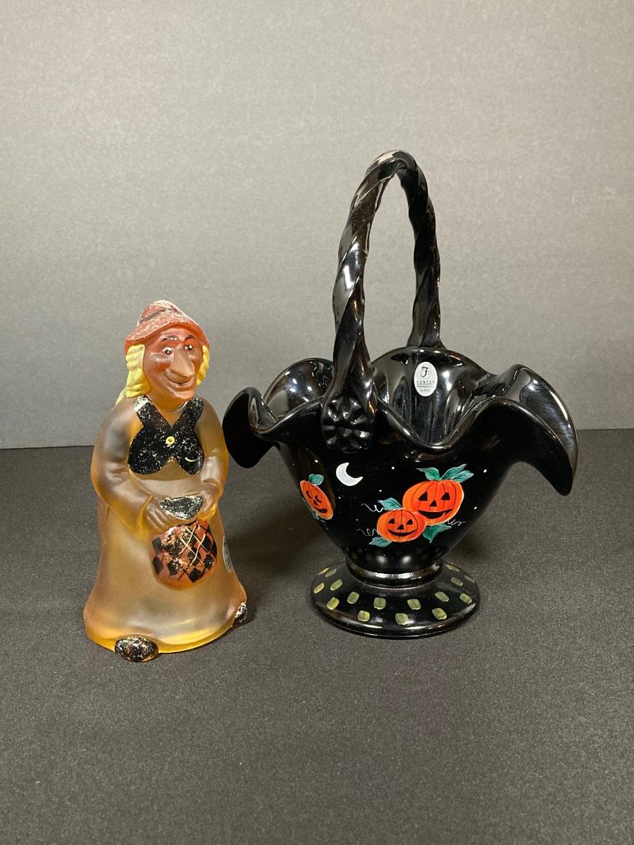 LOT 32J: Fenton Halloween Witch and Black Ruffled Basket