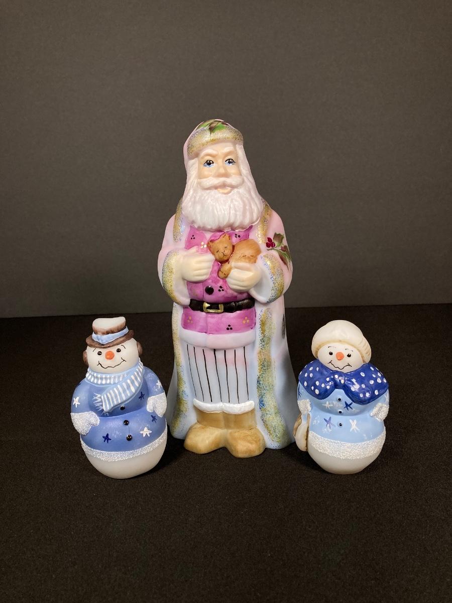 LOT 33J: Fenton Santa with Snowman and Snowlady Collection