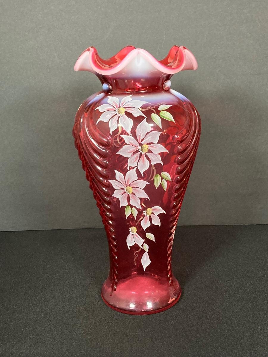 LOT 35J: Fenton Cranberry Ruffled Vase