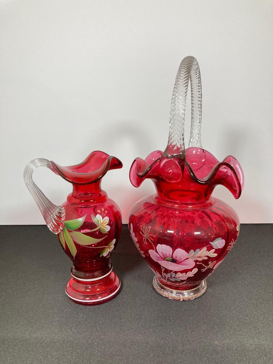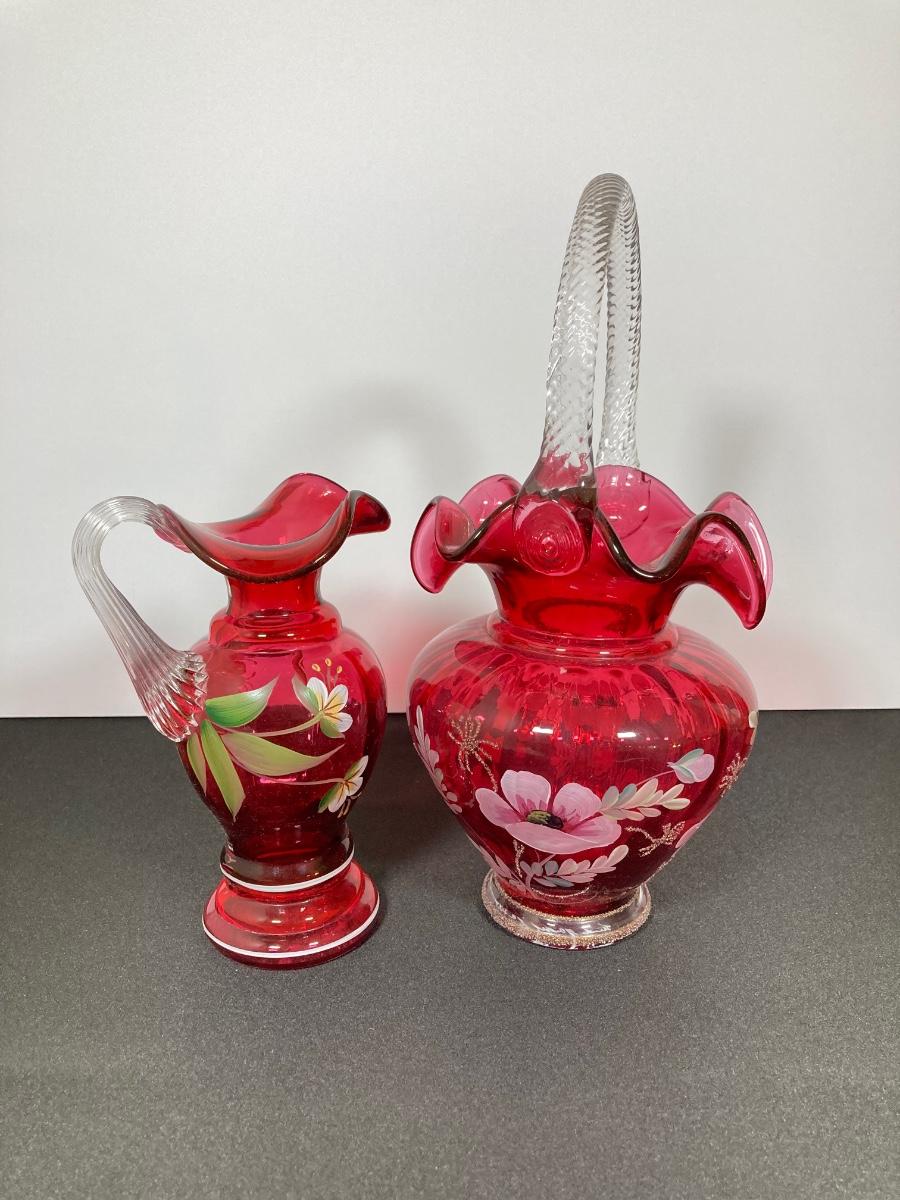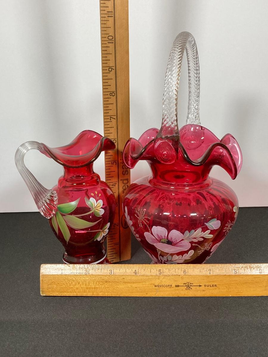 LOT 37J: Fenton Floral Pitcher & 95th Anniversary Legacy Collection Basket