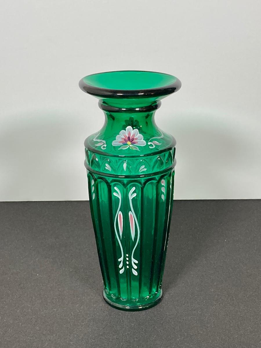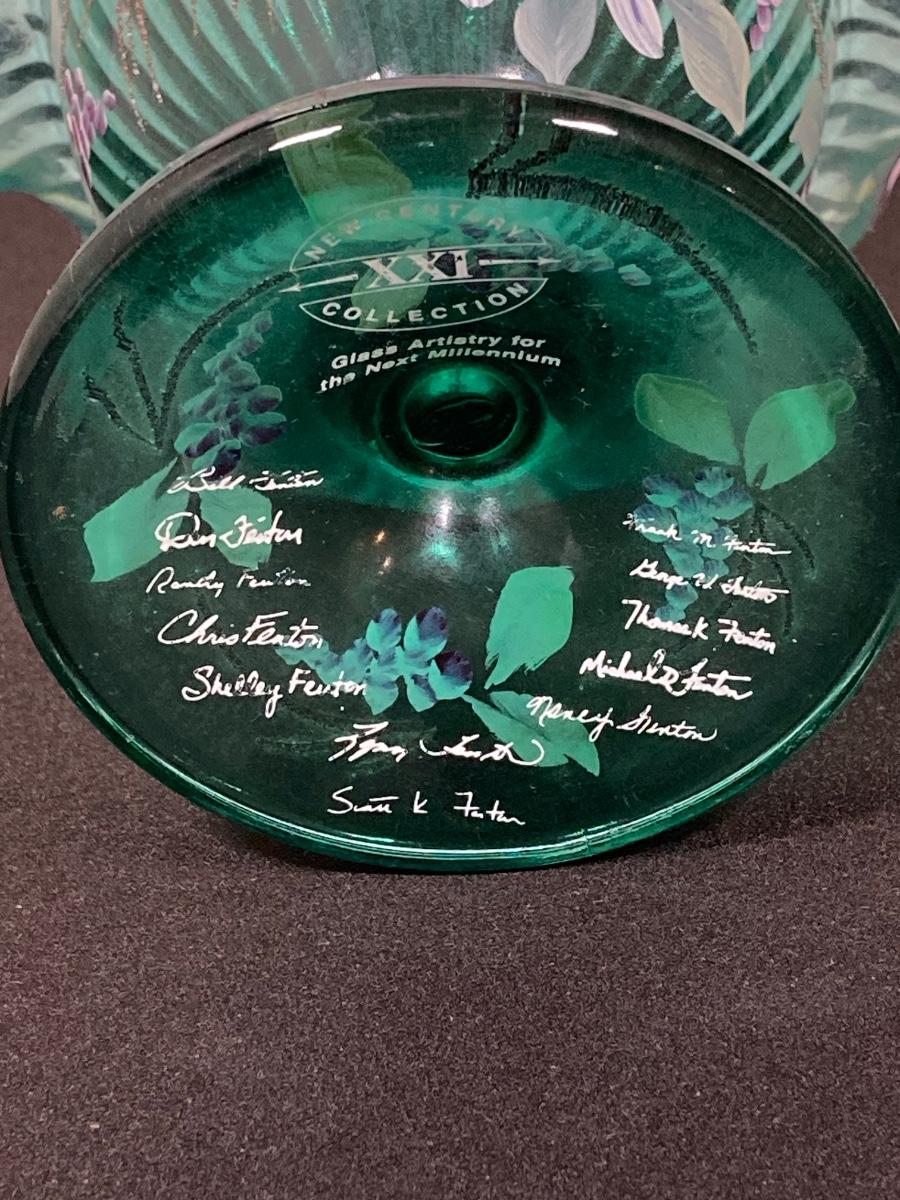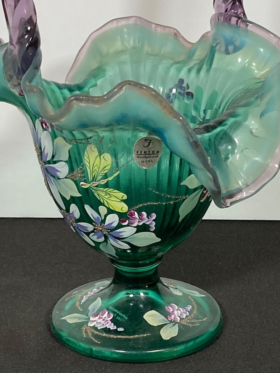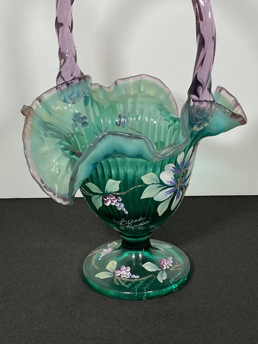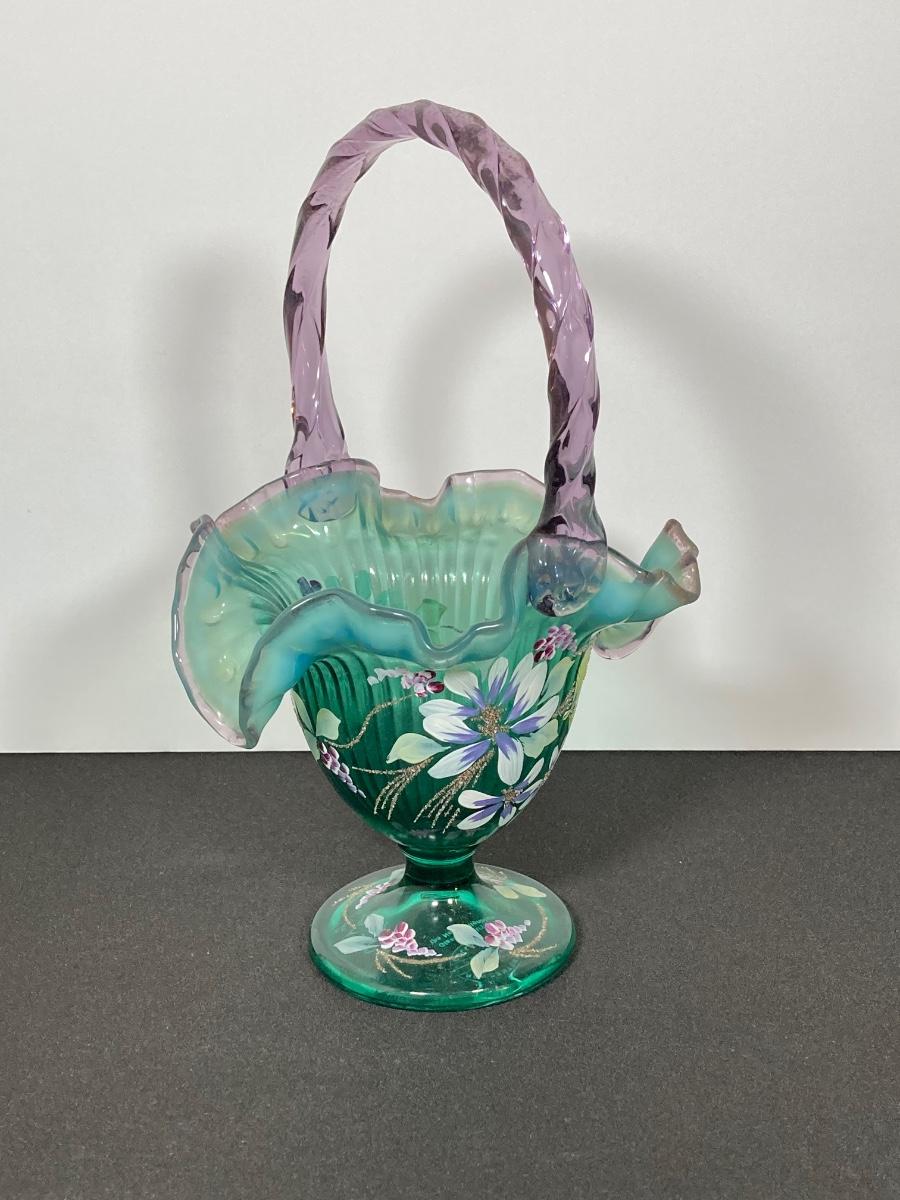 LOT 43J: Fenton Green Vase with New Century Collection Lavender and Green Basket