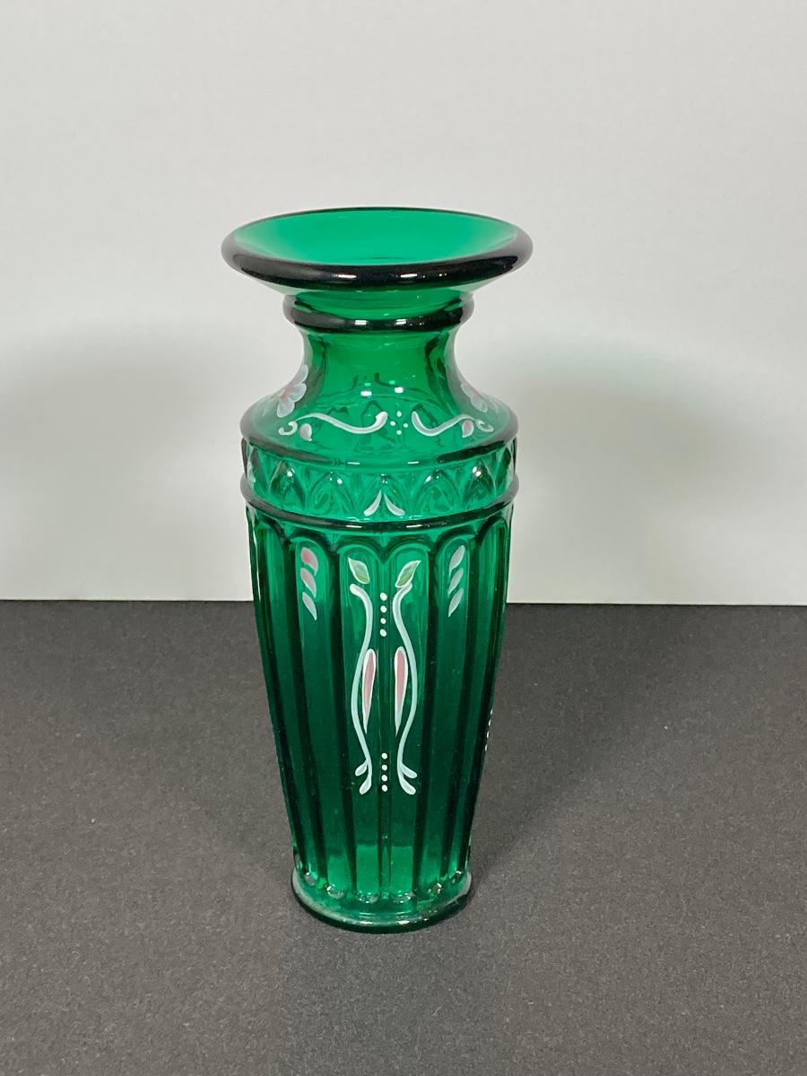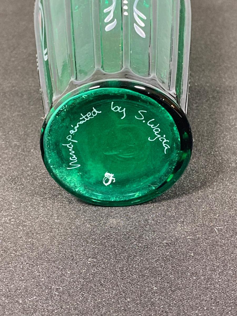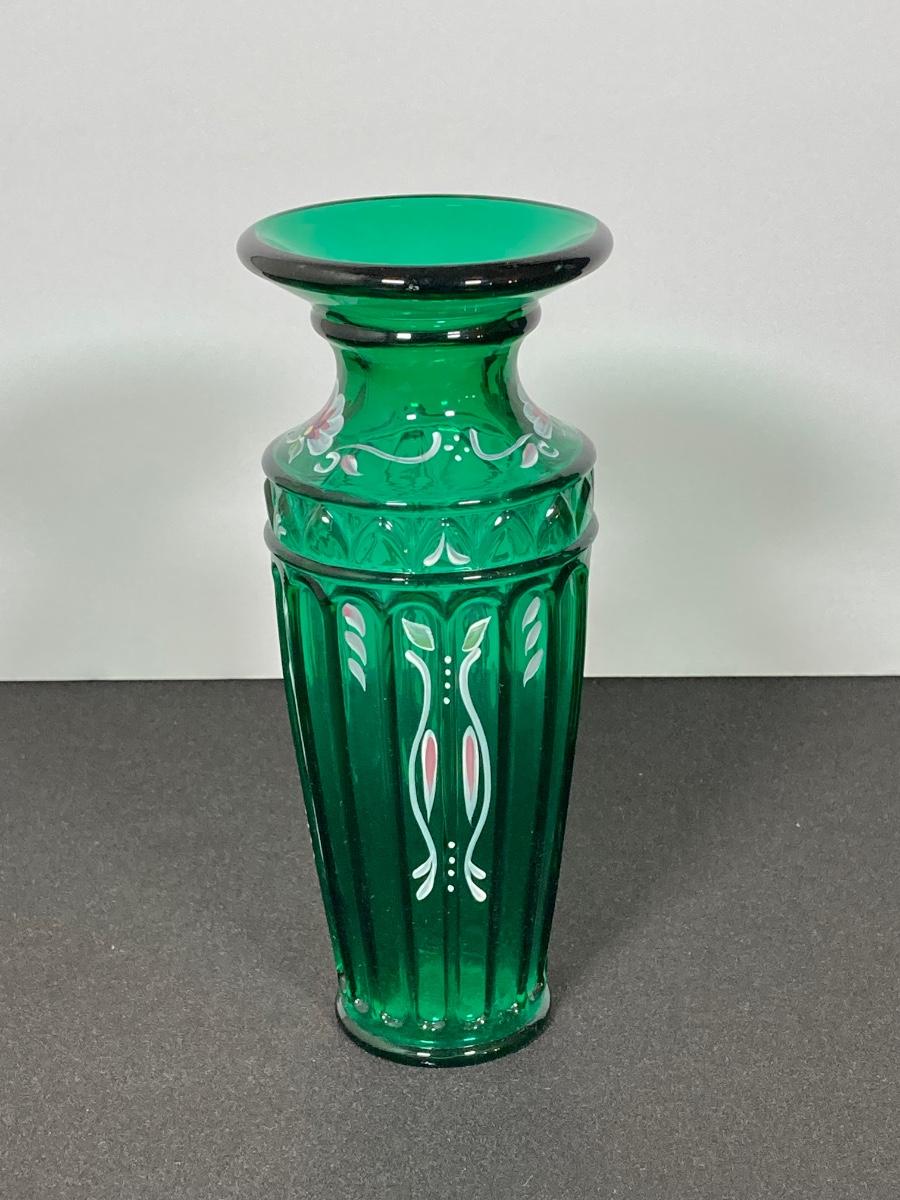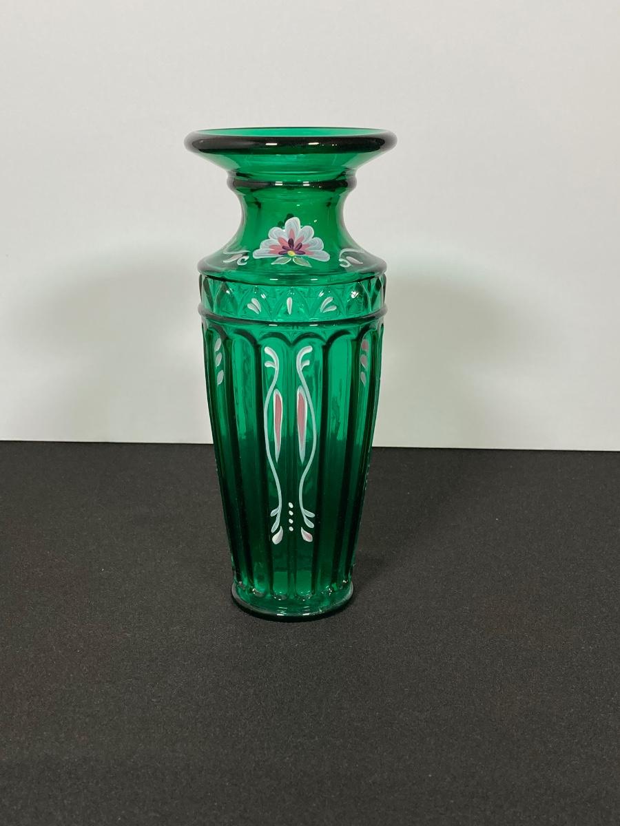 LOT 43J: Fenton Green Vase with New Century Collection Lavender and Green Basket