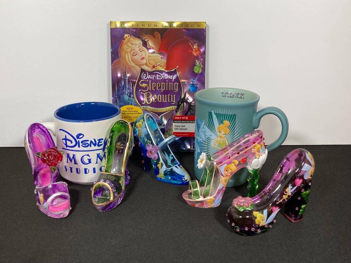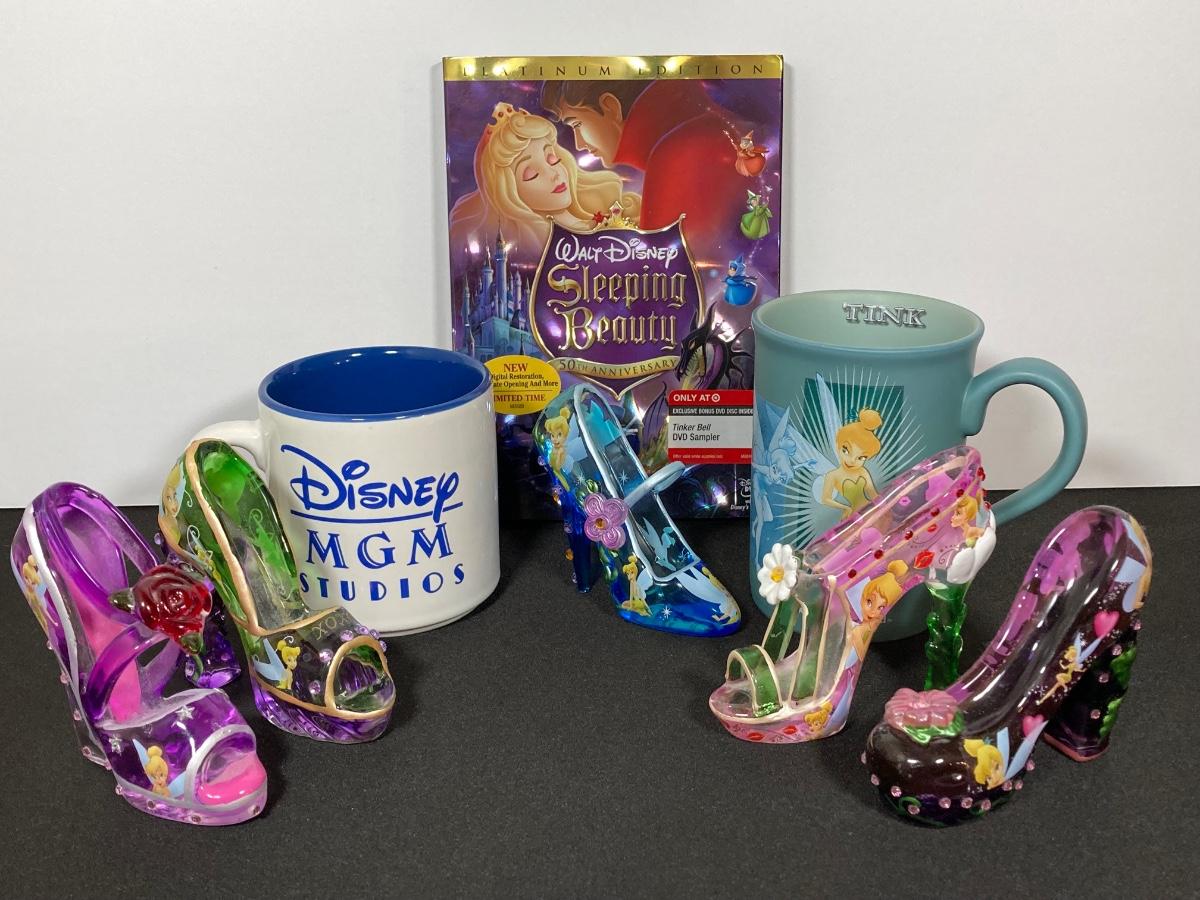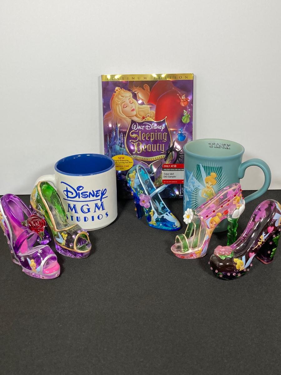 LOT 45J: Disney's Tinkerbell Collection of Glass Shoes, Mug and More