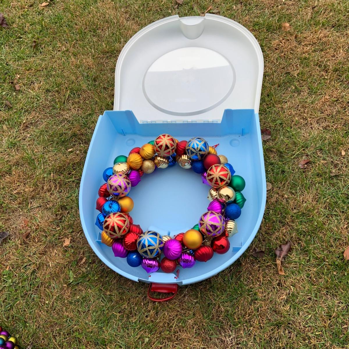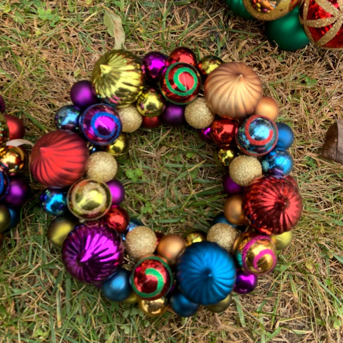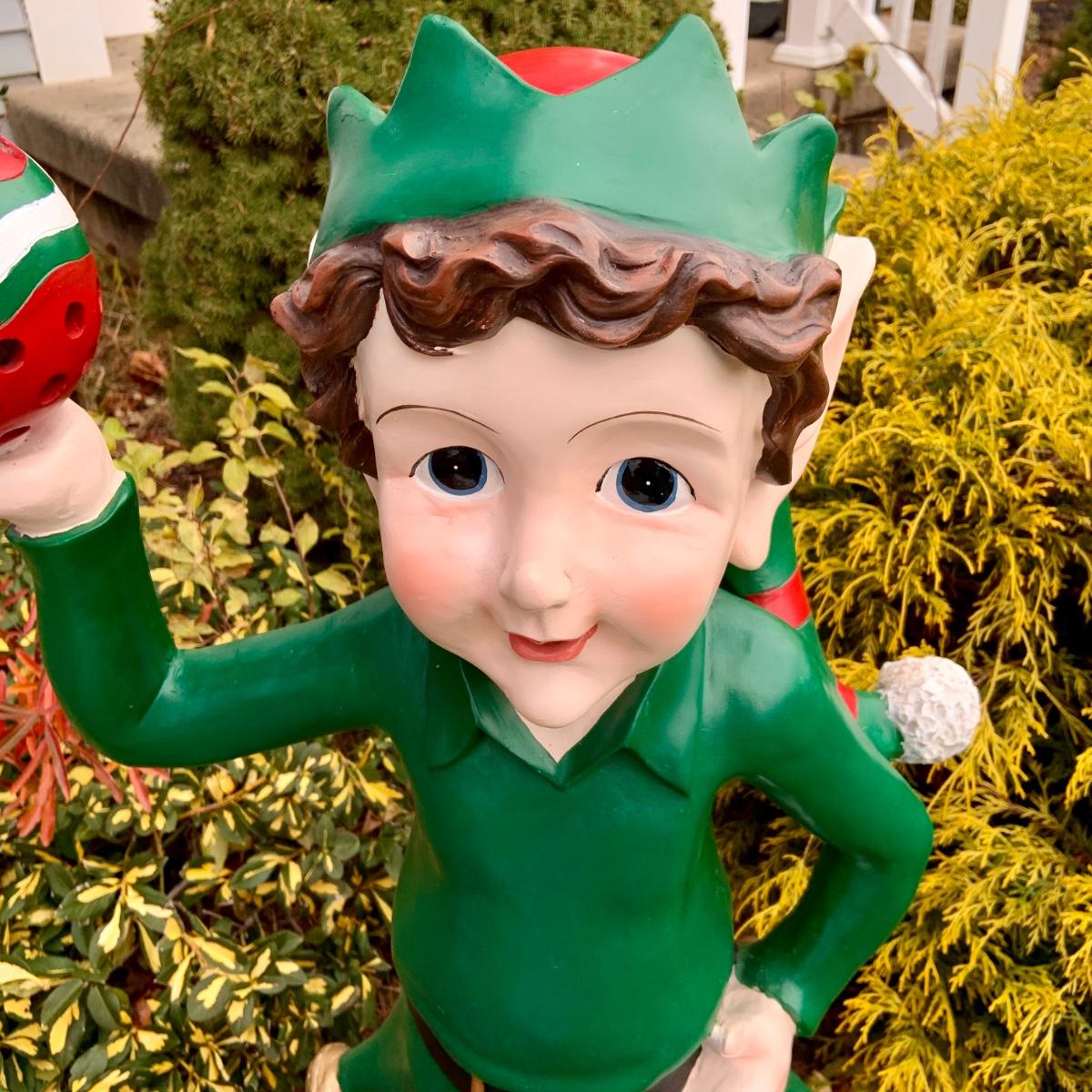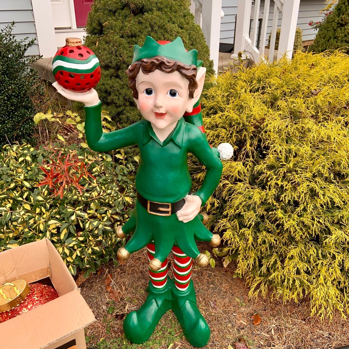 LOT:55G: Large Holiday Elf Outdoor Decoration; Oversized Christmas Bulb and Glass Bulb Wreaths