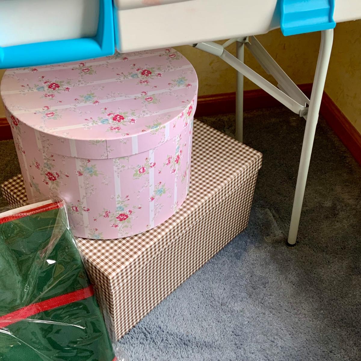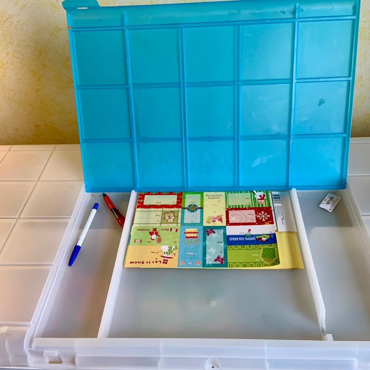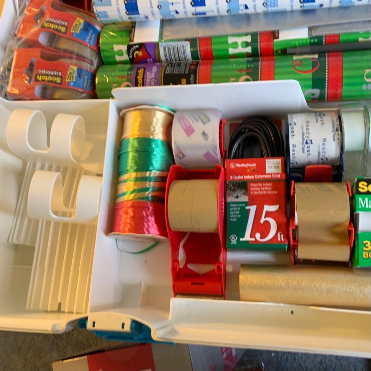 LOT:58G: Snapware Portable Gift Wrap and Crafting Table with Storage Loaded with Tape, Ribbon Gift-wrap and More; Stackable Boxes, Bins and Much More