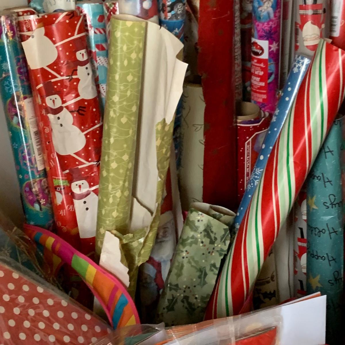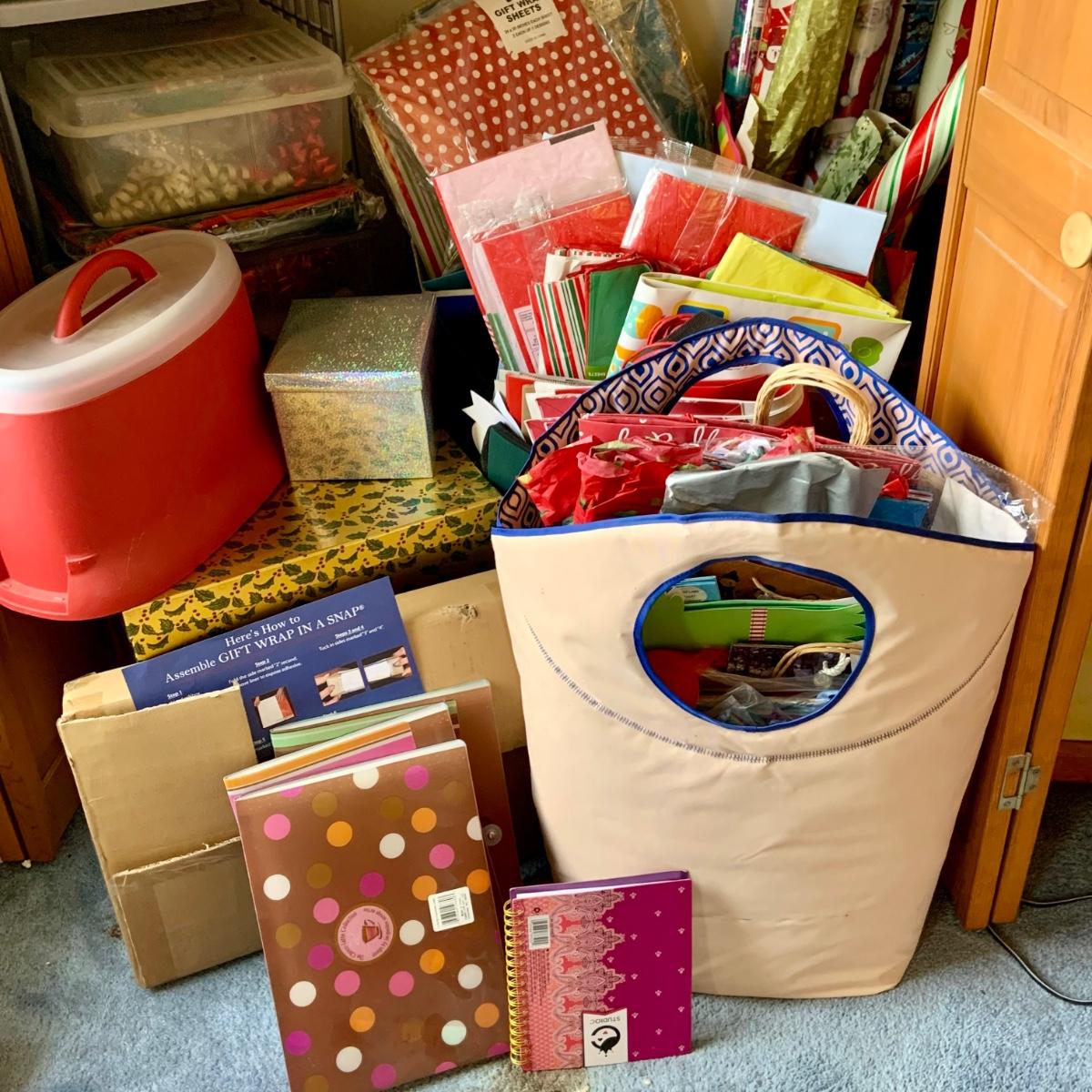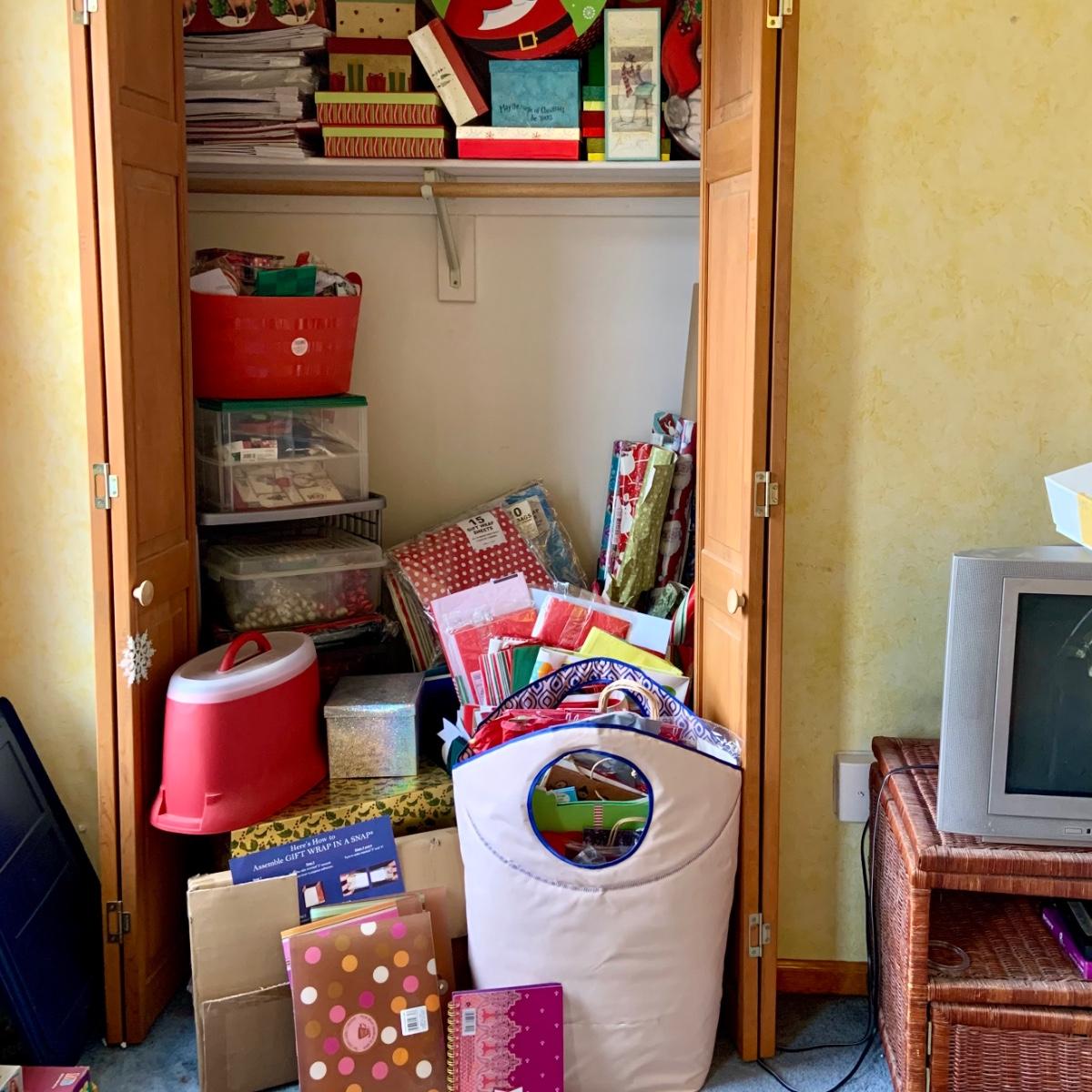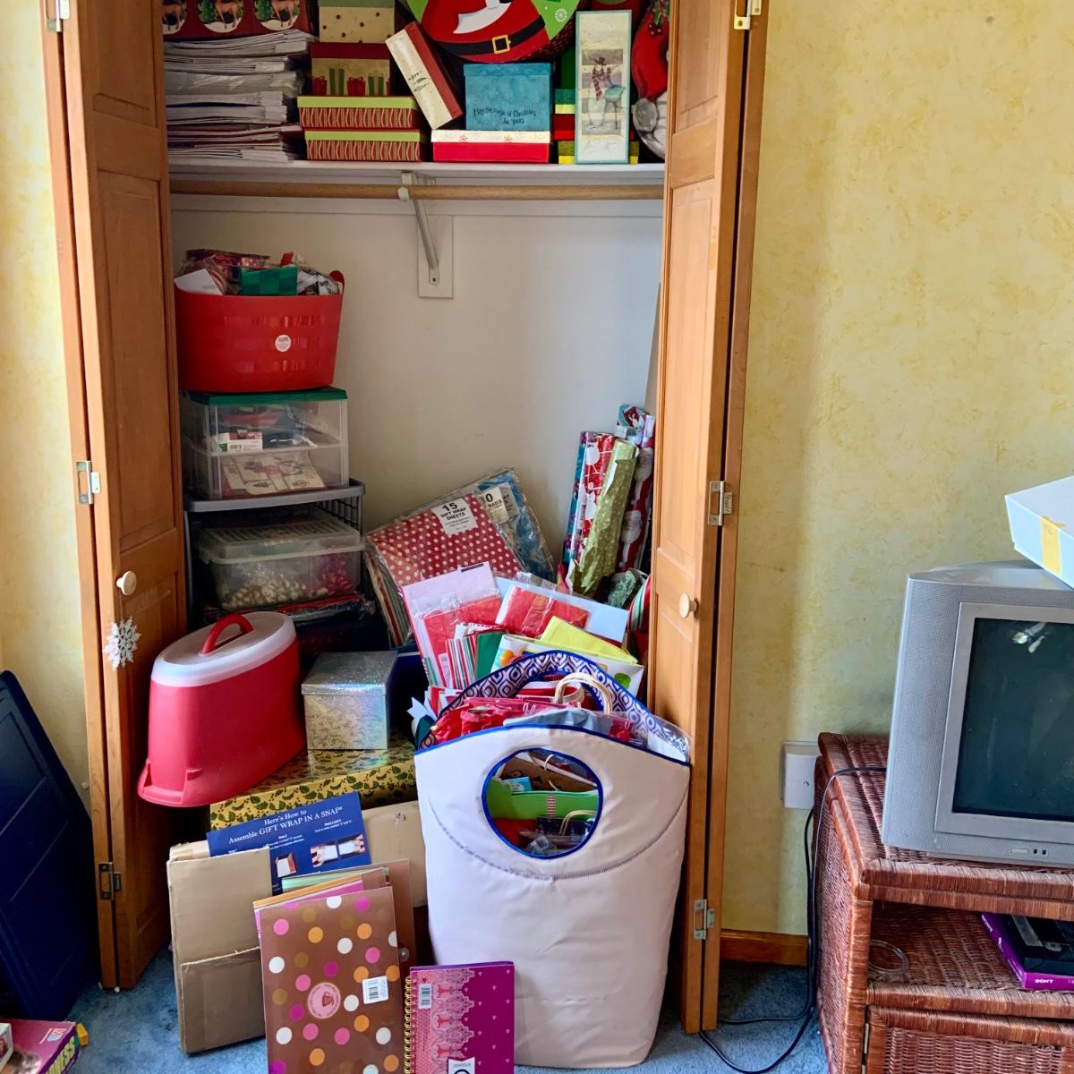 LOT:59G: Christmas Gift-Wrap Closet -Entire Contents of This Closet Includes Wrapping Paper, Gift Bags, Boxes, Tags and More