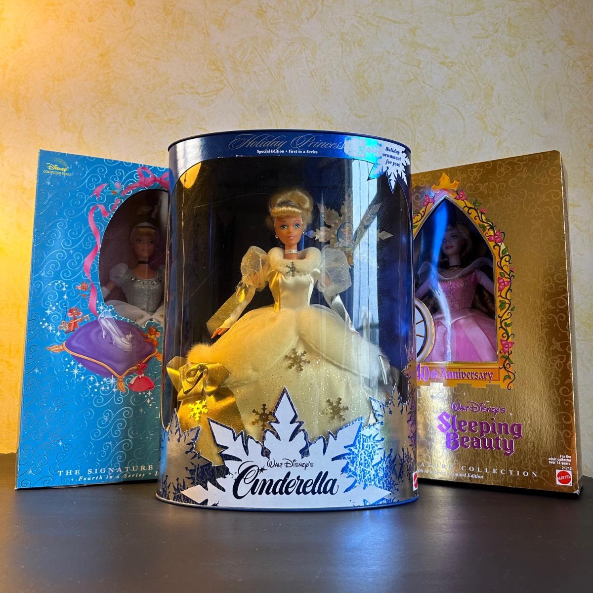 LOT 60N: Disney Collector Dolls - Holiday Princess Cinderella, 40th Anniversary Sleeping Beaty, Cinderella