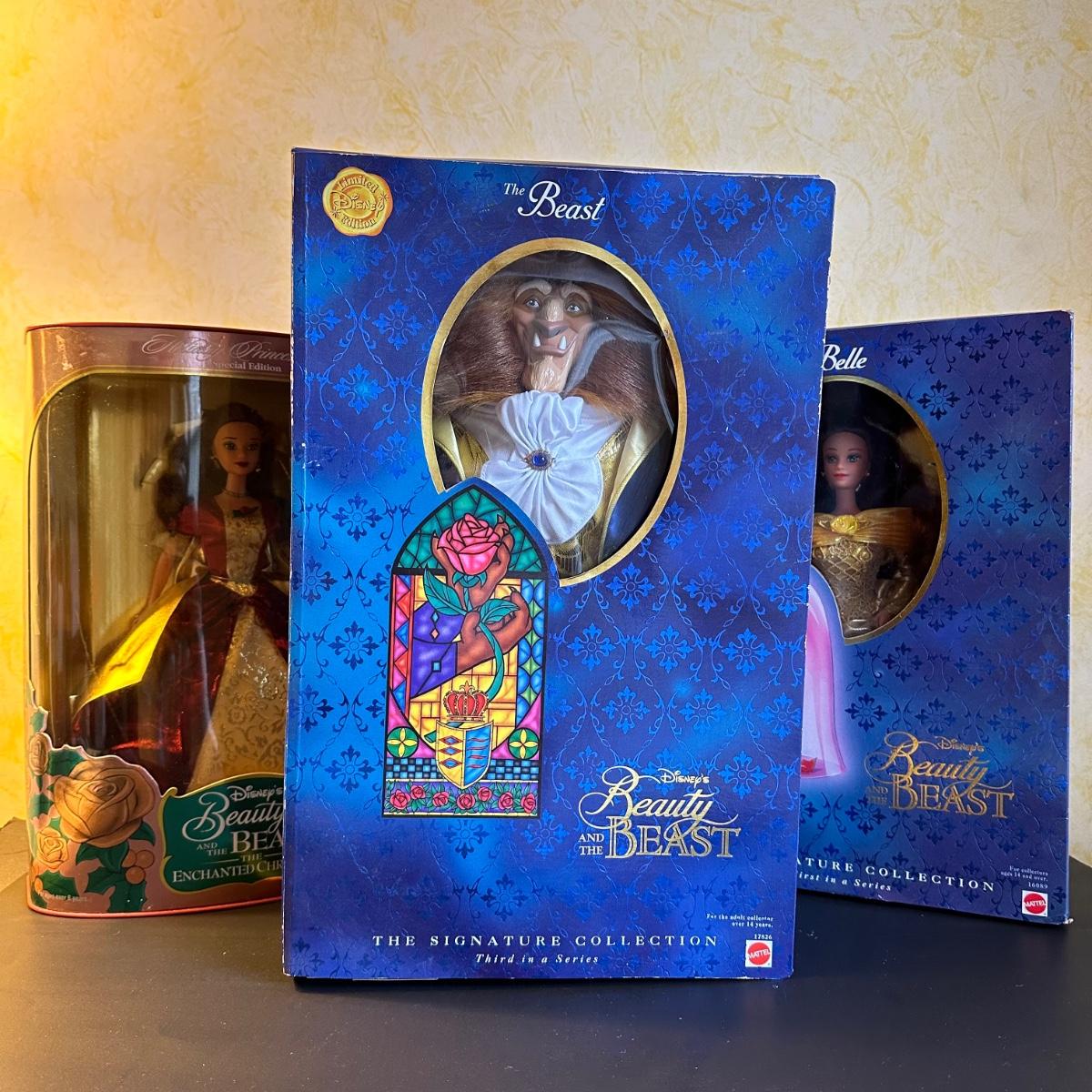 LOT 62N: Disney Beauty And The Beast Collector Dolls - The Beast, Belle, Holliday Princess Belle