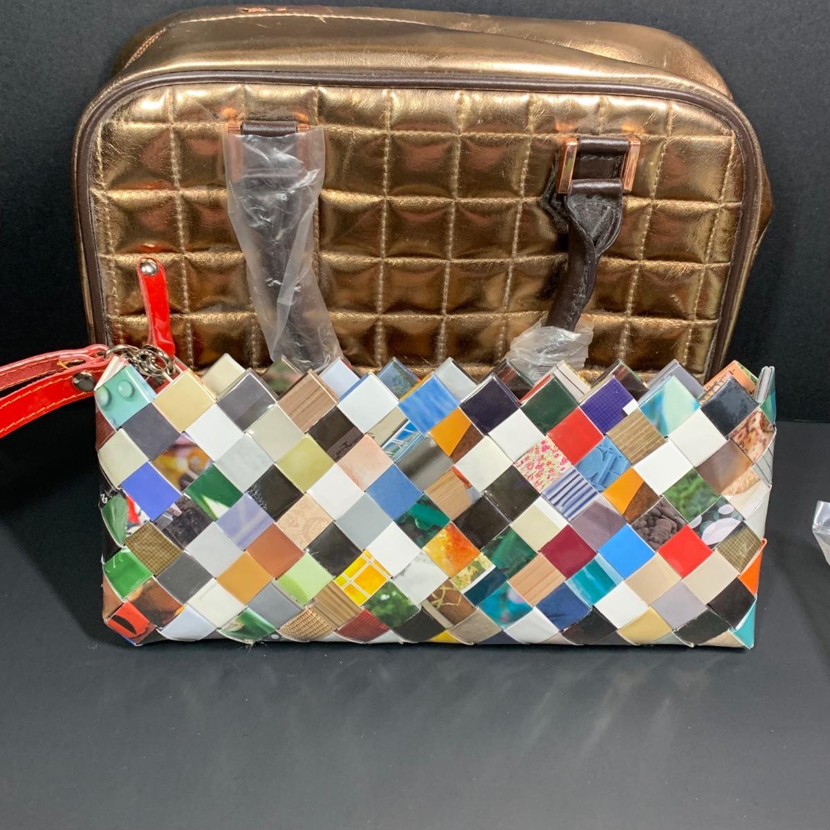 LOT 92R: Nahui Ollin Candy Wrapper Clutch/Wristlet Bag Multicolor Unique (2-NEW) & Jewelry Organizing/Travel Bag