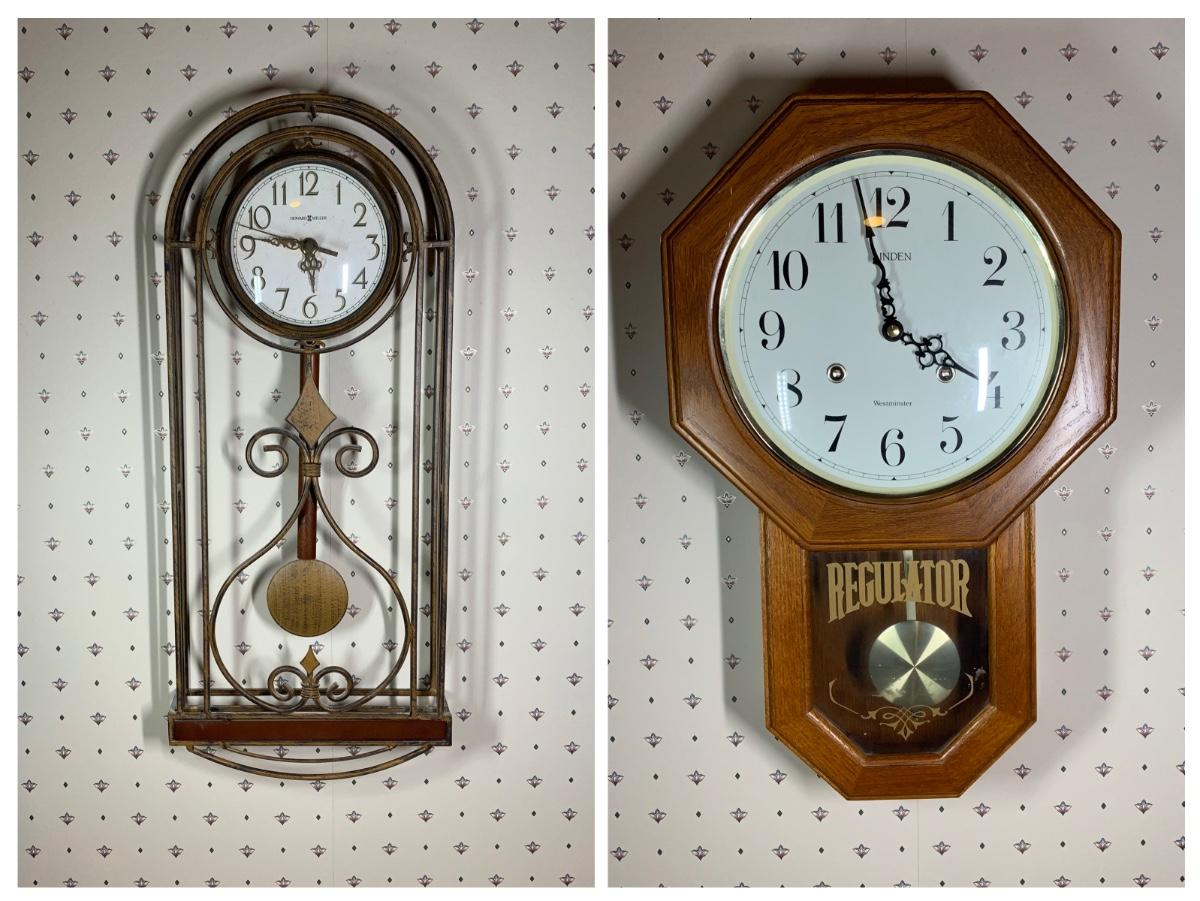 LOT 94R: Clock Collection: Linden School House Clock w/Westminster Chimes & Howard Miller Wall Clock