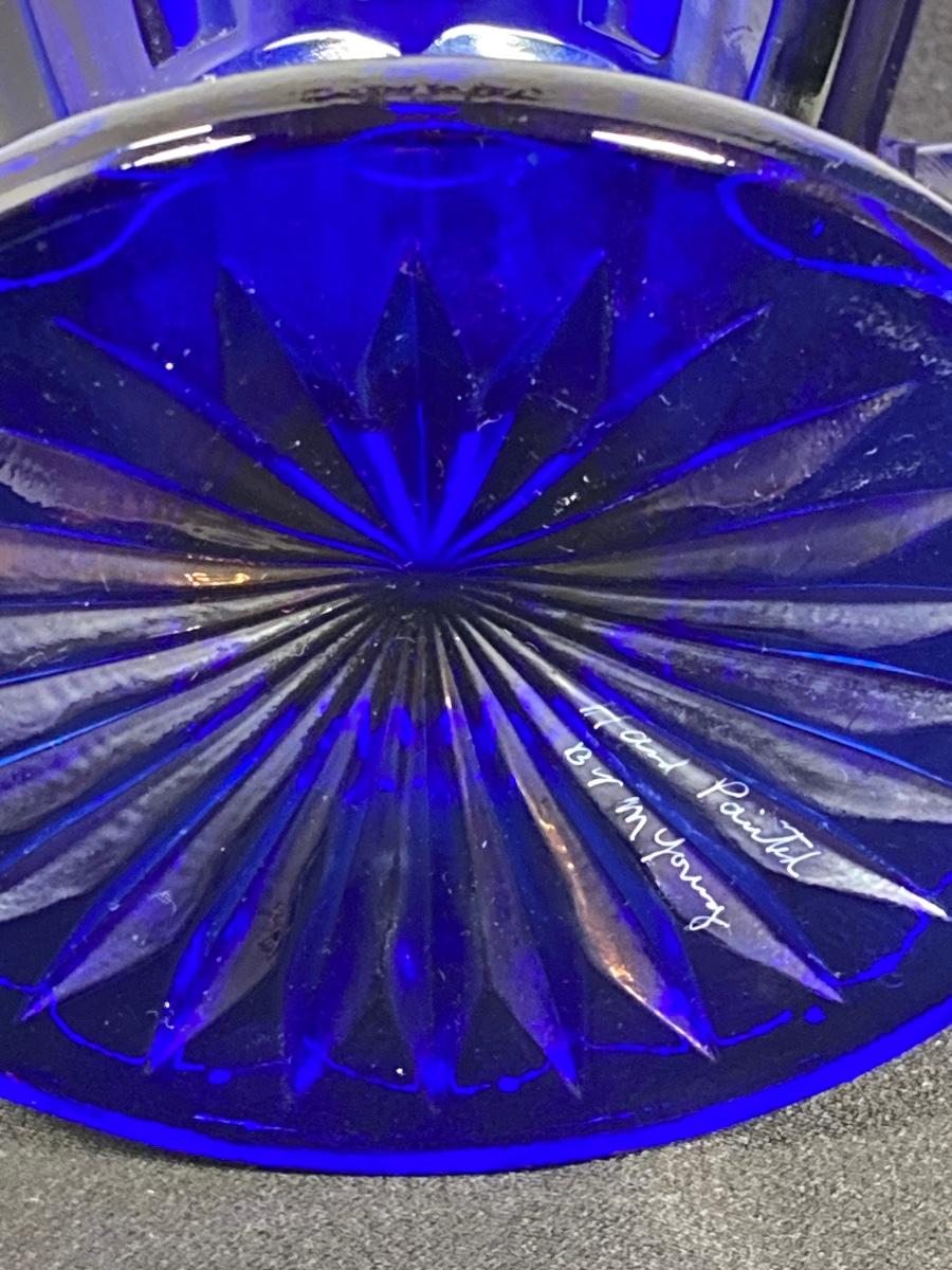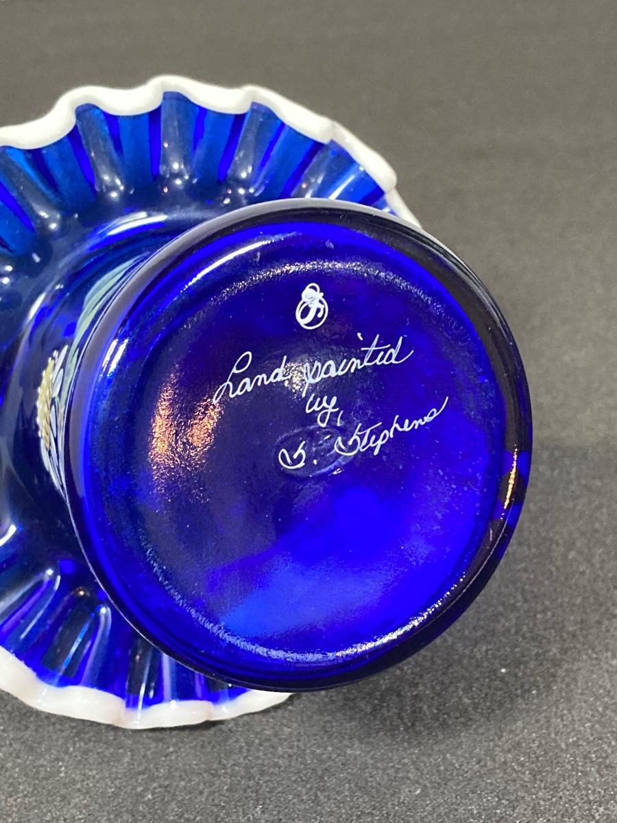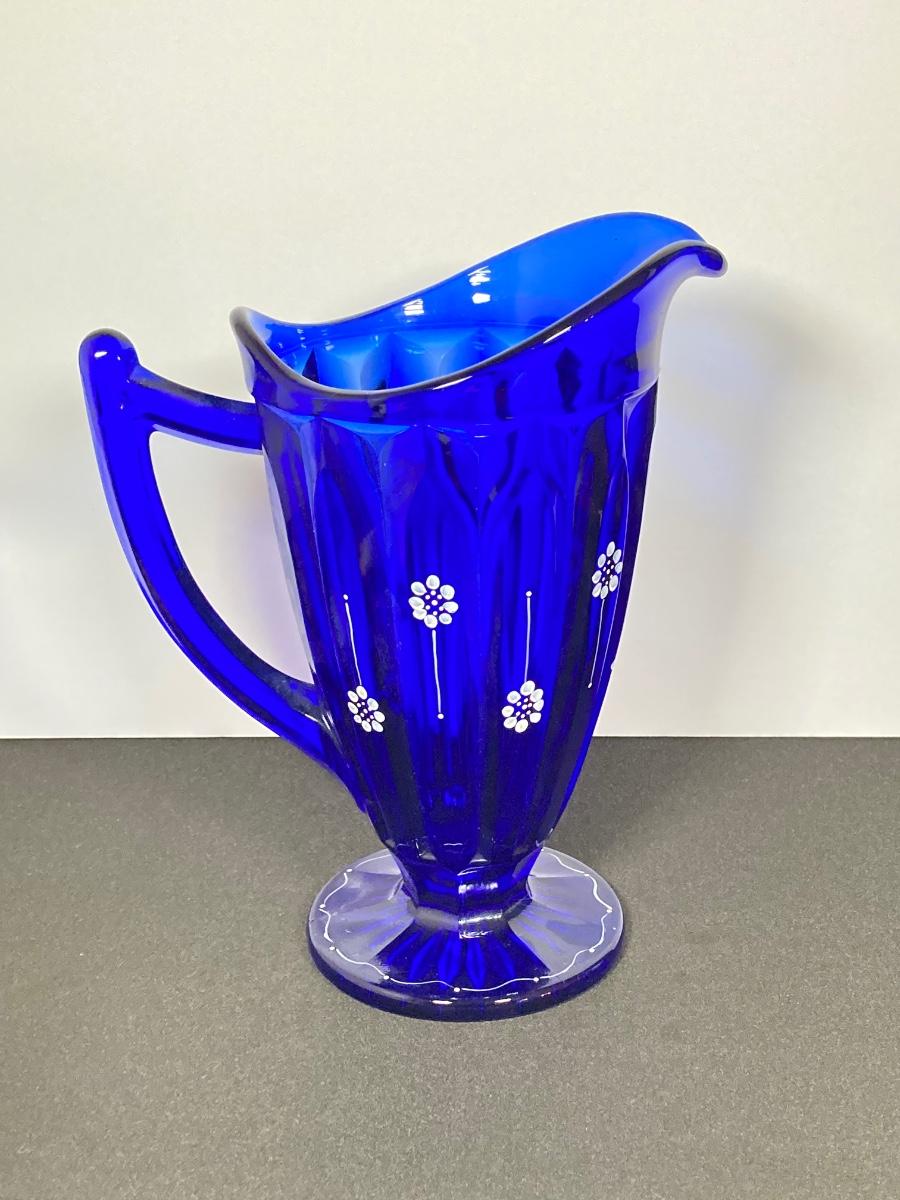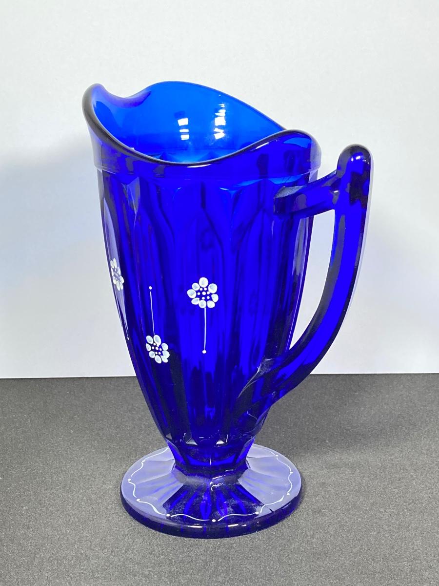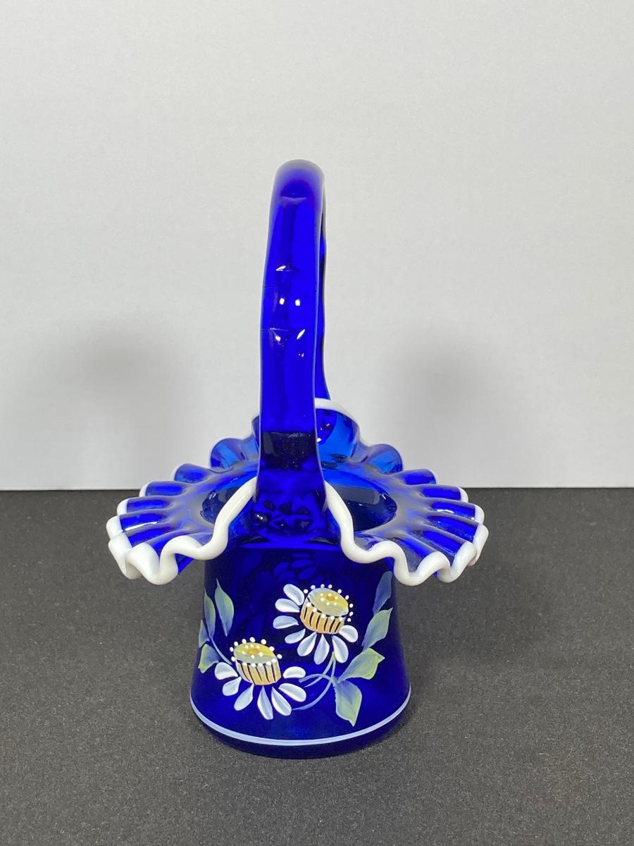 LOT 127J: Fenton - Large Cobalt Blue Pitcher and Basket with Flowers