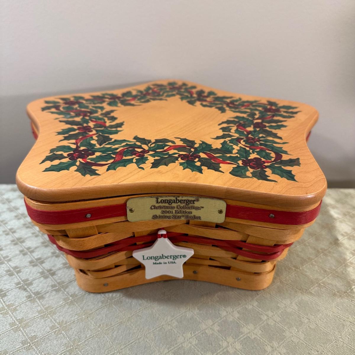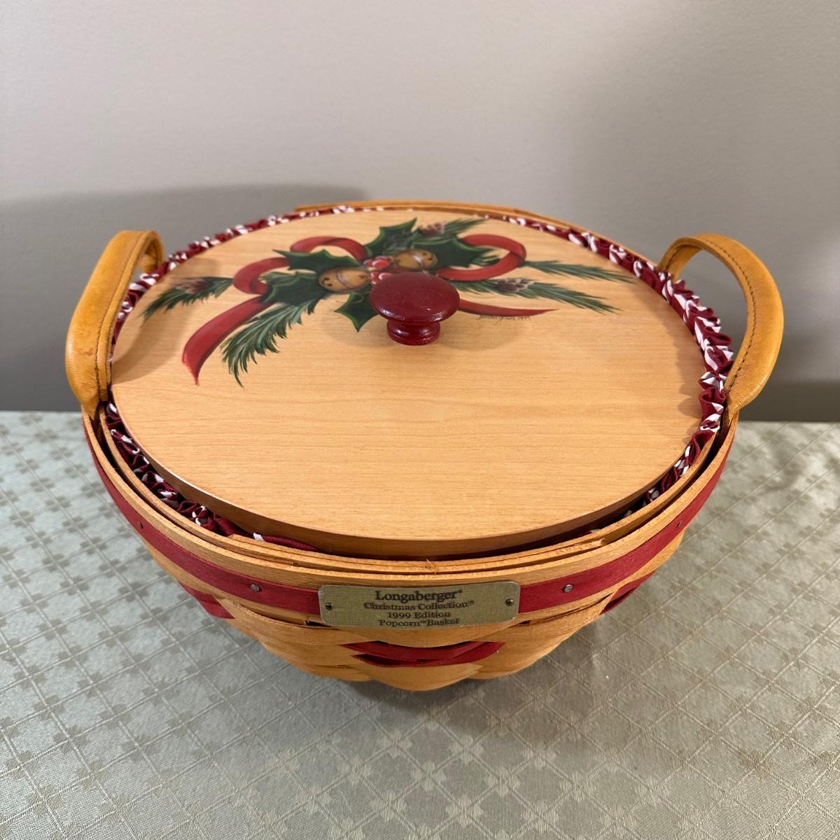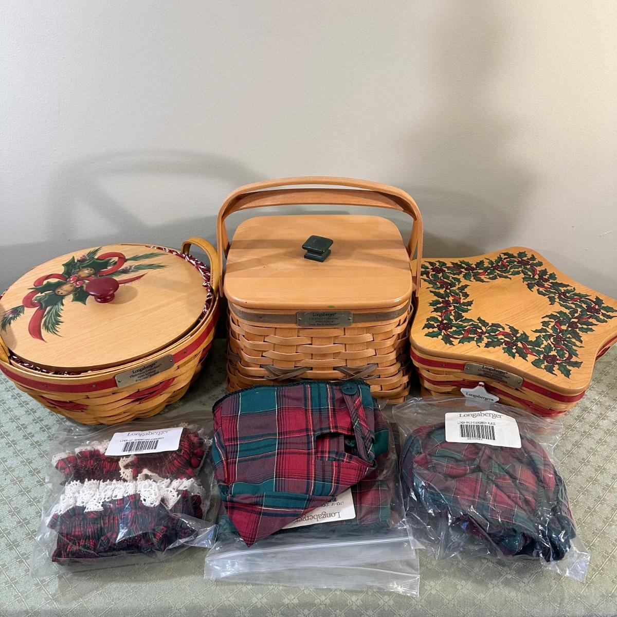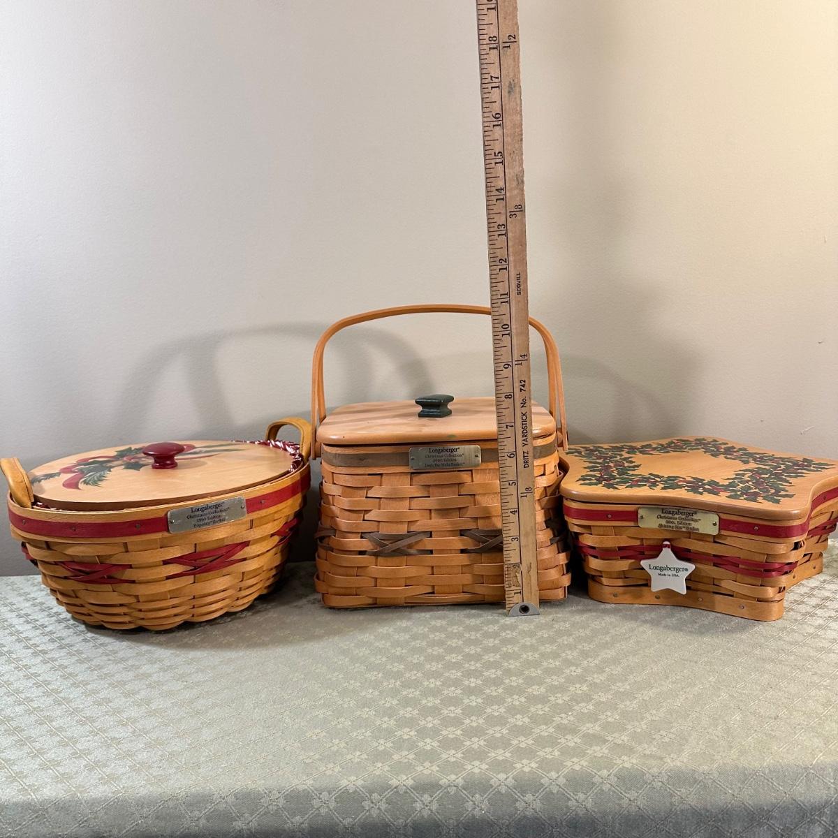 LOT 167N: Longaberger Christmas Edition Baskets With Liners - 1999 Popcorn Basket, 2000 Deck The Halls Basket, 2001 Shining Star Basket
