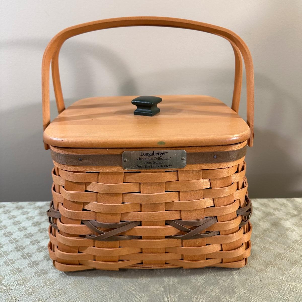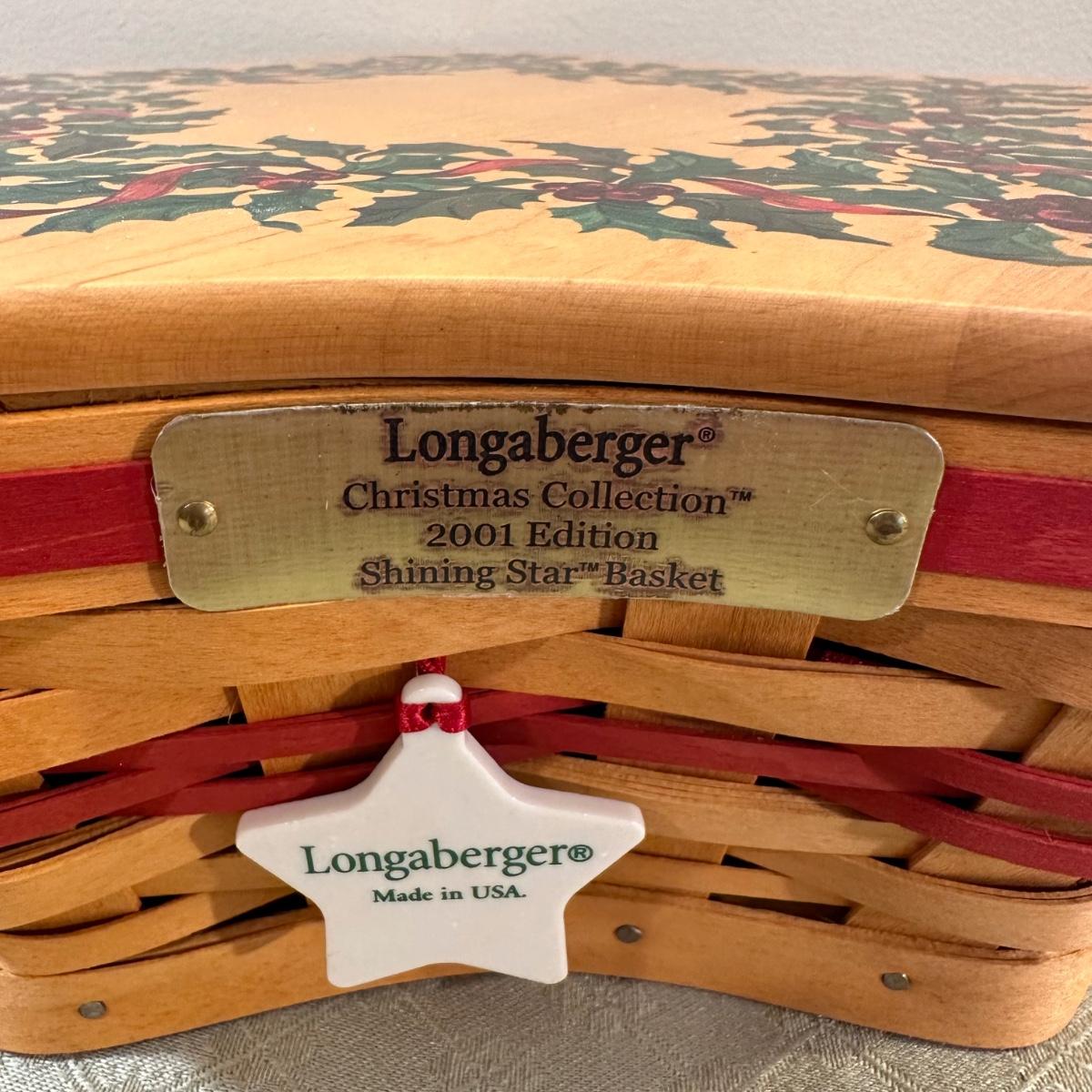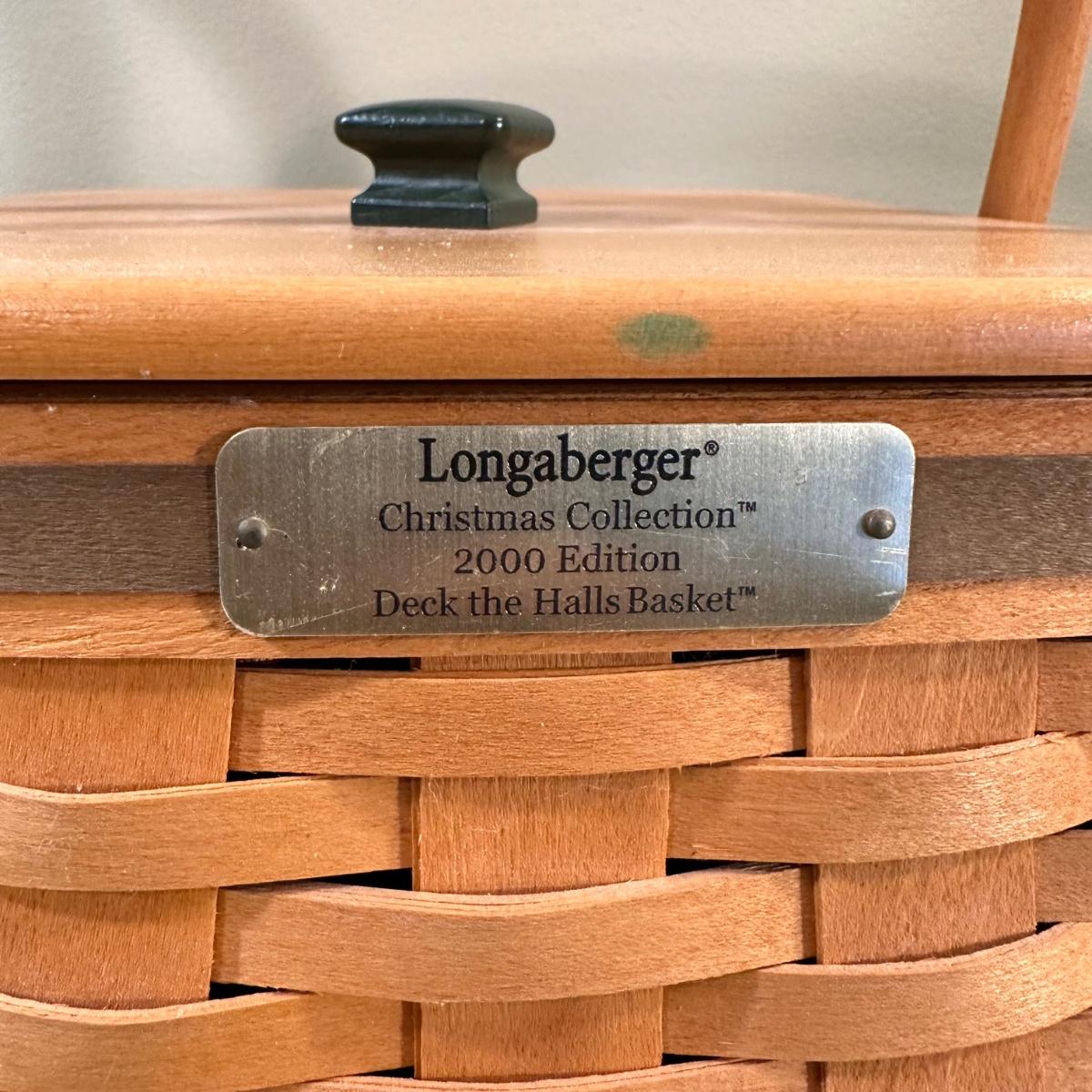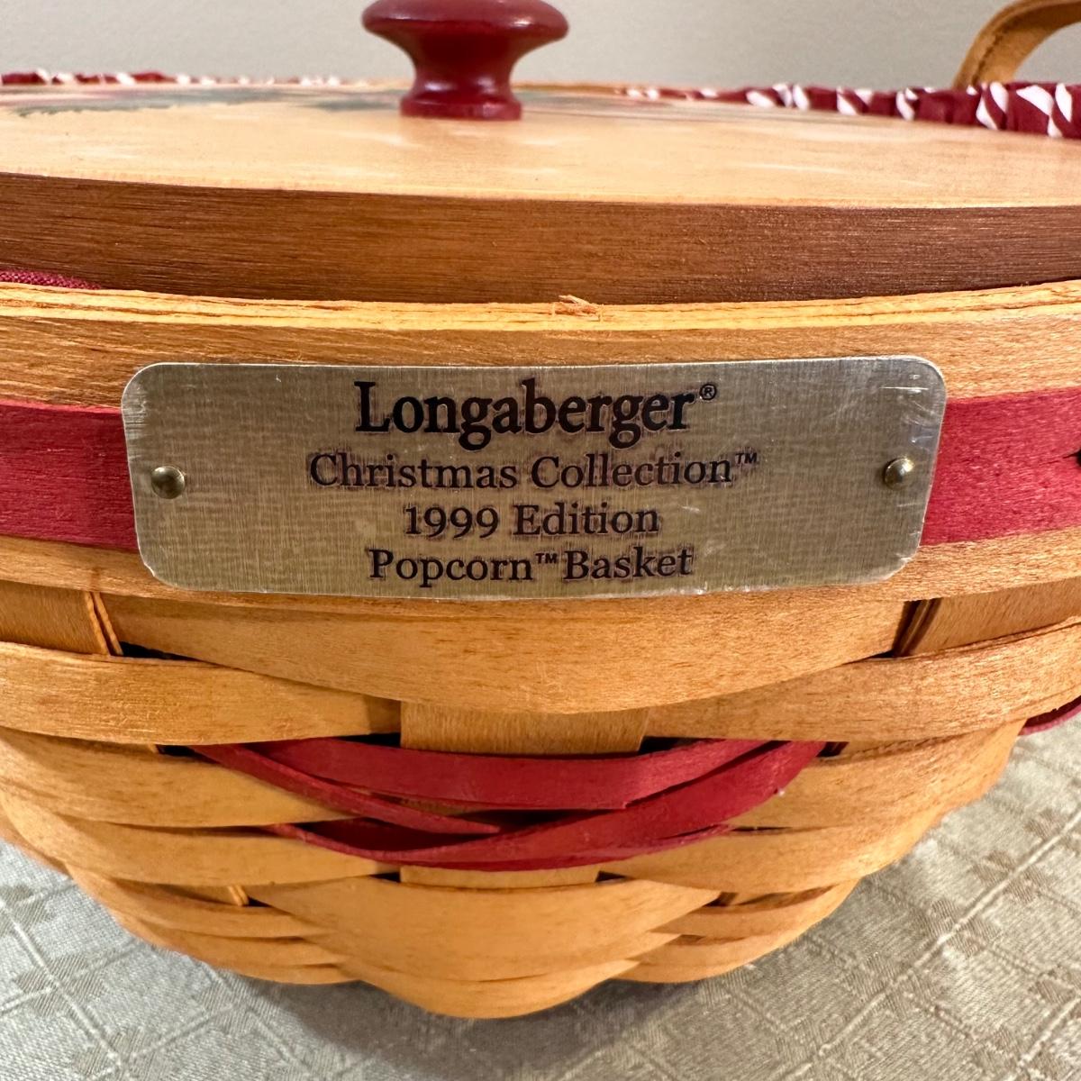 LOT 167N: Longaberger Christmas Edition Baskets With Liners - 1999 Popcorn Basket, 2000 Deck The Halls Basket, 2001 Shining Star Basket