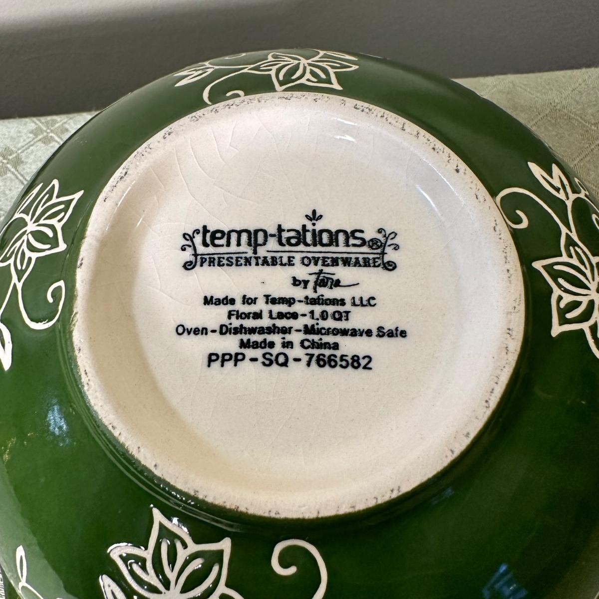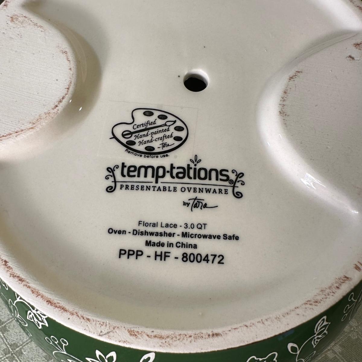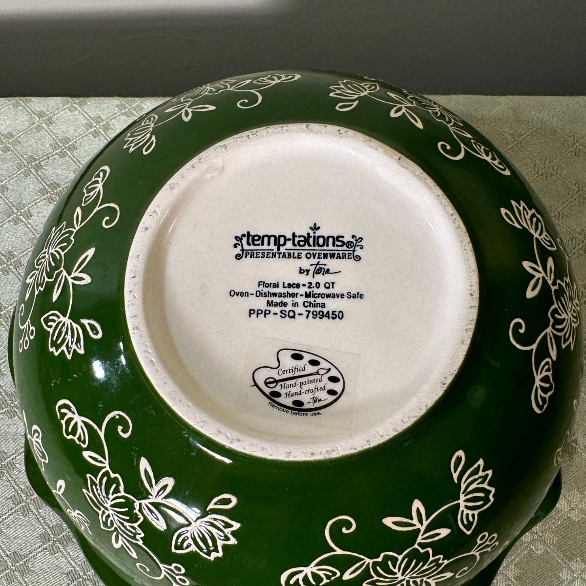 LOT 178N: Temp-tations Floral Lace 6 Piece Set - Cake Plate, 3 Bowls, 3qt Soup Tureen