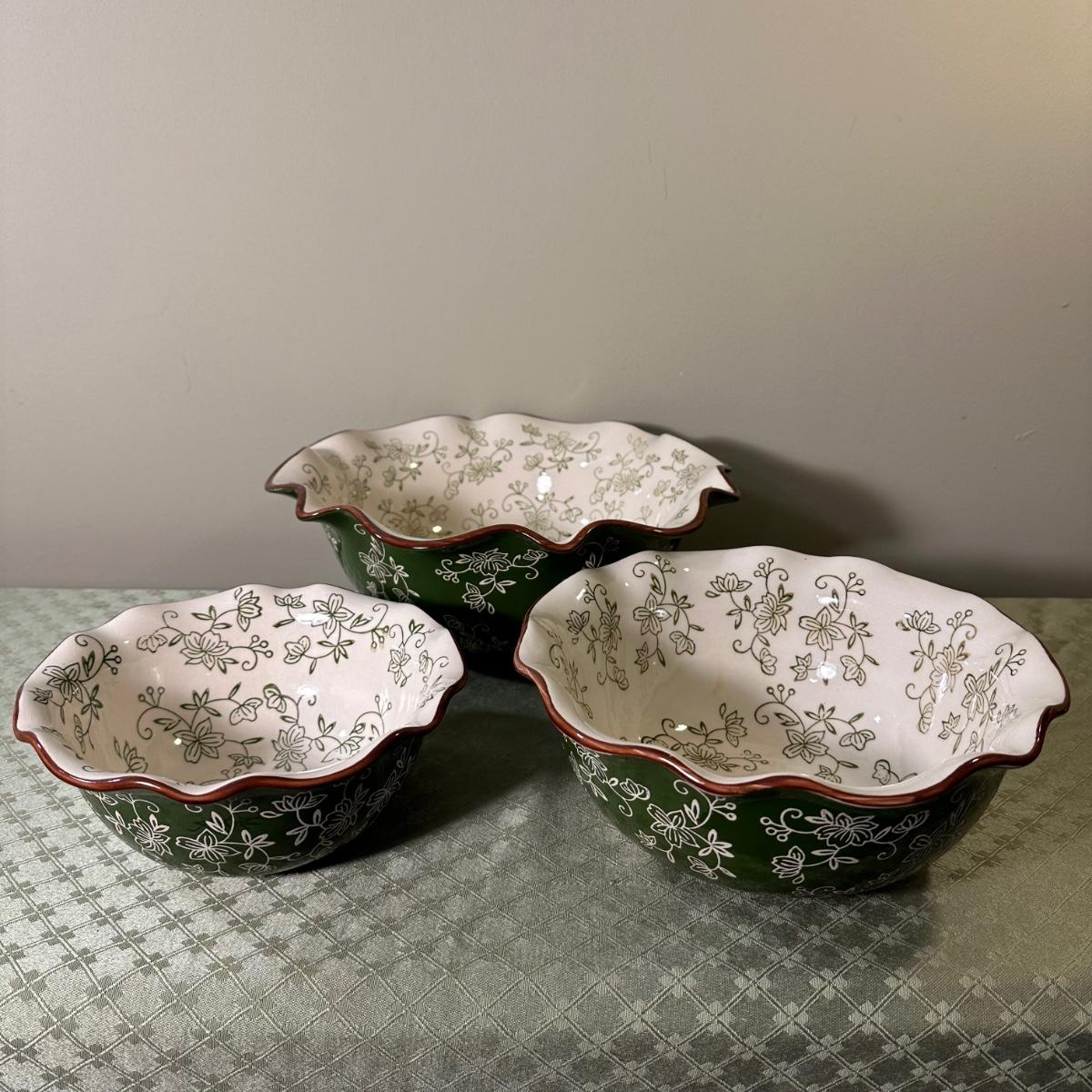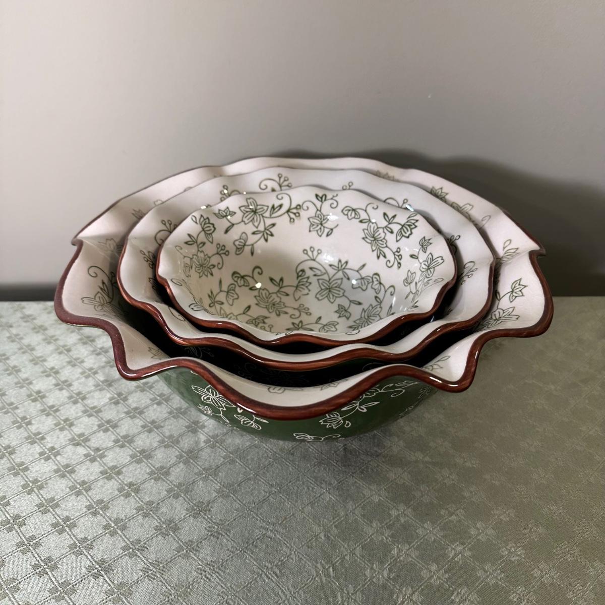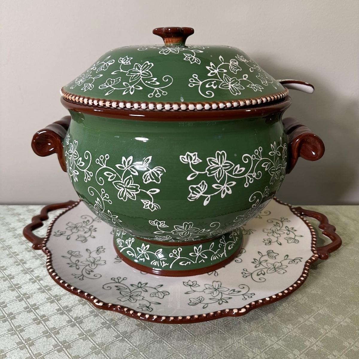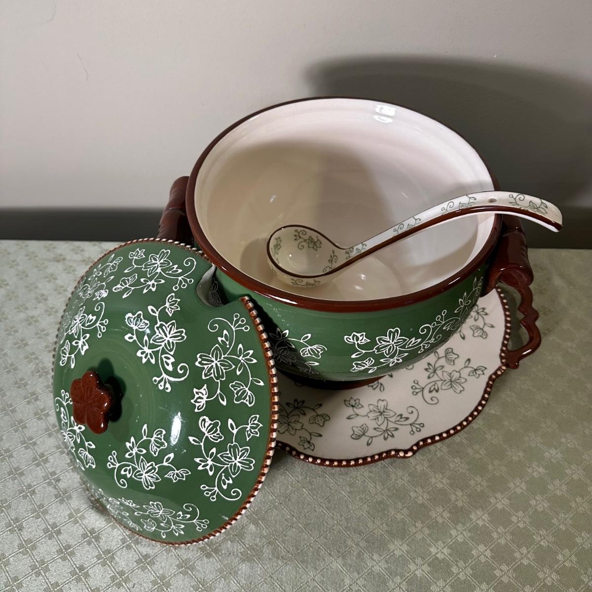 LOT 178N: Temp-tations Floral Lace 6 Piece Set - Cake Plate, 3 Bowls, 3qt Soup Tureen