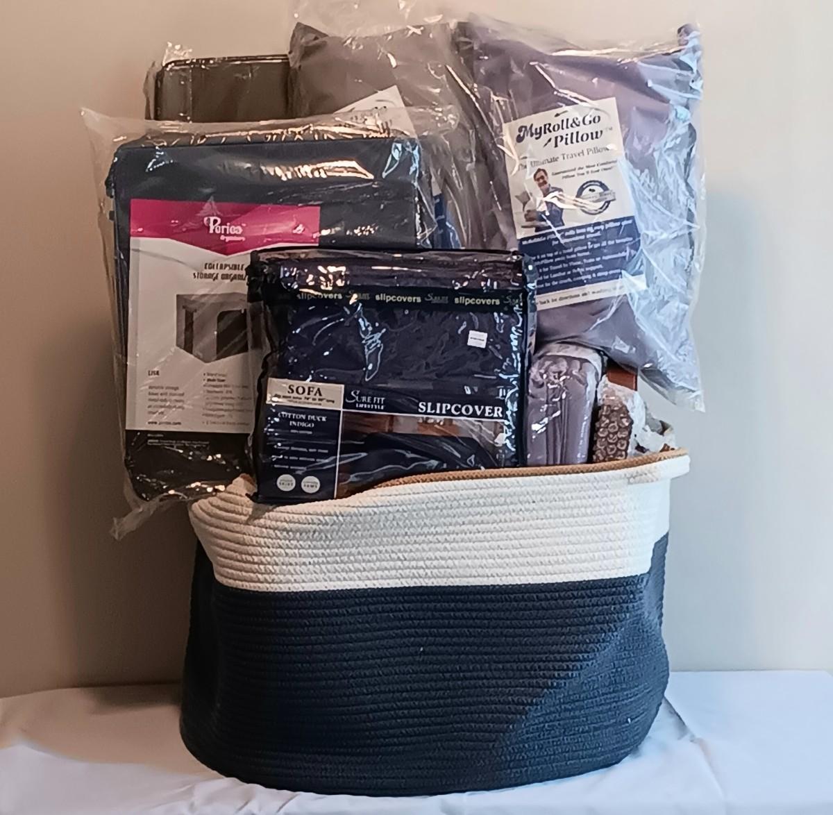 LOT 192K: Home Collection: Sofa & Loveseat Slipcovers, Collapsible Storage Boxes, Little Hippo Rope Baskets & More