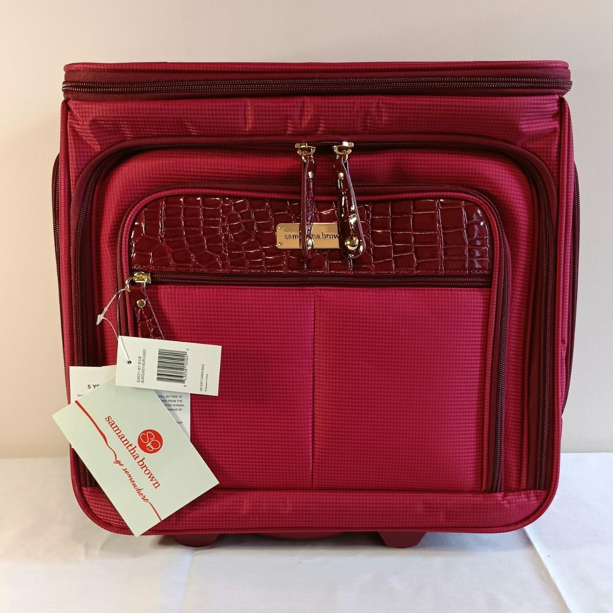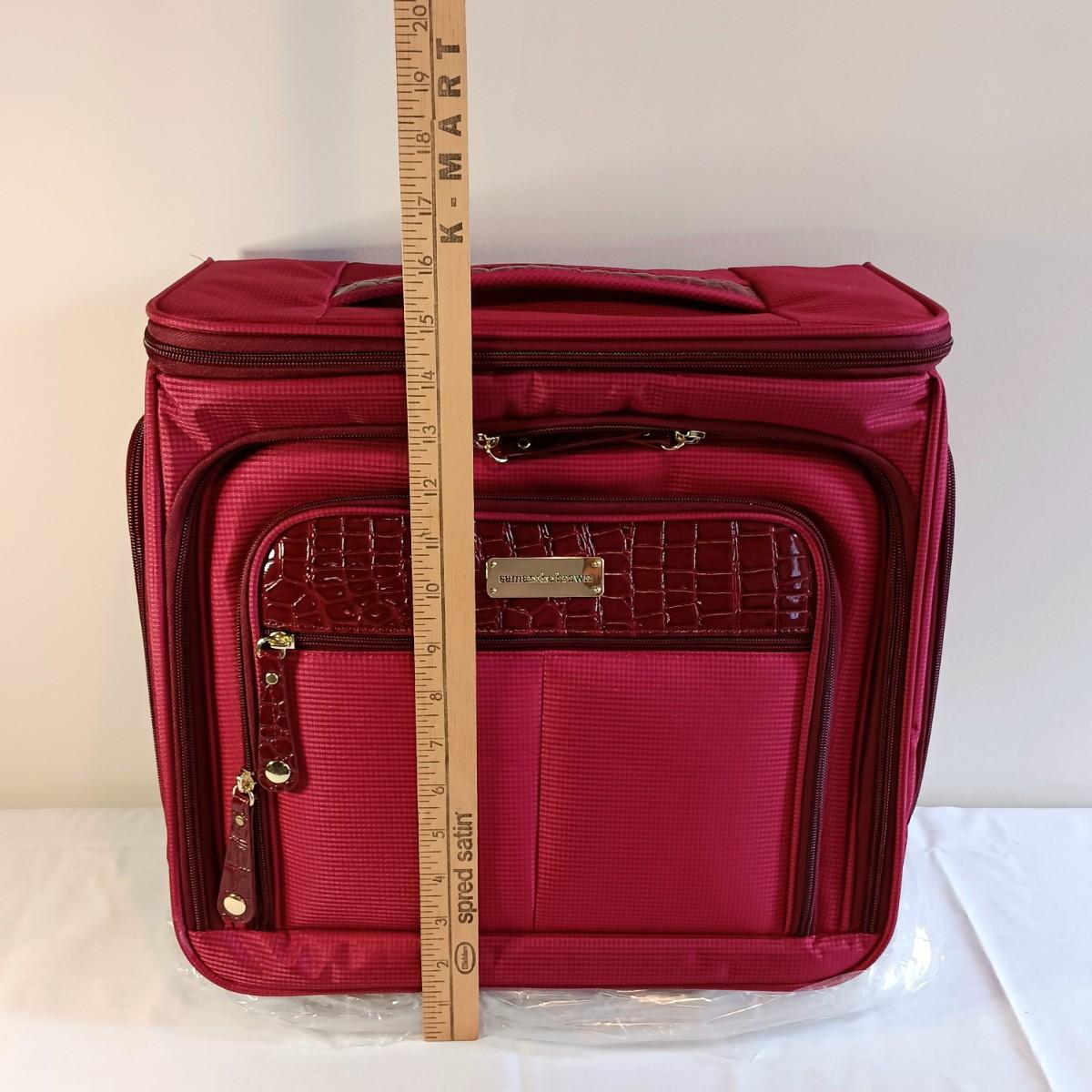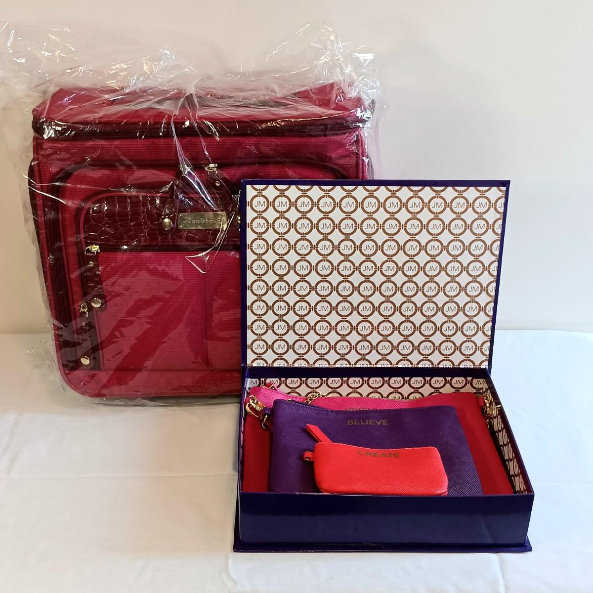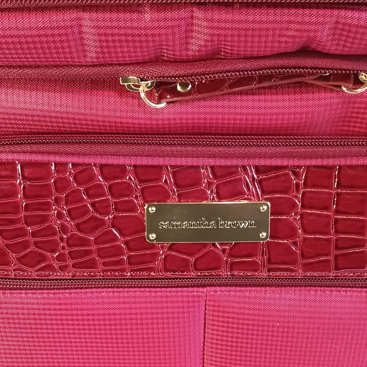 LOT 196K: Joy Mangano Cosmetic Bags with Samantha Brown Burgundy Red Croco Expandible Cabin Bag