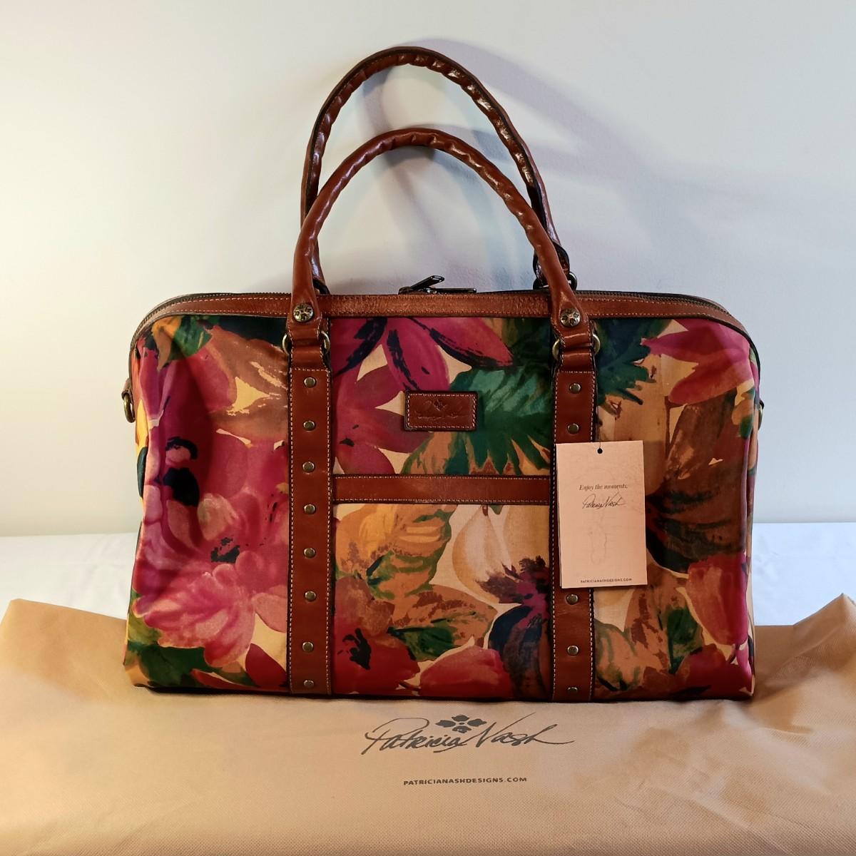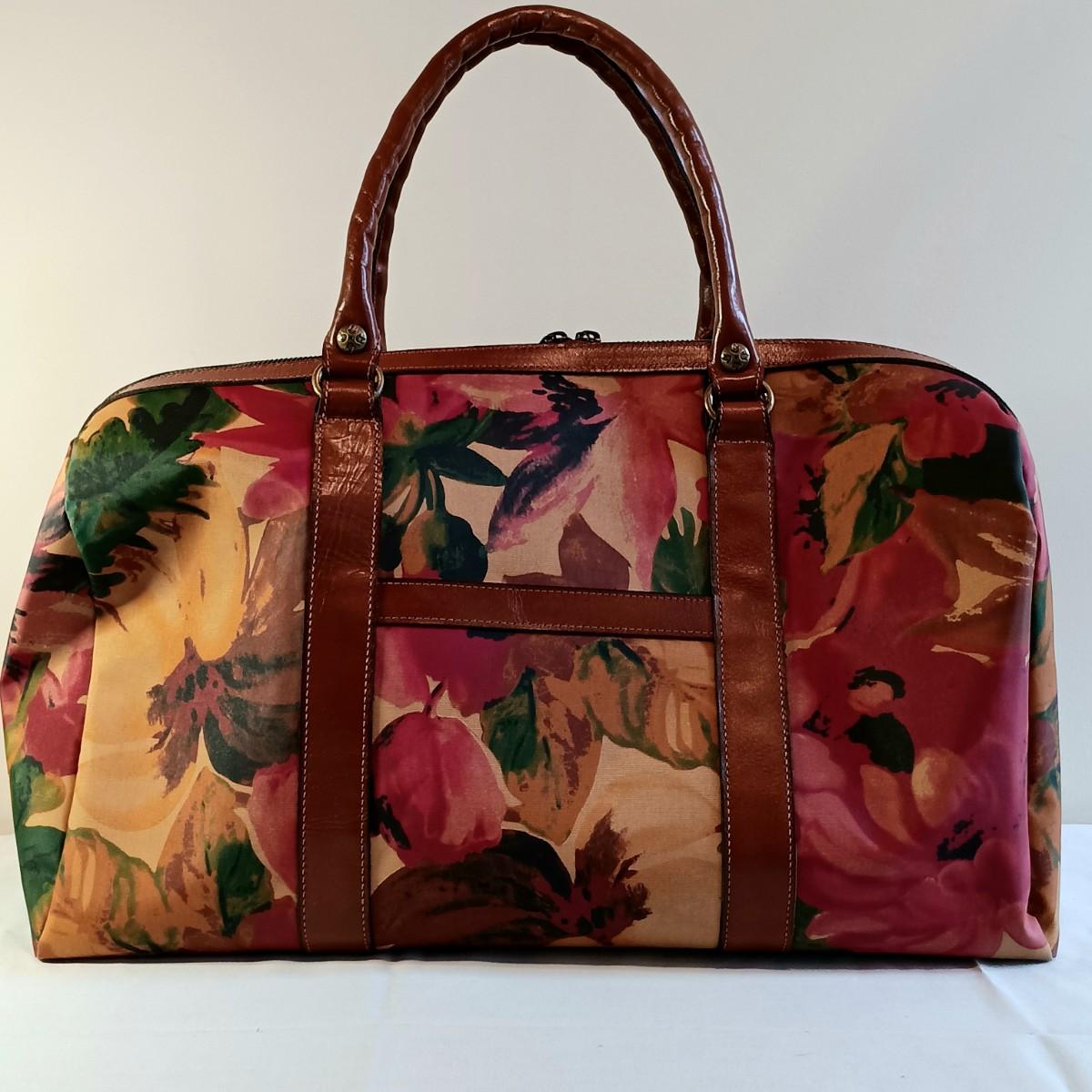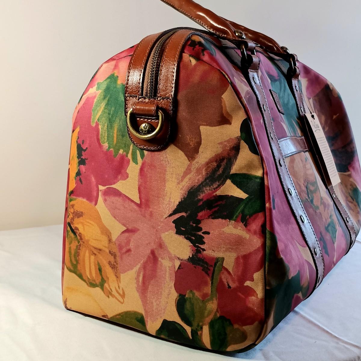 LOT 197K: Patricia Nash Milano Patina Coated Canvas Spring Multi Weekender Duffel Bag